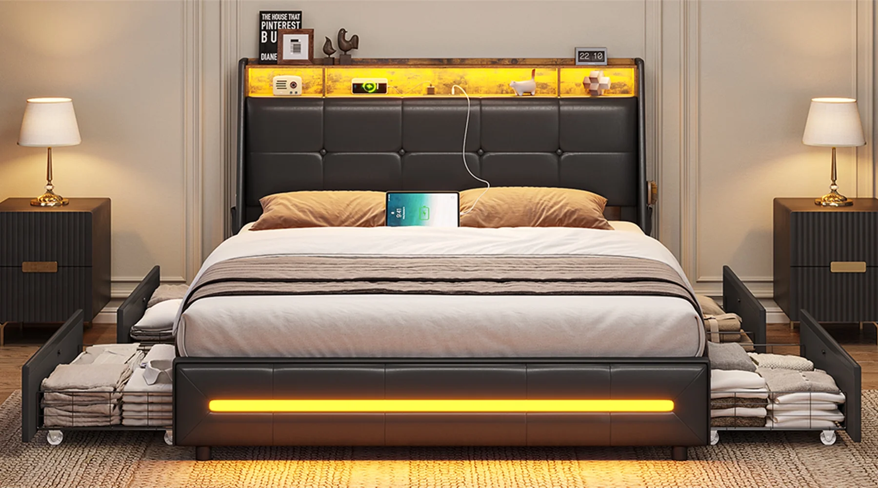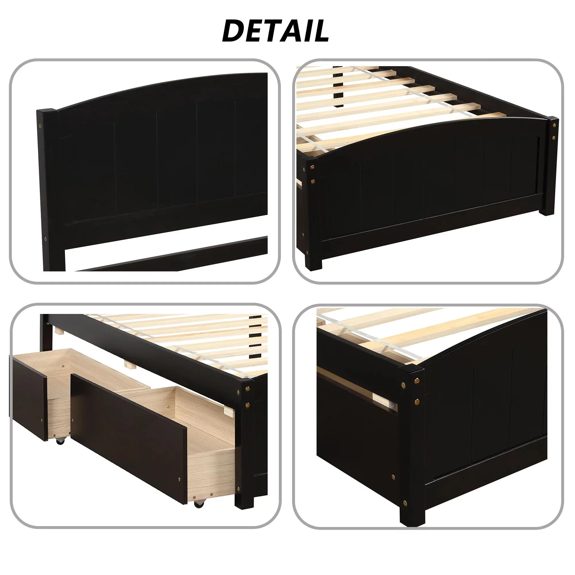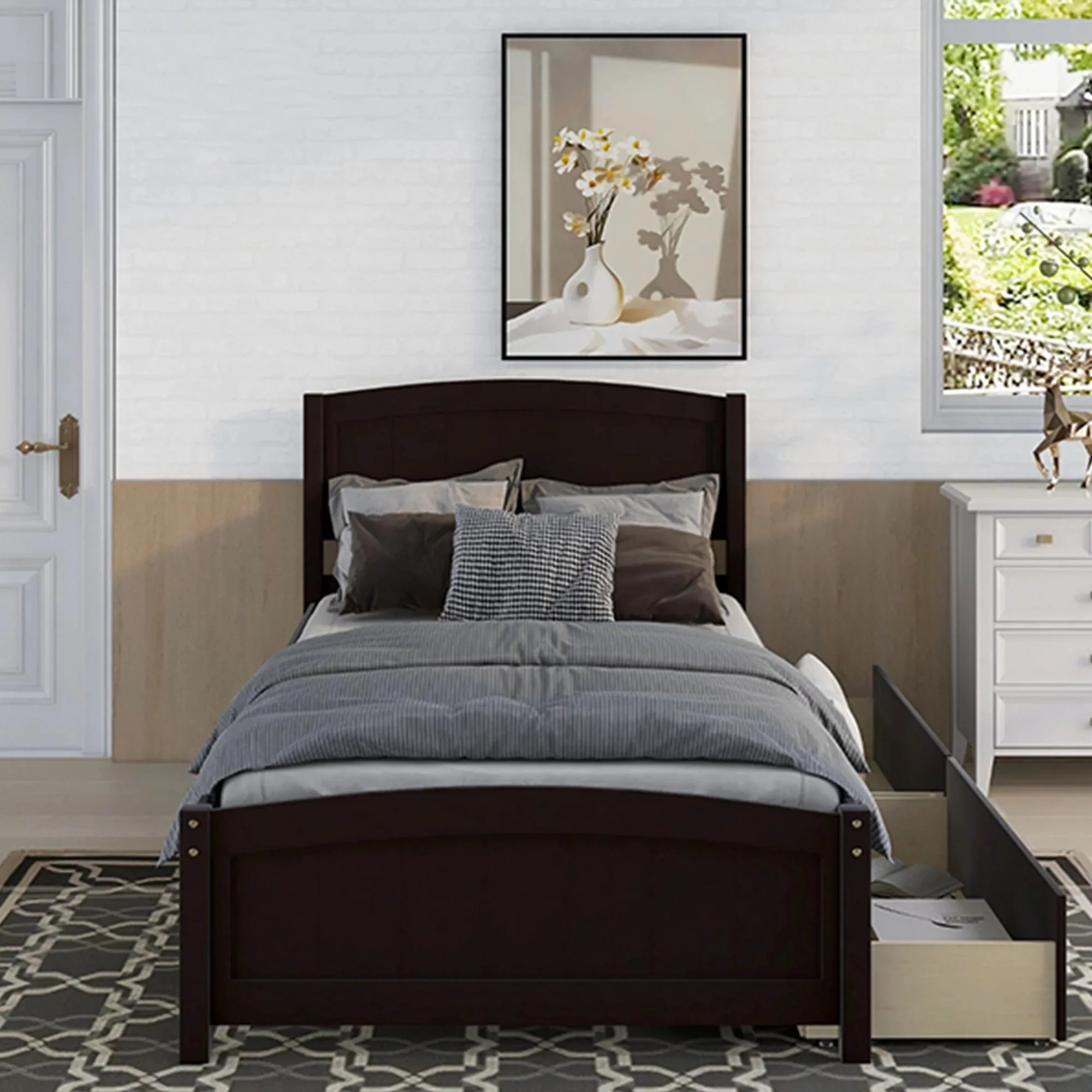 Gewnee Kids Wood Platform Bed,Twin Size Platform Bed with Headboard and Storage Drawers,Espresso