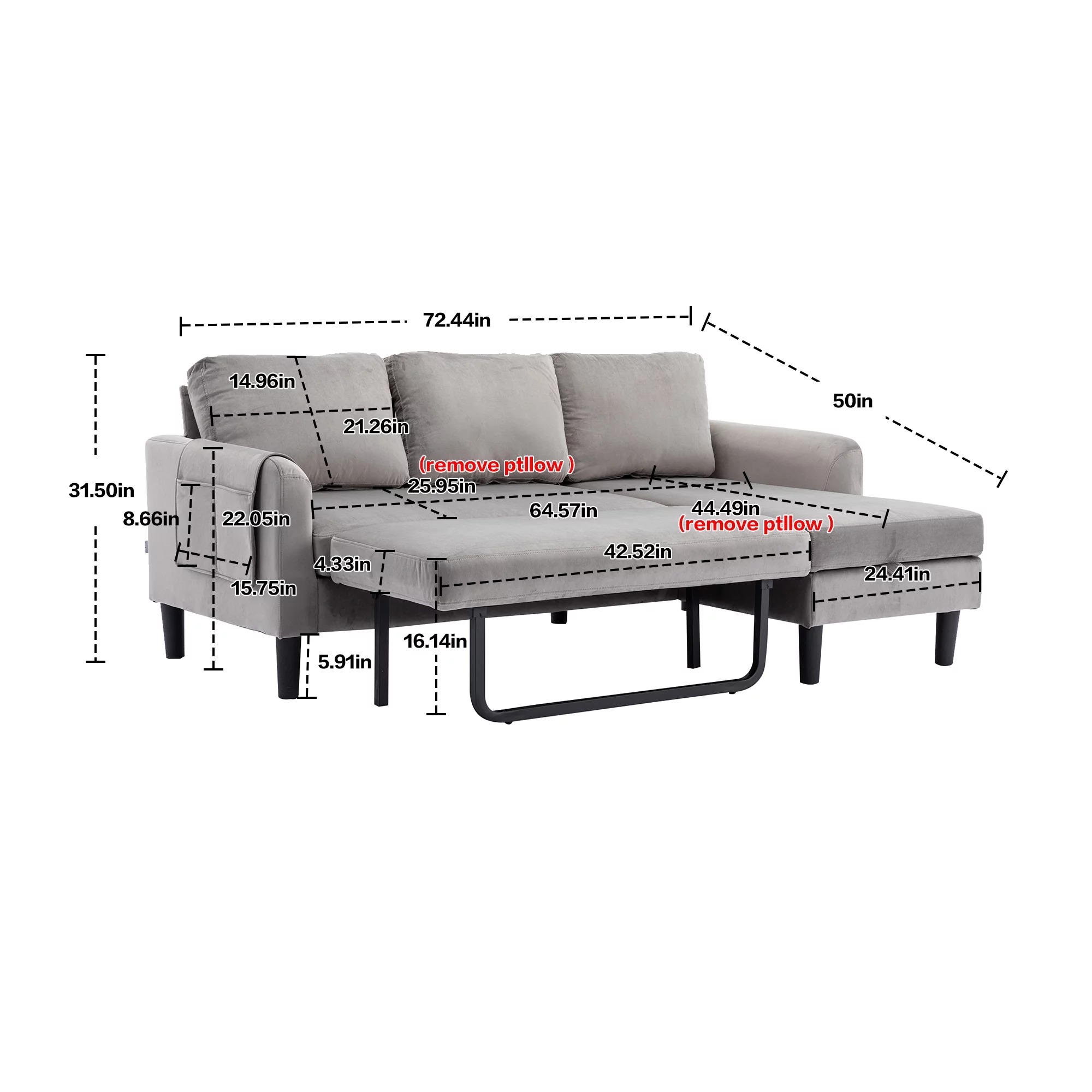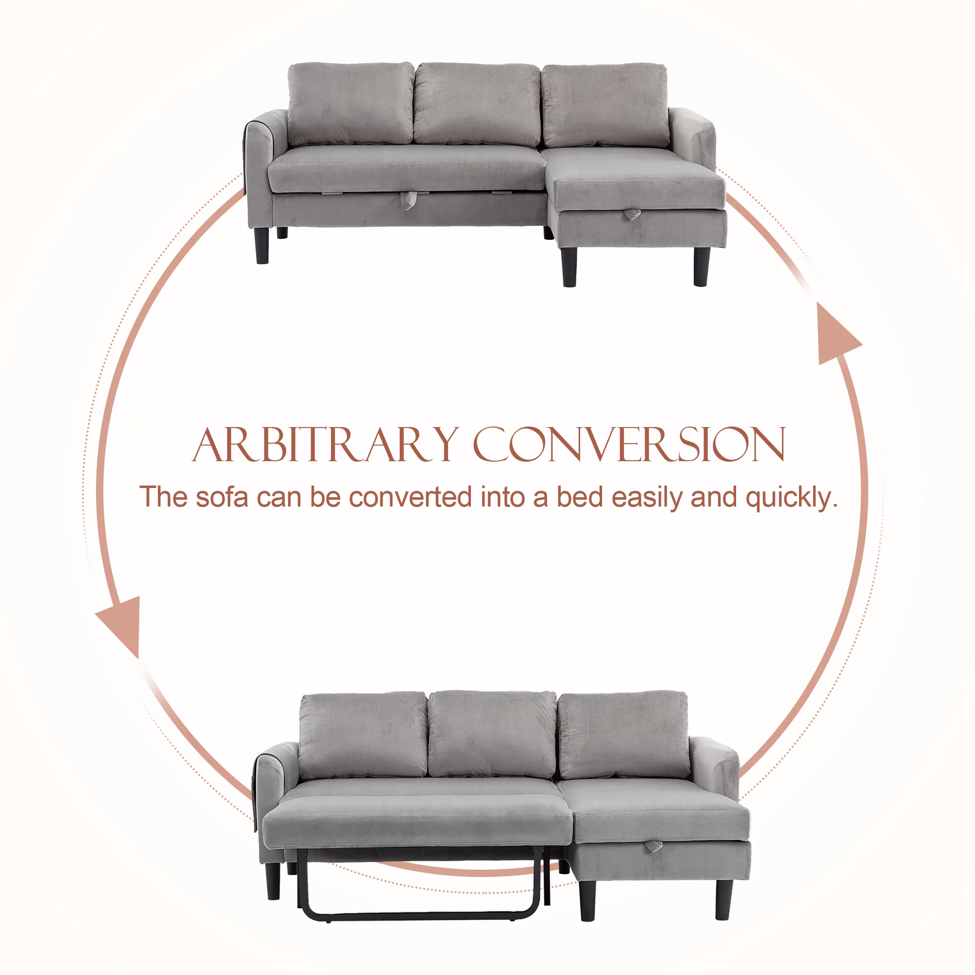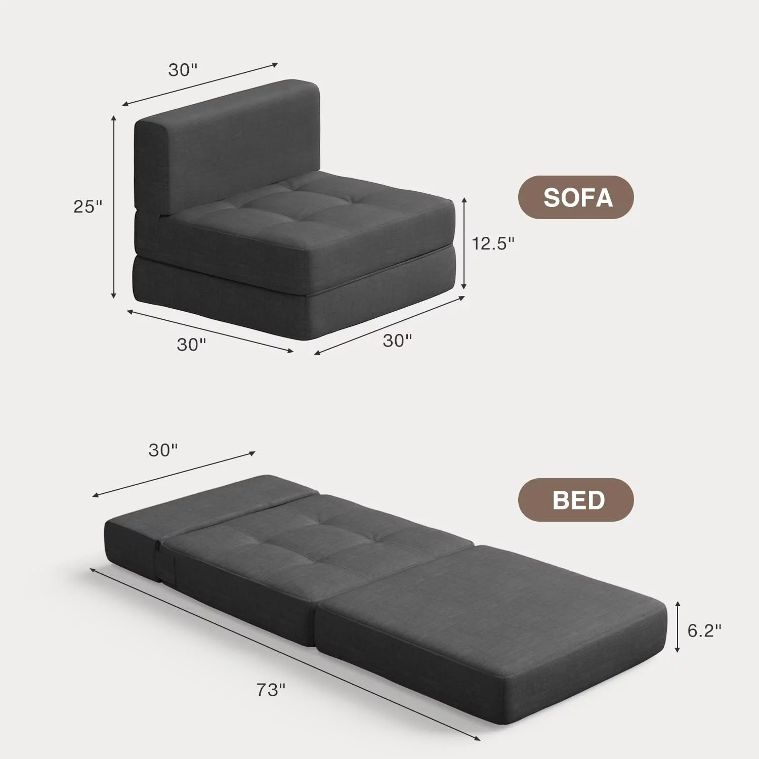 Sleeper Sofa Bed, Convertible Sofa Bedfor Bedroom & Living Room, Dark Gray