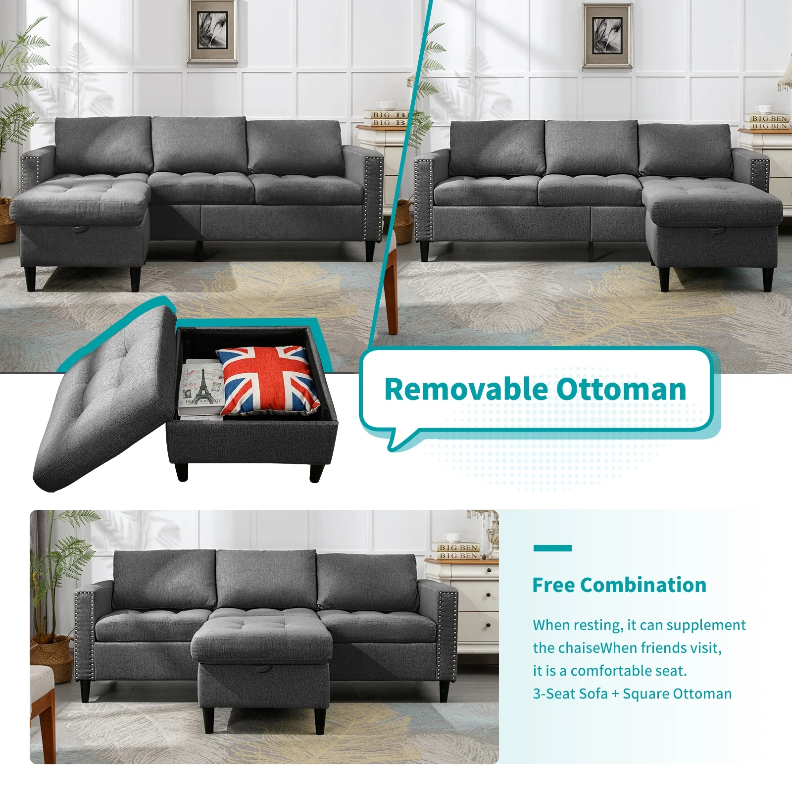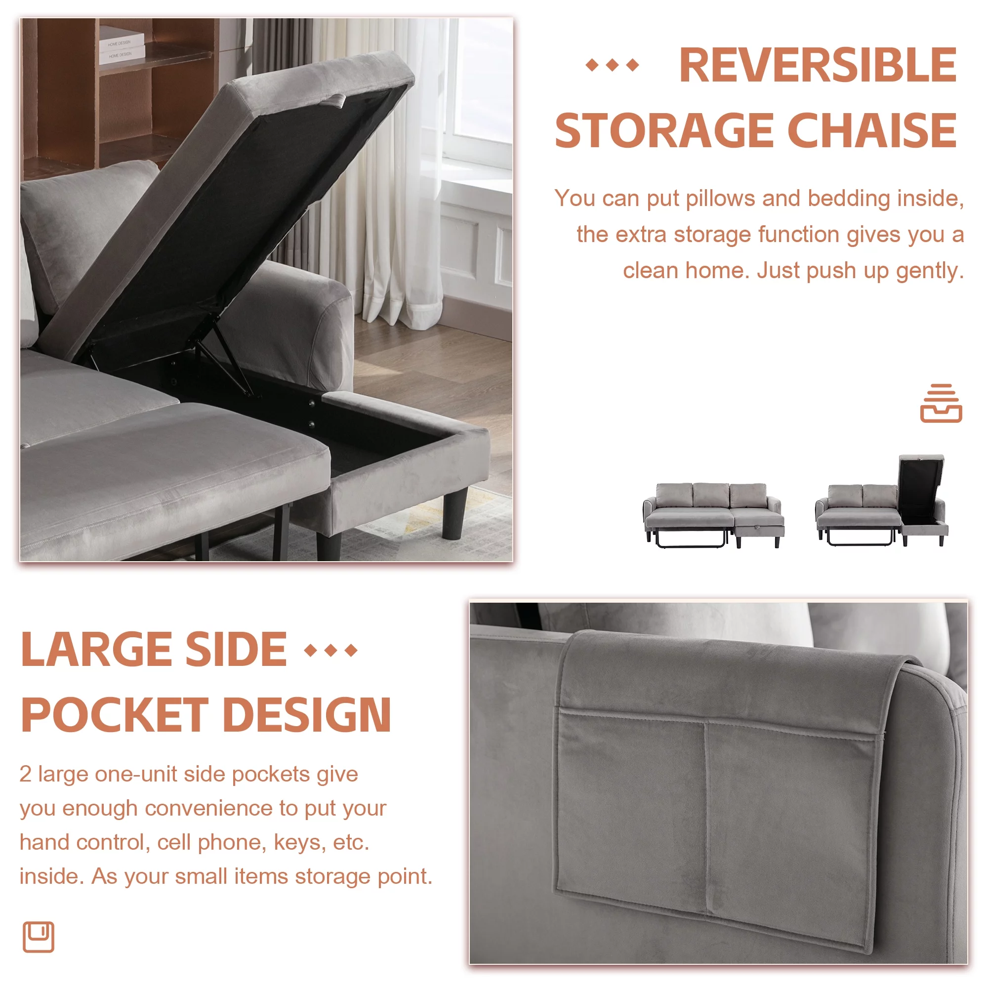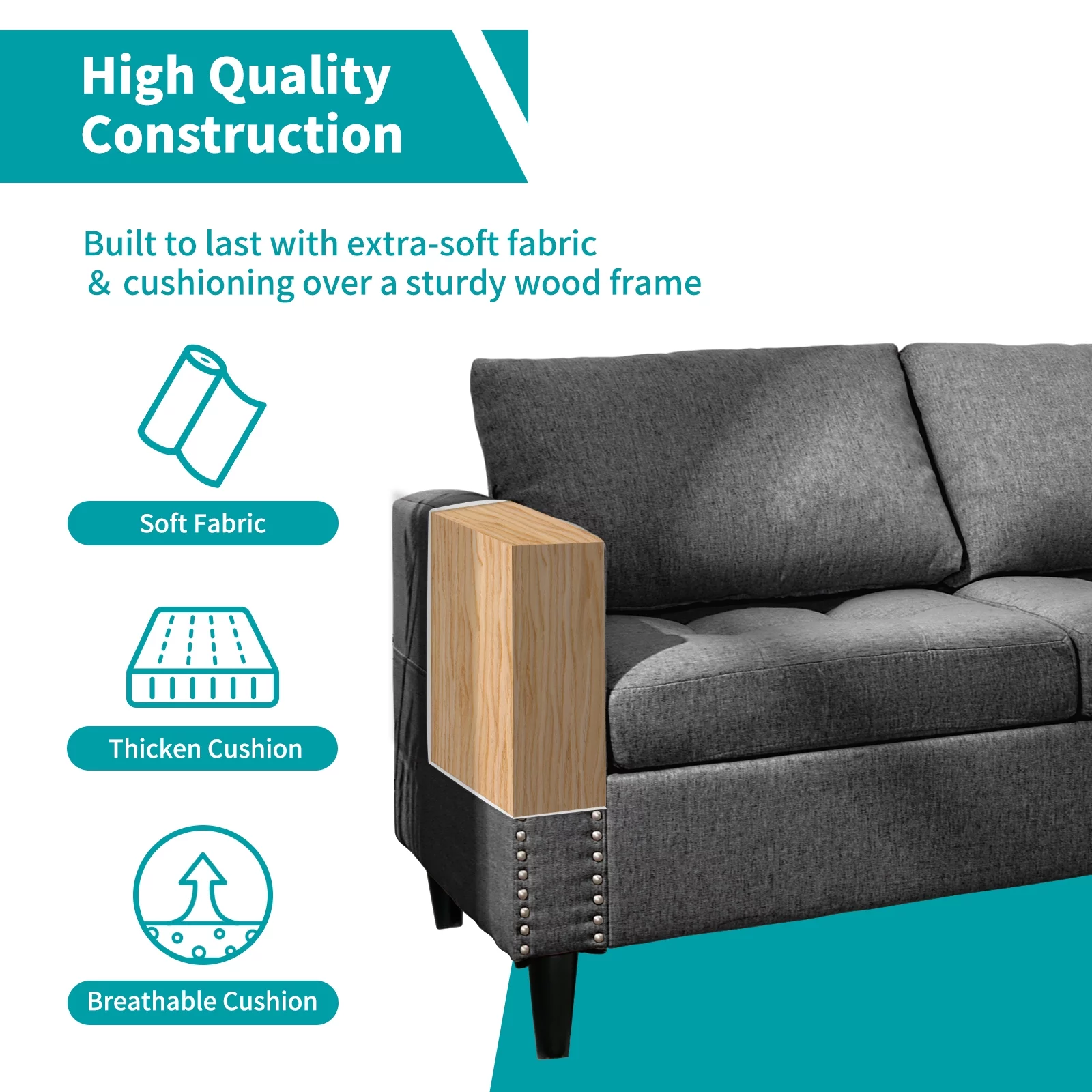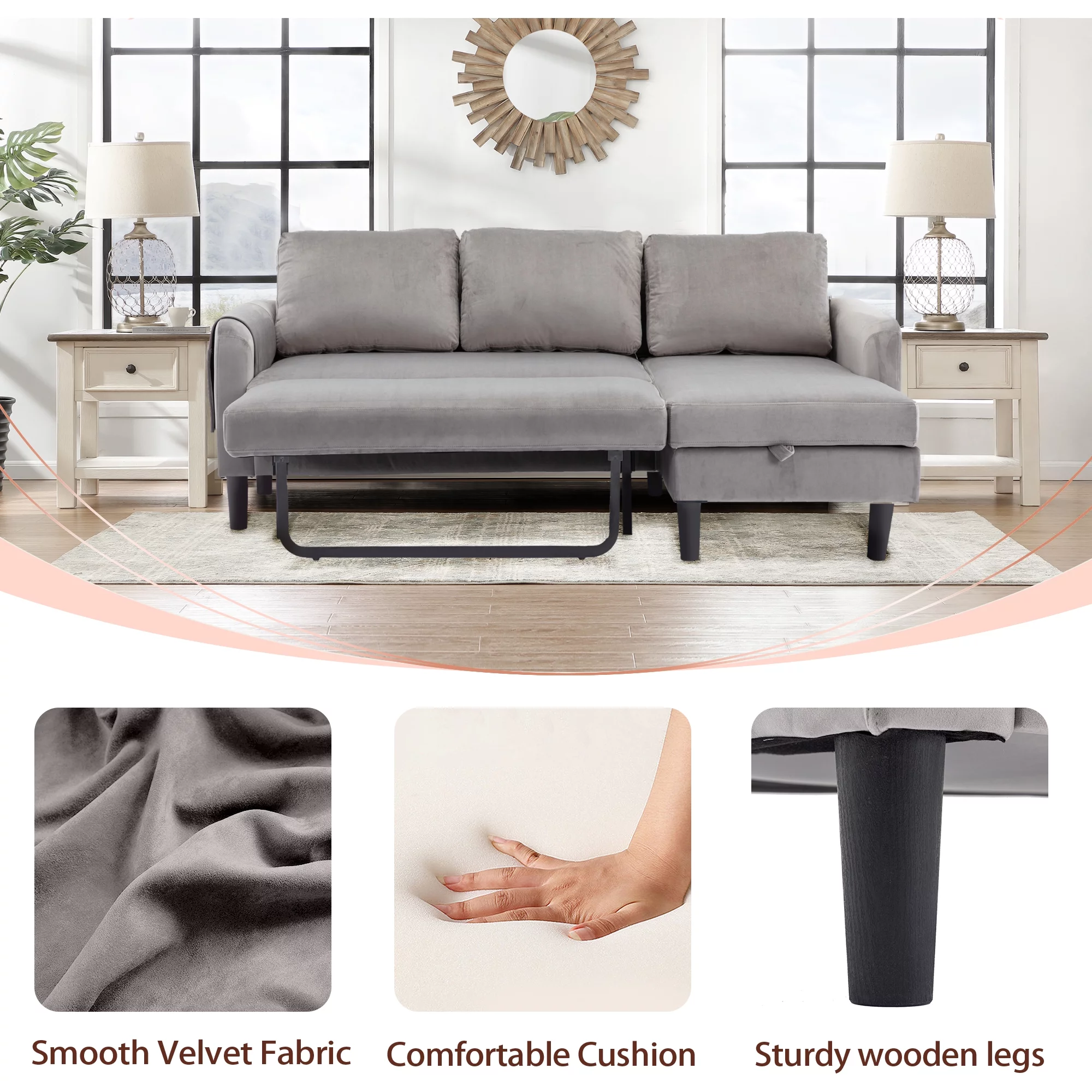 Sleeper Sofa Bed, Convertible Sofa Bedfor Bedroom & Living Room, Dark Gray