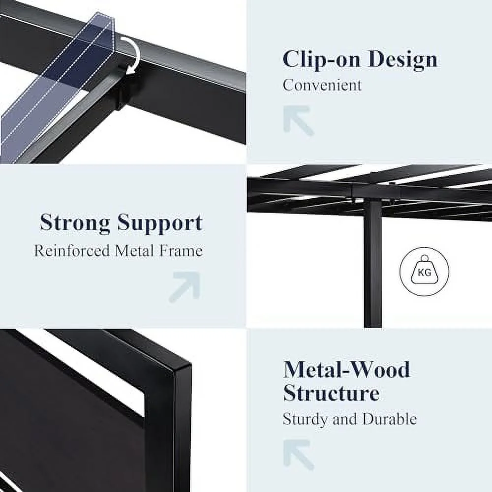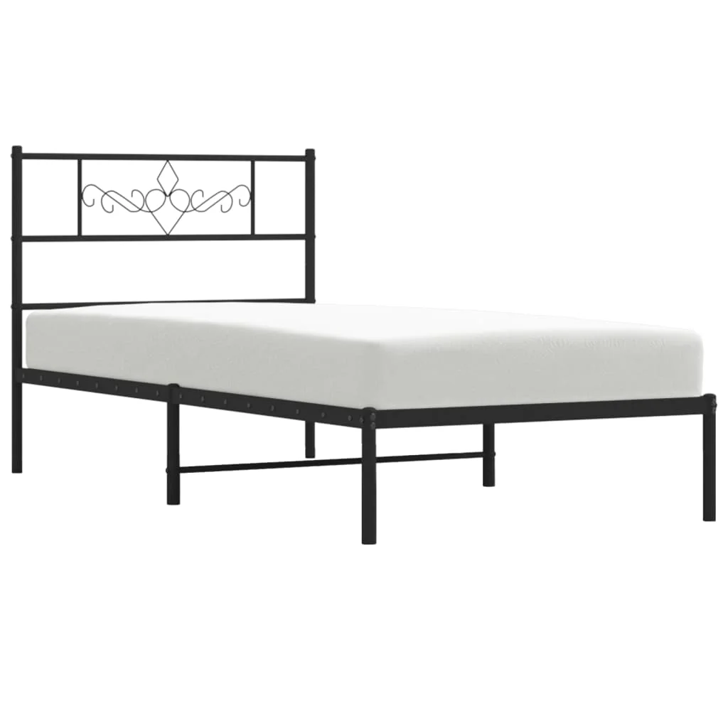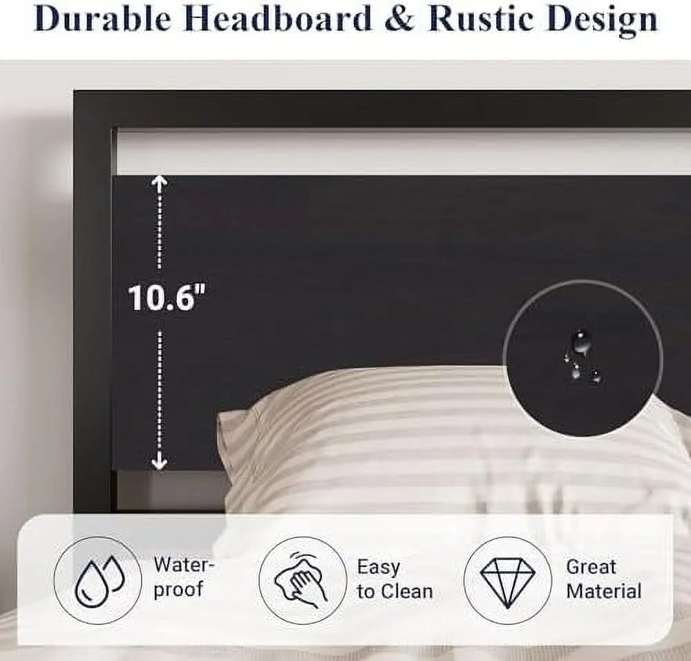 Tomshoo Metal Bed Frame with Headboard, Sturdy and Timeless Design, Black, 39.4"x78.7"