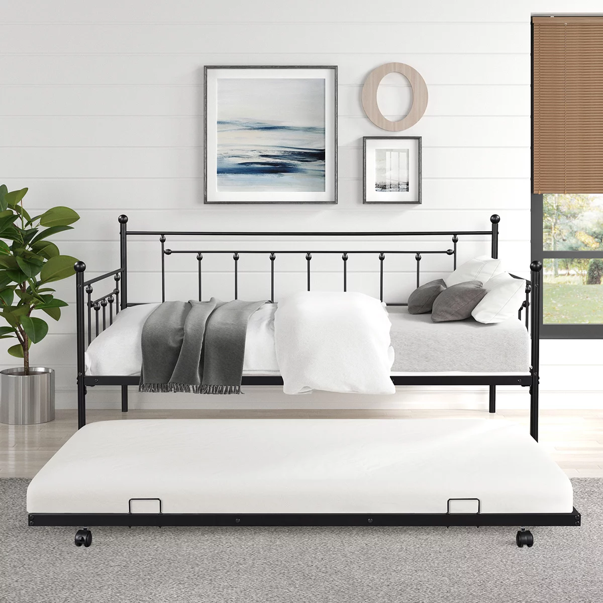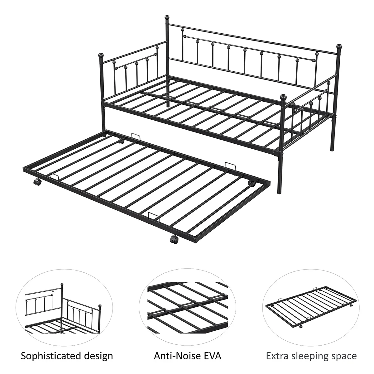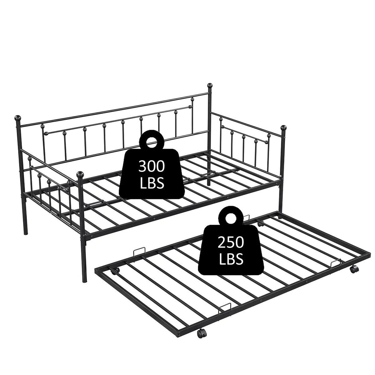 Kuurfuurdo Twin Size Daybed Metal with Trundle, for Bed Room Guest Room Apartment, Black