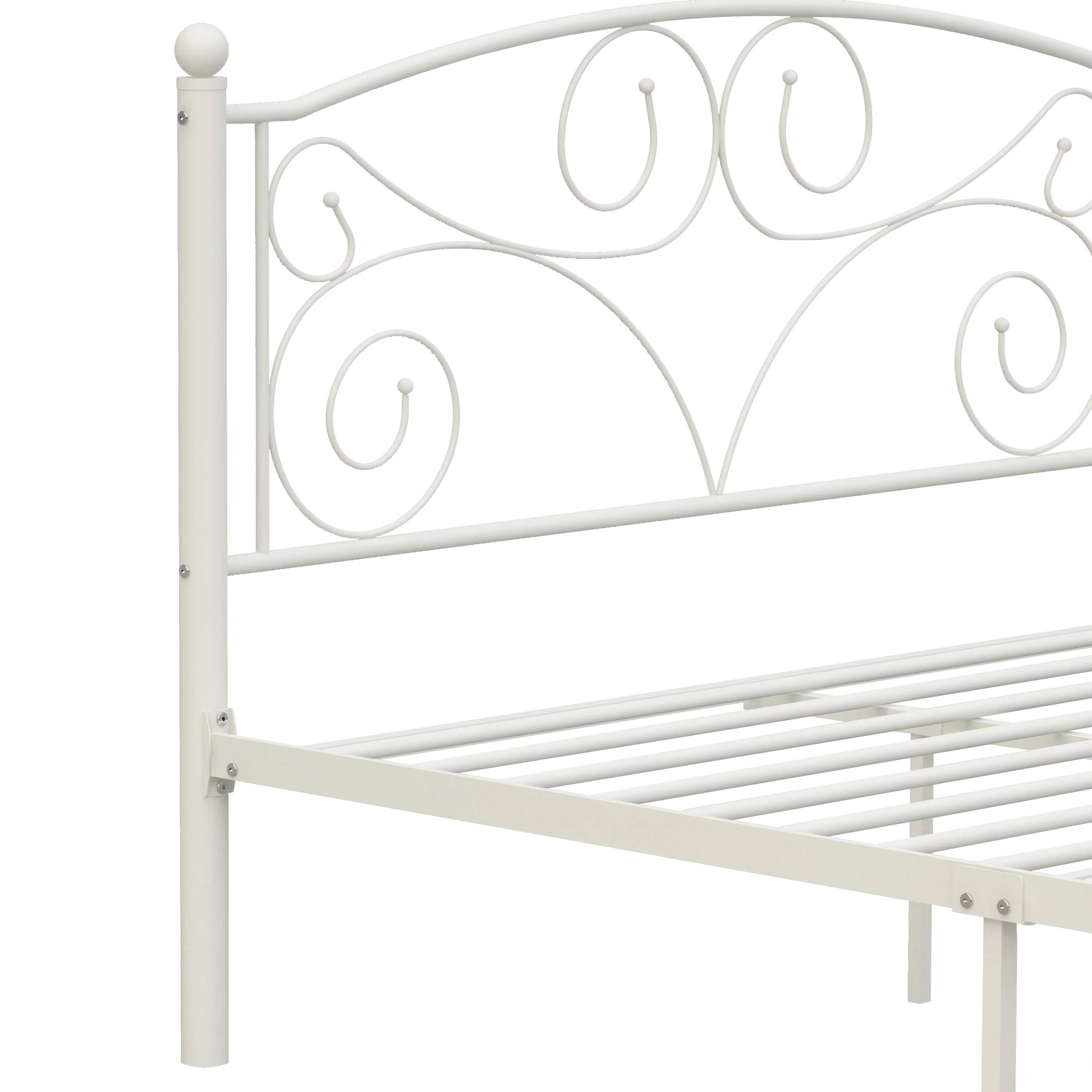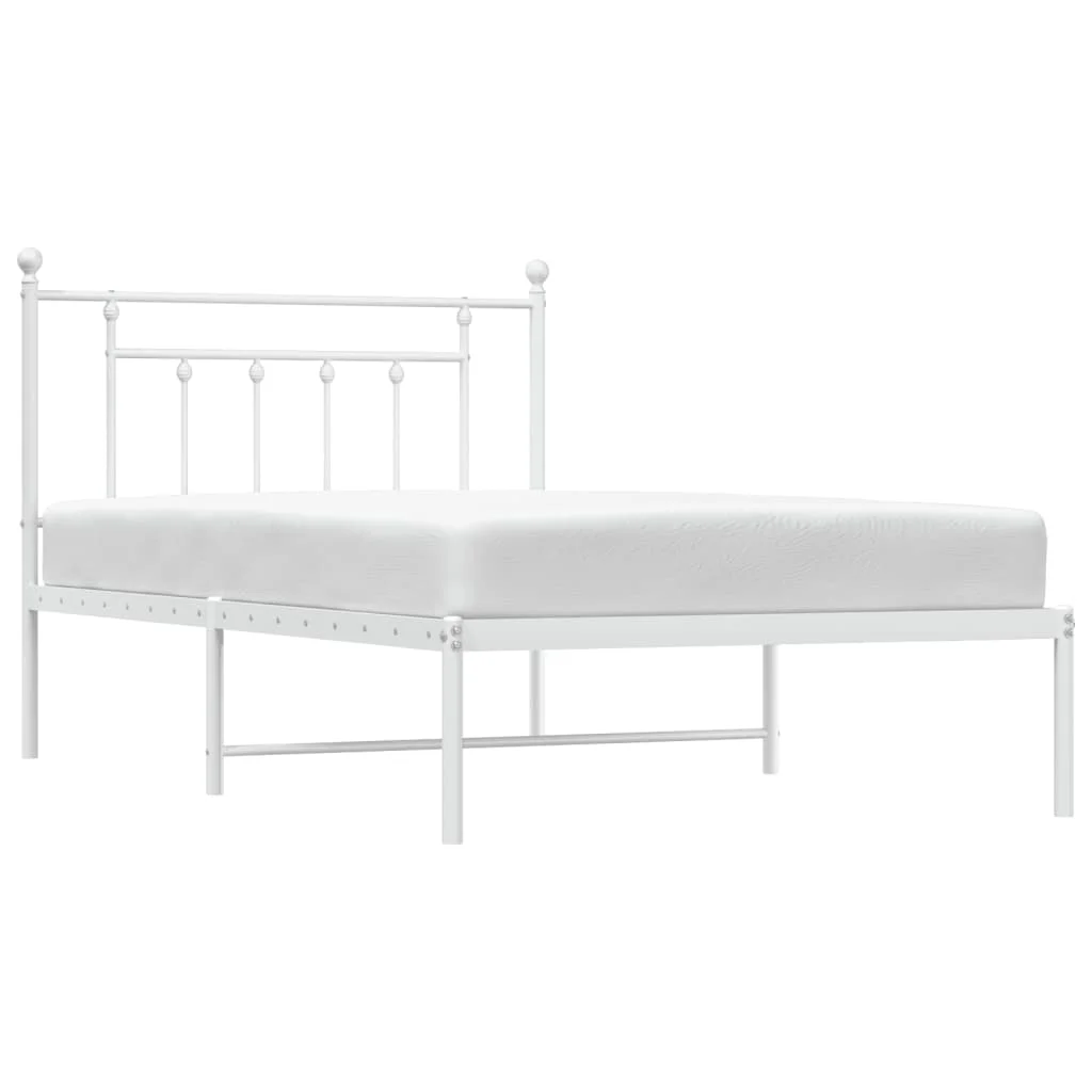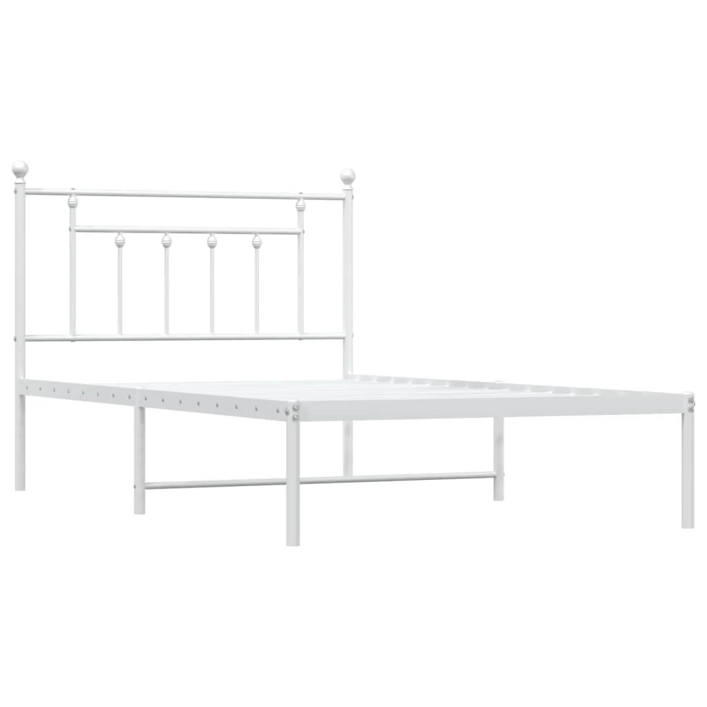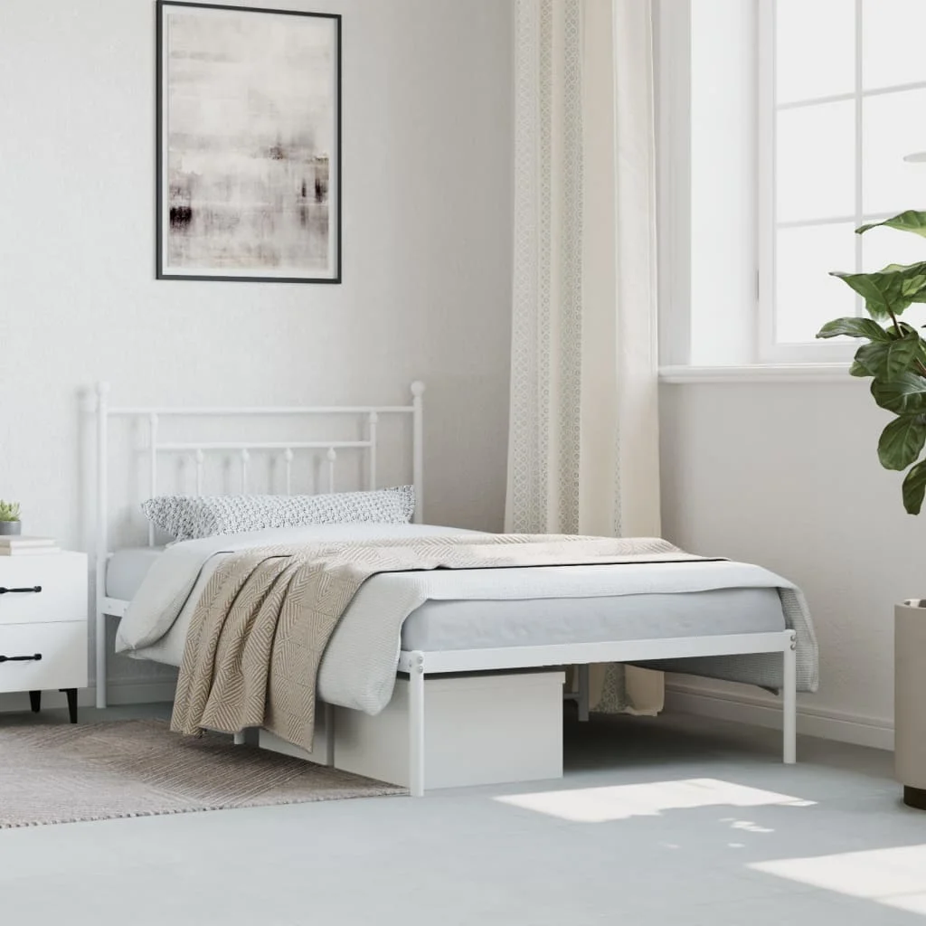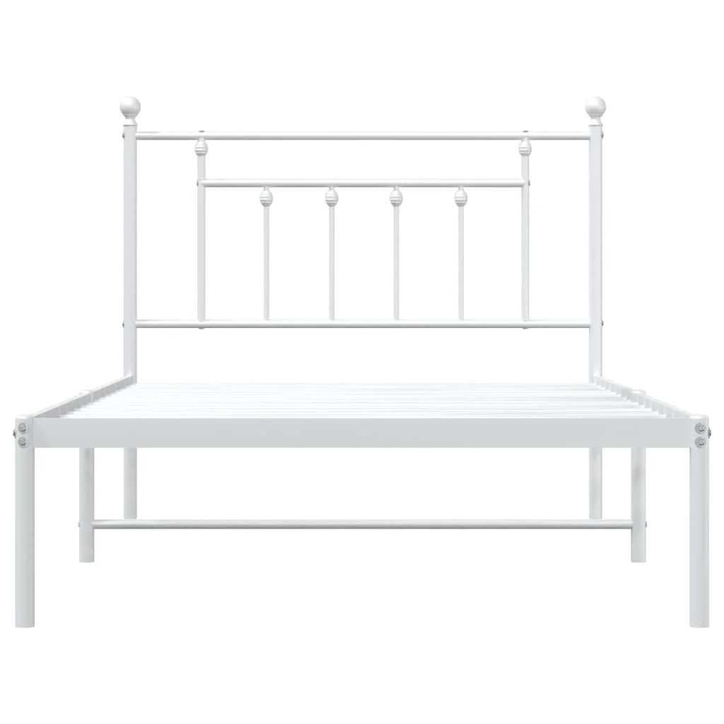 Tomshoo Metal Bed Frame with Headboard, Sturdy and Timeless Design, White 39.4"x78.7"