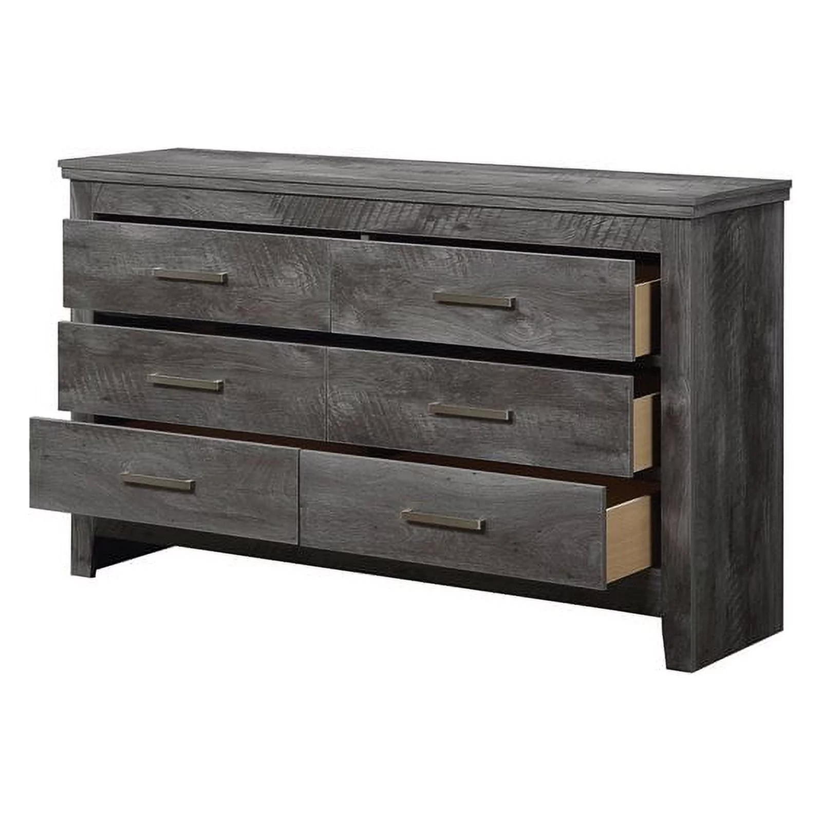 Benjara BM215295 Transitional Style Wooden Dresser with Bar Handles & Grain Details, Gray