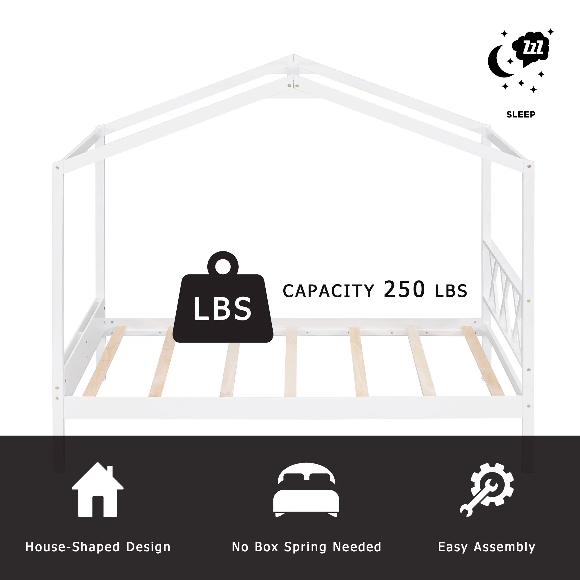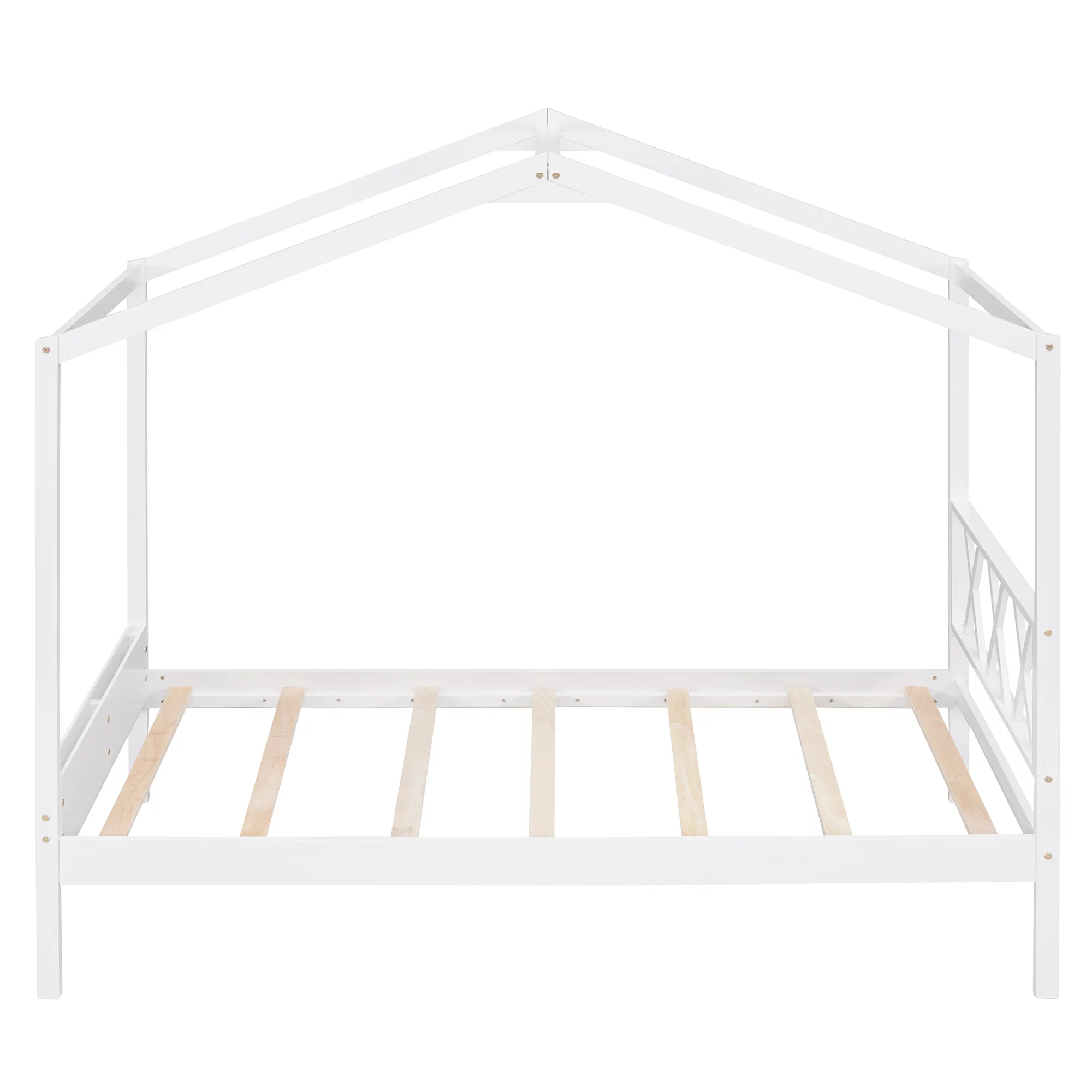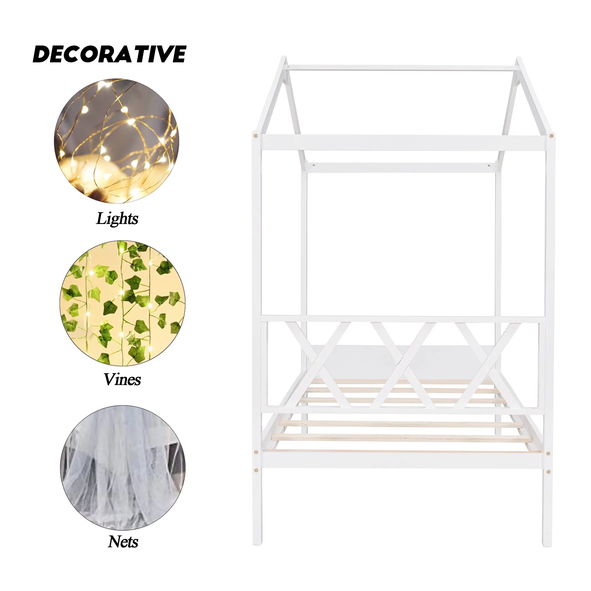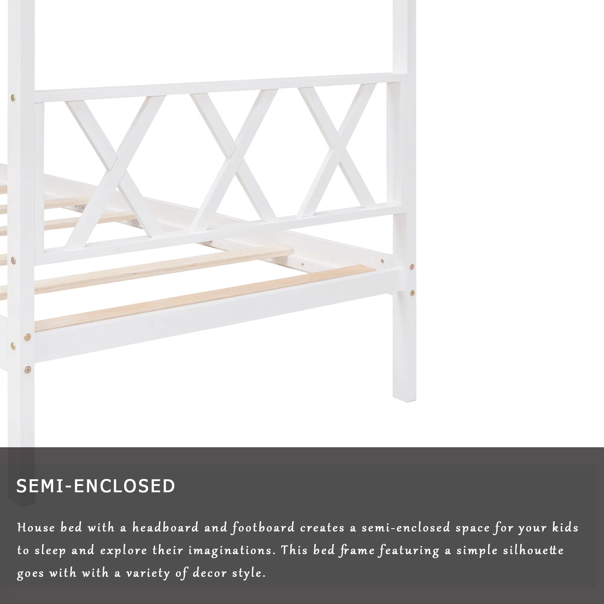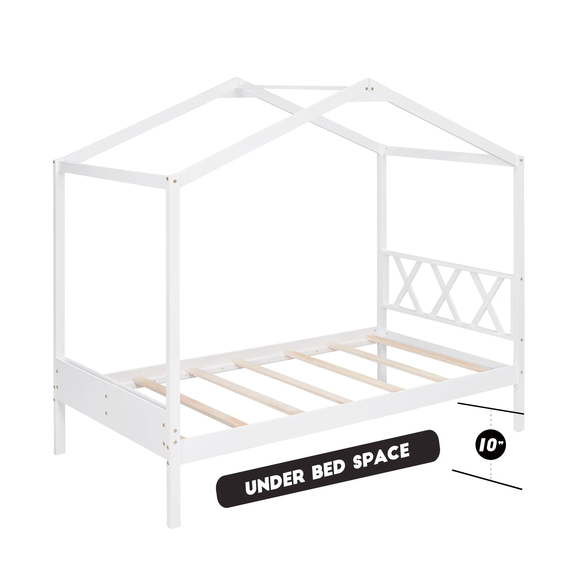 Gewnee Twin Size Kids Wood House Bed with Headboard, Footboard and Storage Space,White
