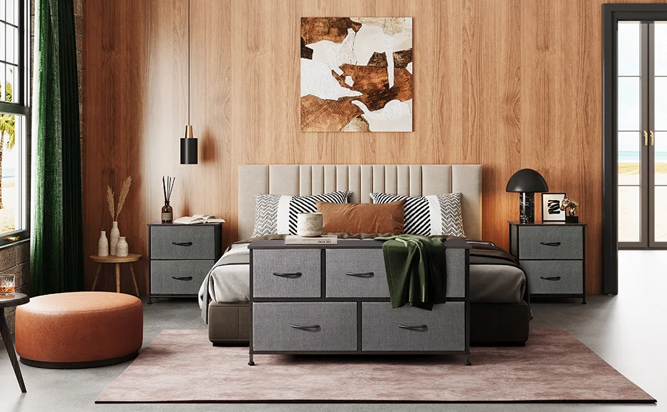 Dresser for Bedroom with 5 Drawers, Wide Chest of Drawers, Fabric Dresser, Storage