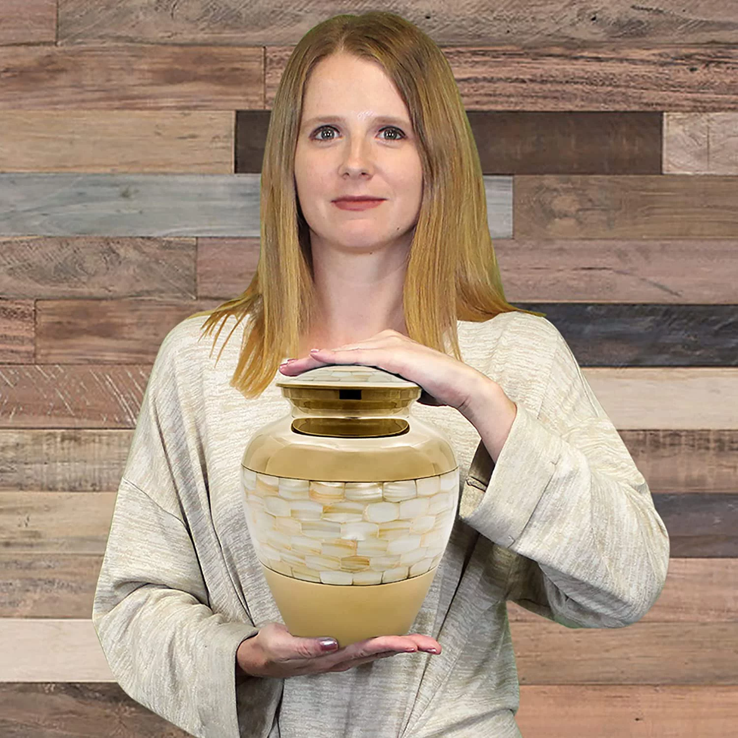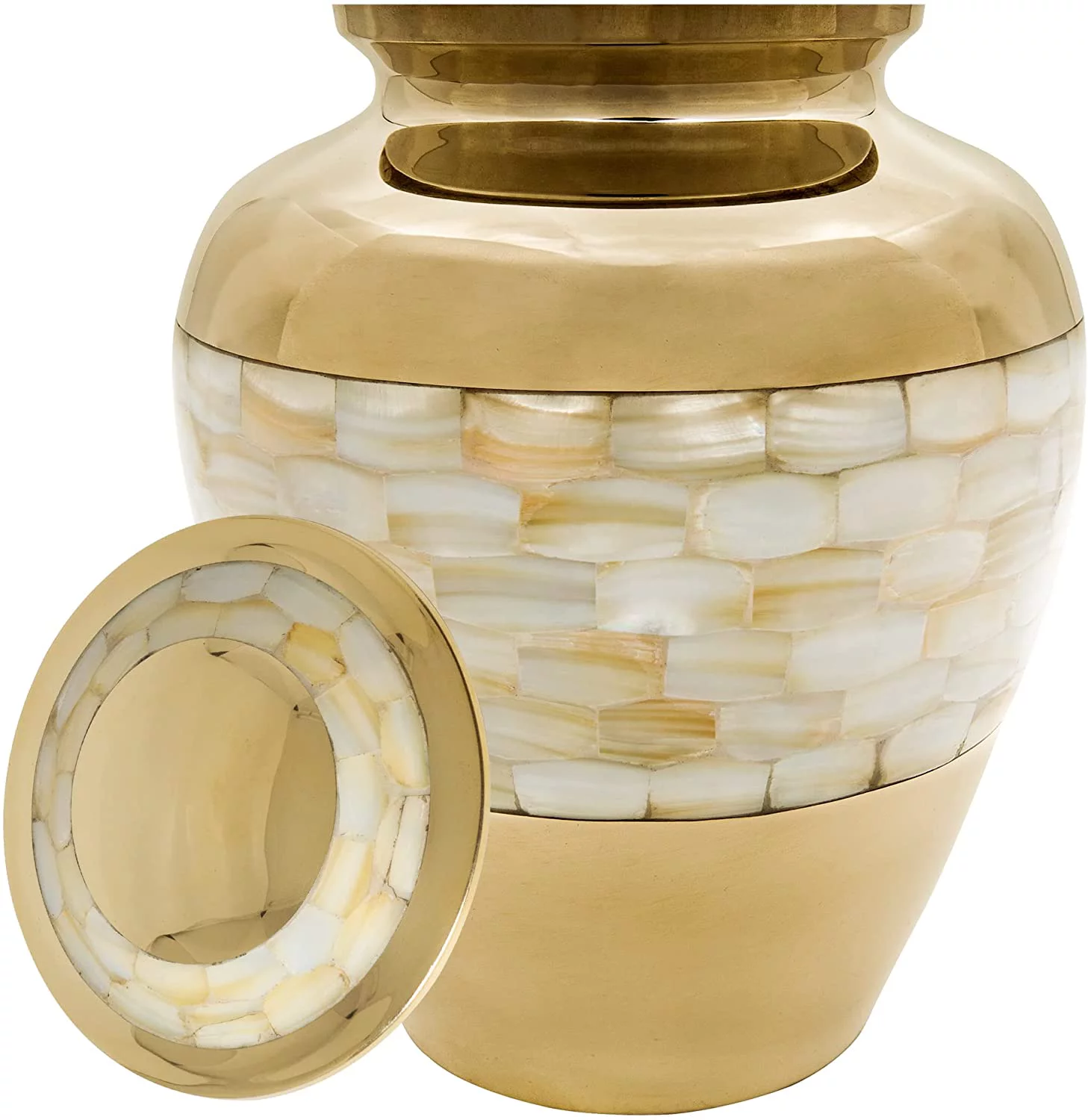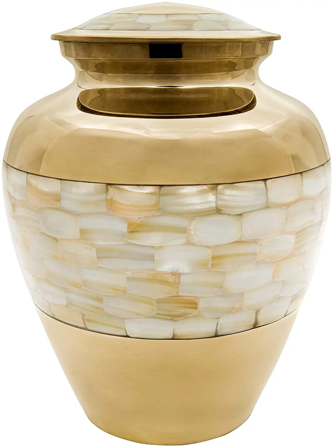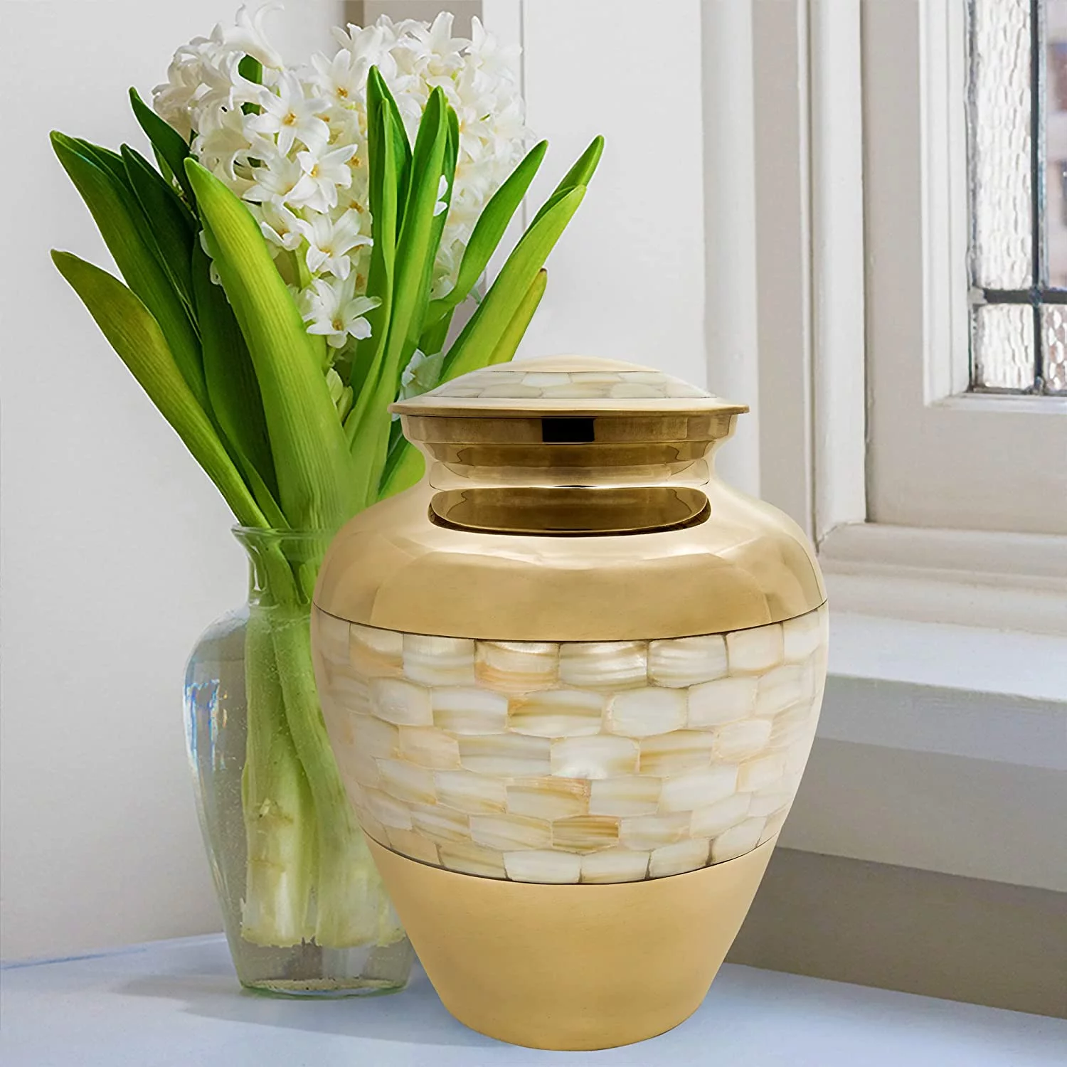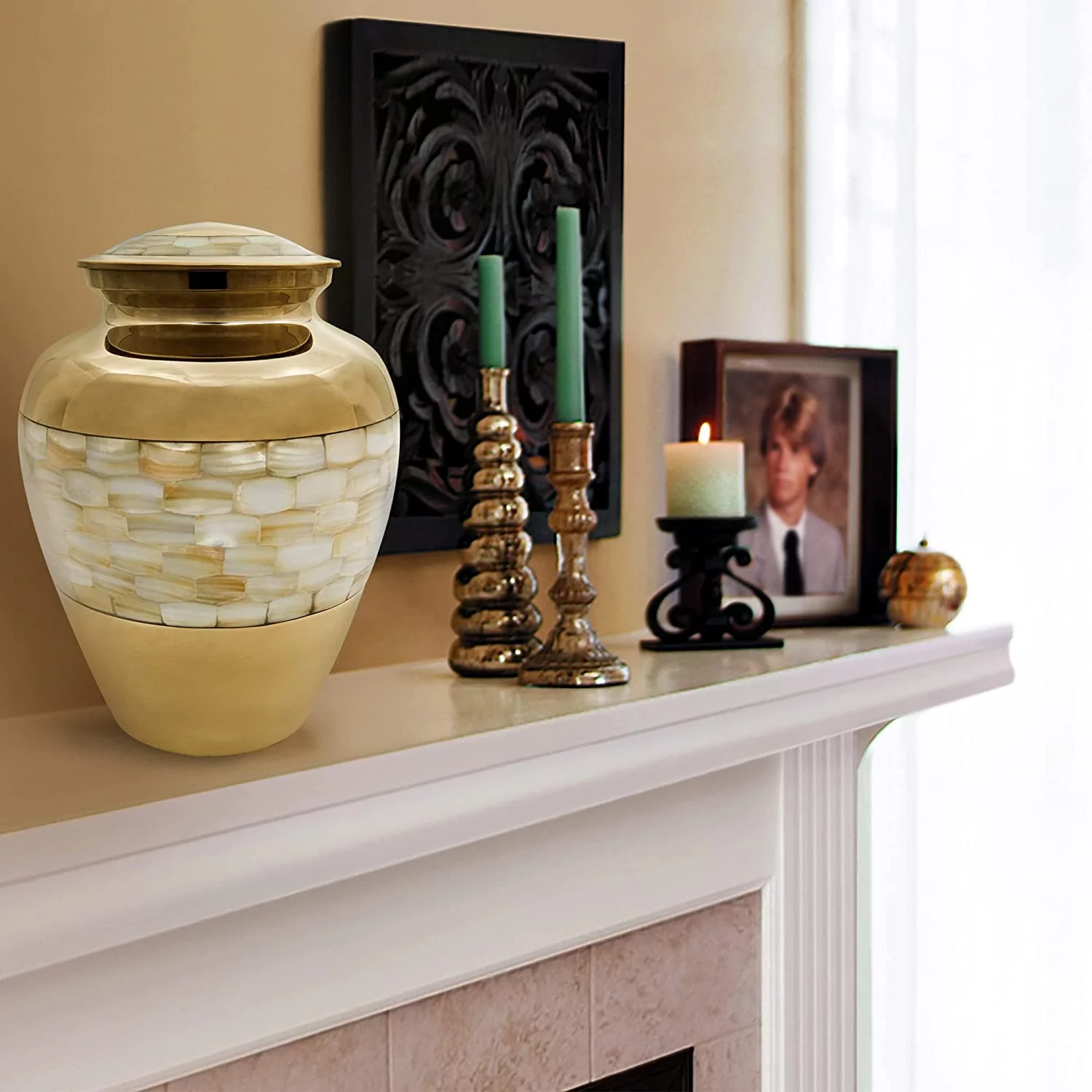 Trupoint Memorials Mother of Pearl Adult Cremation Urn for Human Ashes - with Velvet Bag
