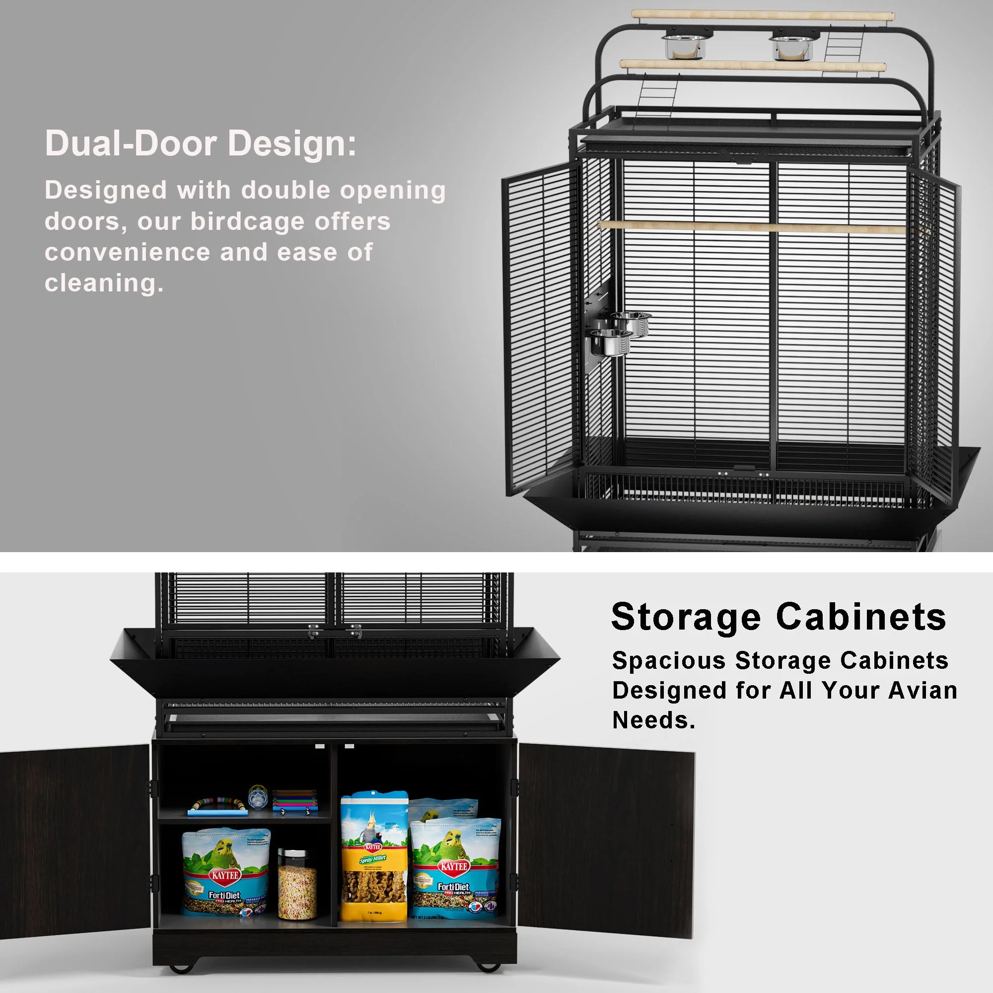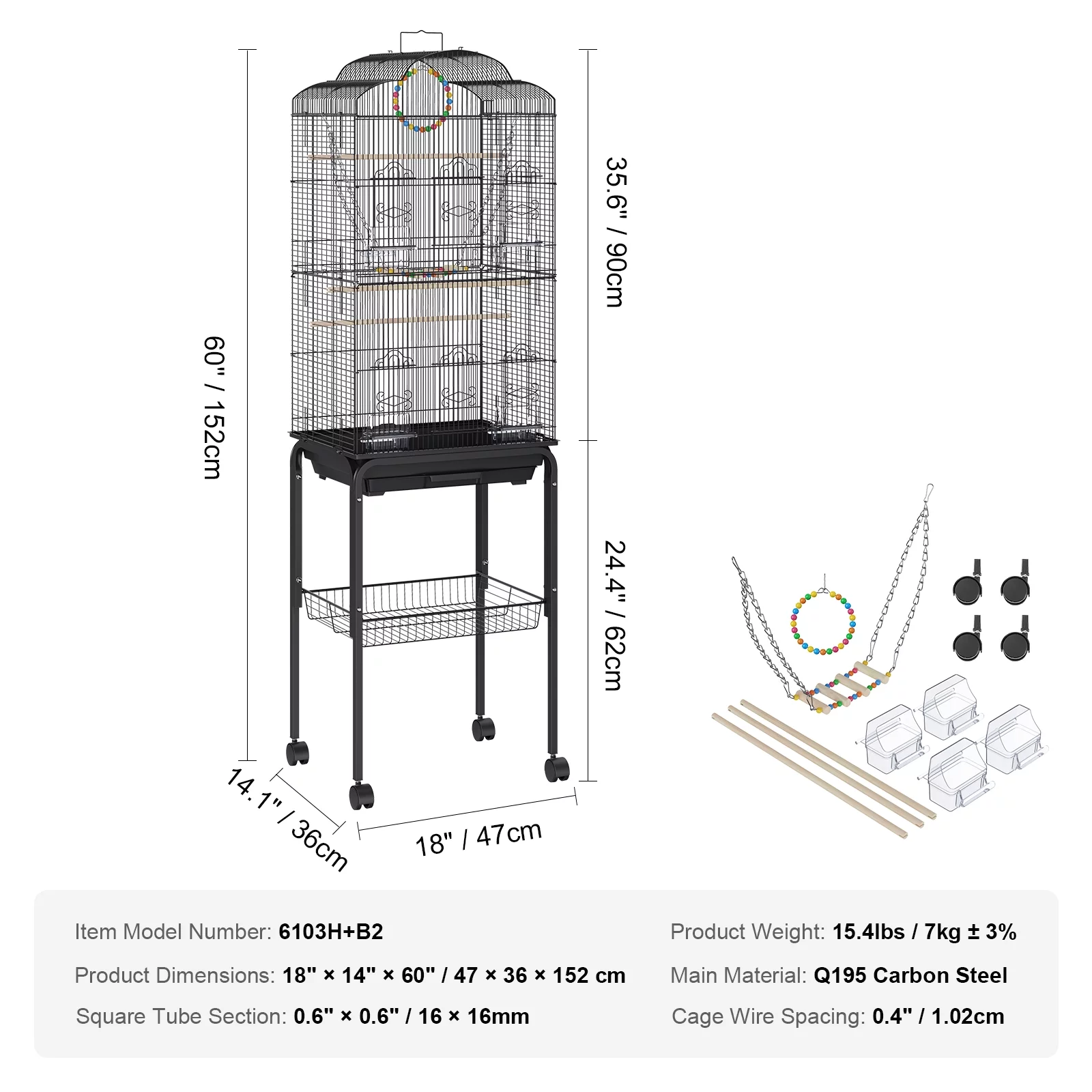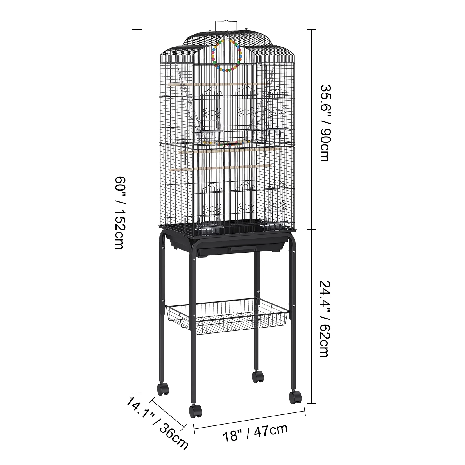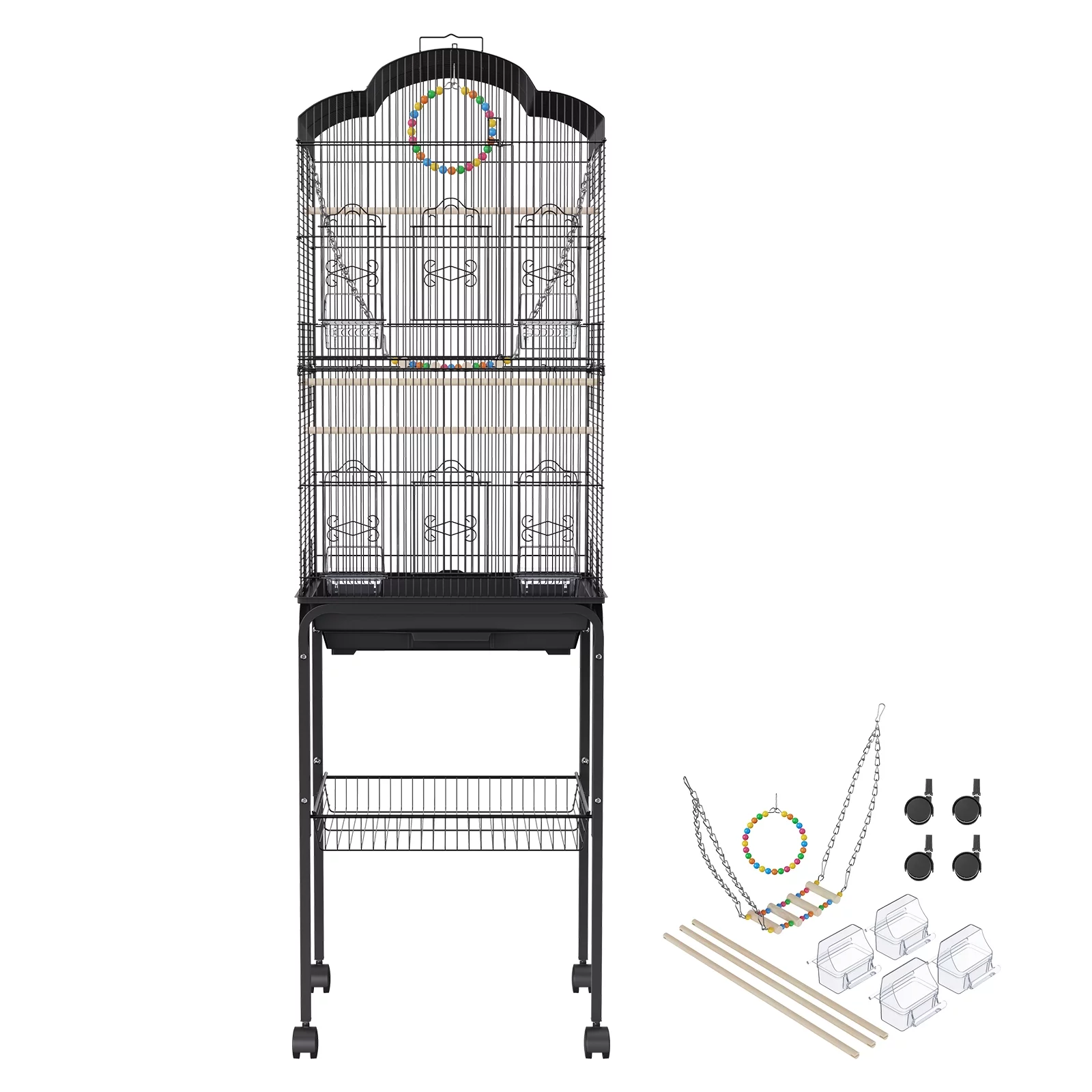 Alden Design 68.5" Rolling Metal Large Bird Cage with Play Top for Large Pet Birds