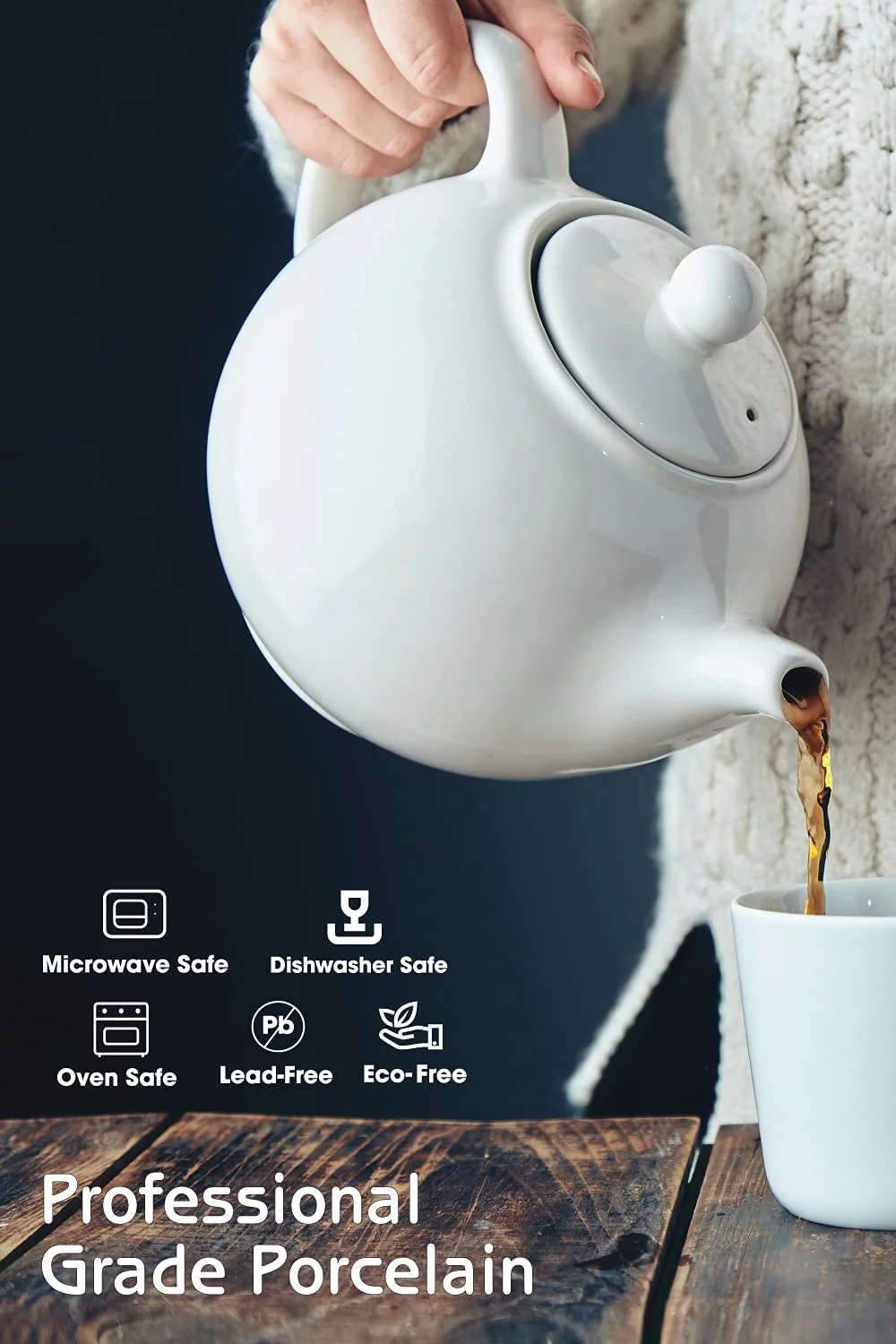 Furmaware 40oz Porcelain Teapot for Brewing Your Favorite Blooming and Loose Leaf Tea. Easy Pouring Teapot