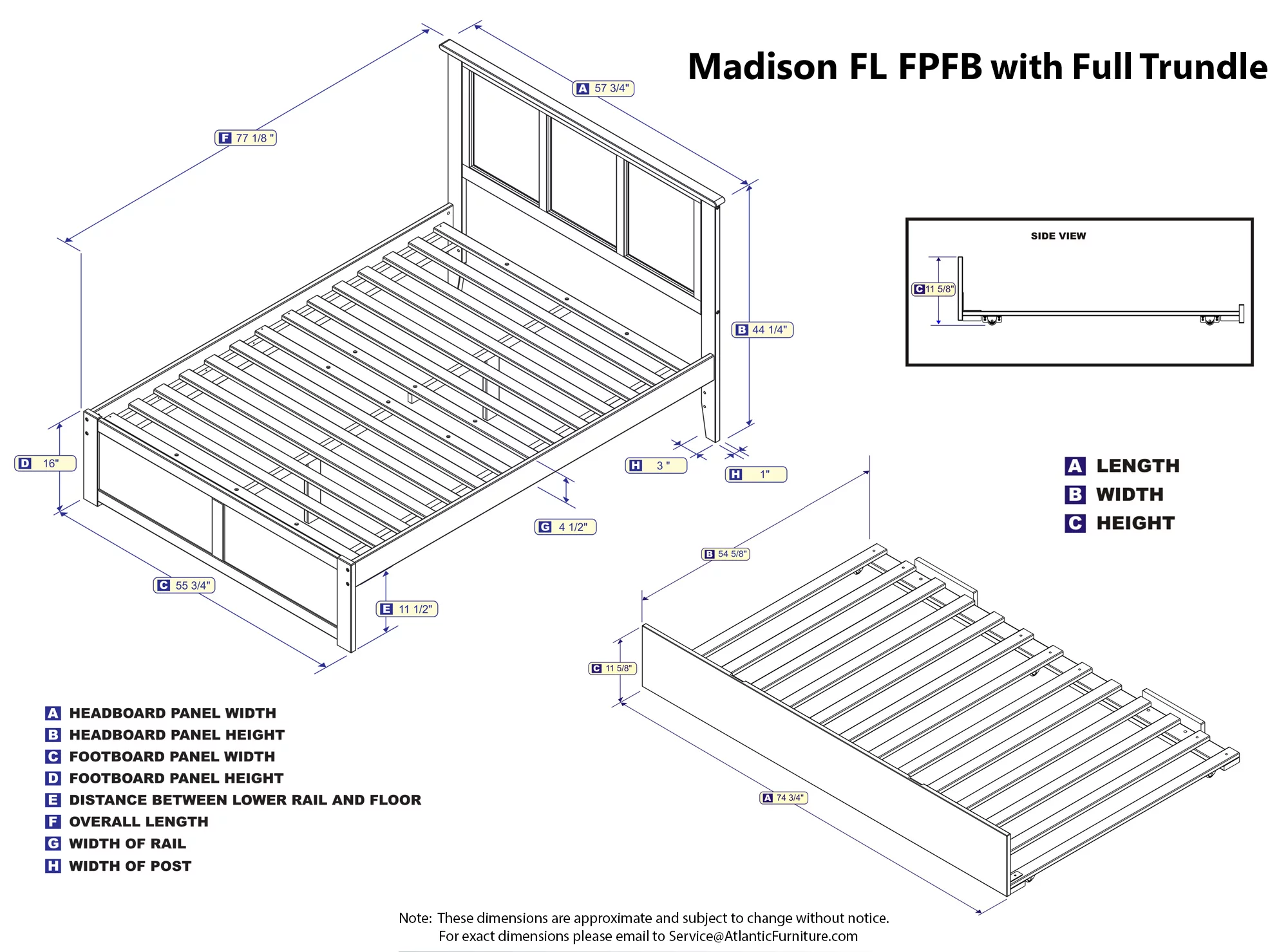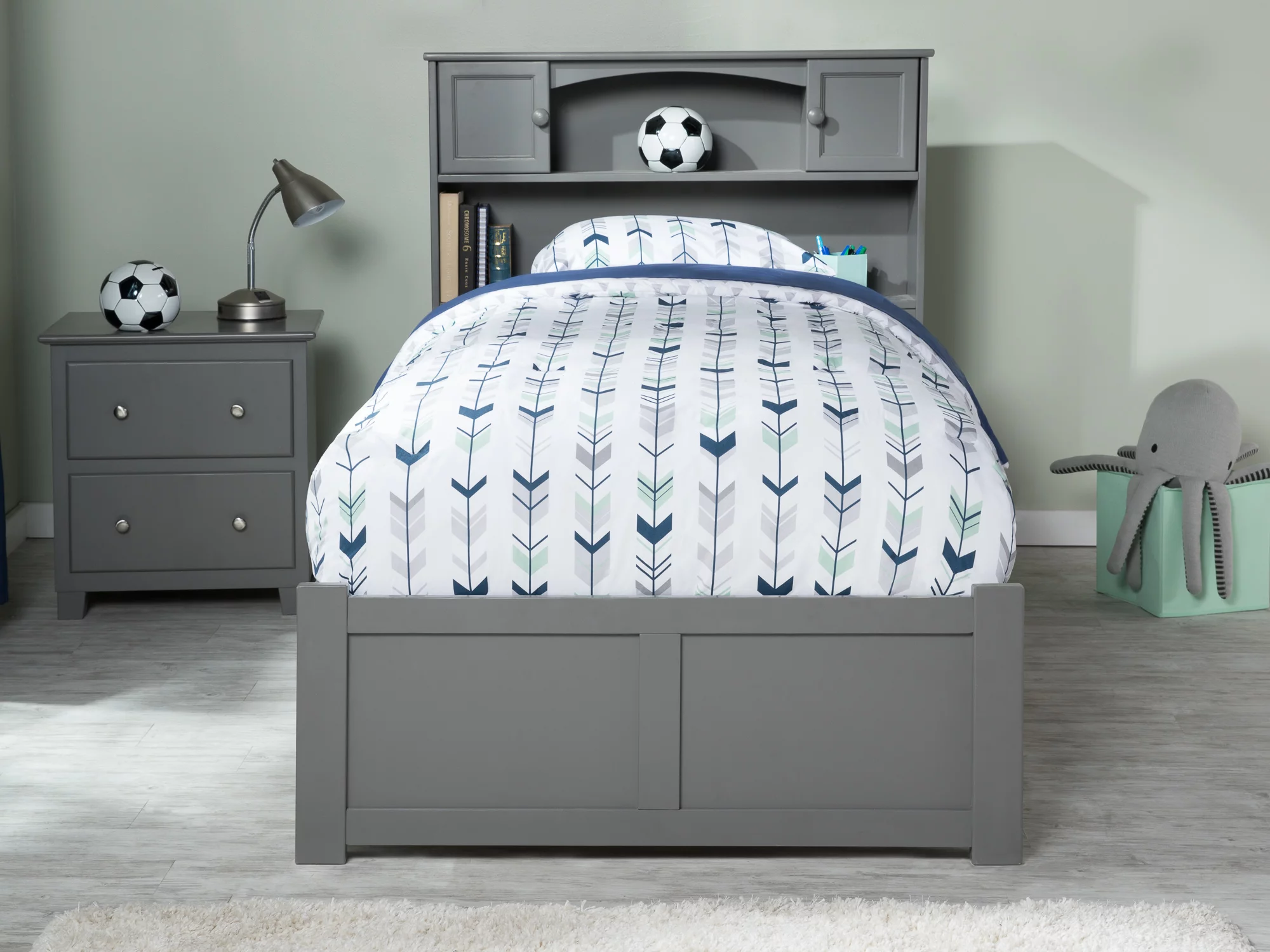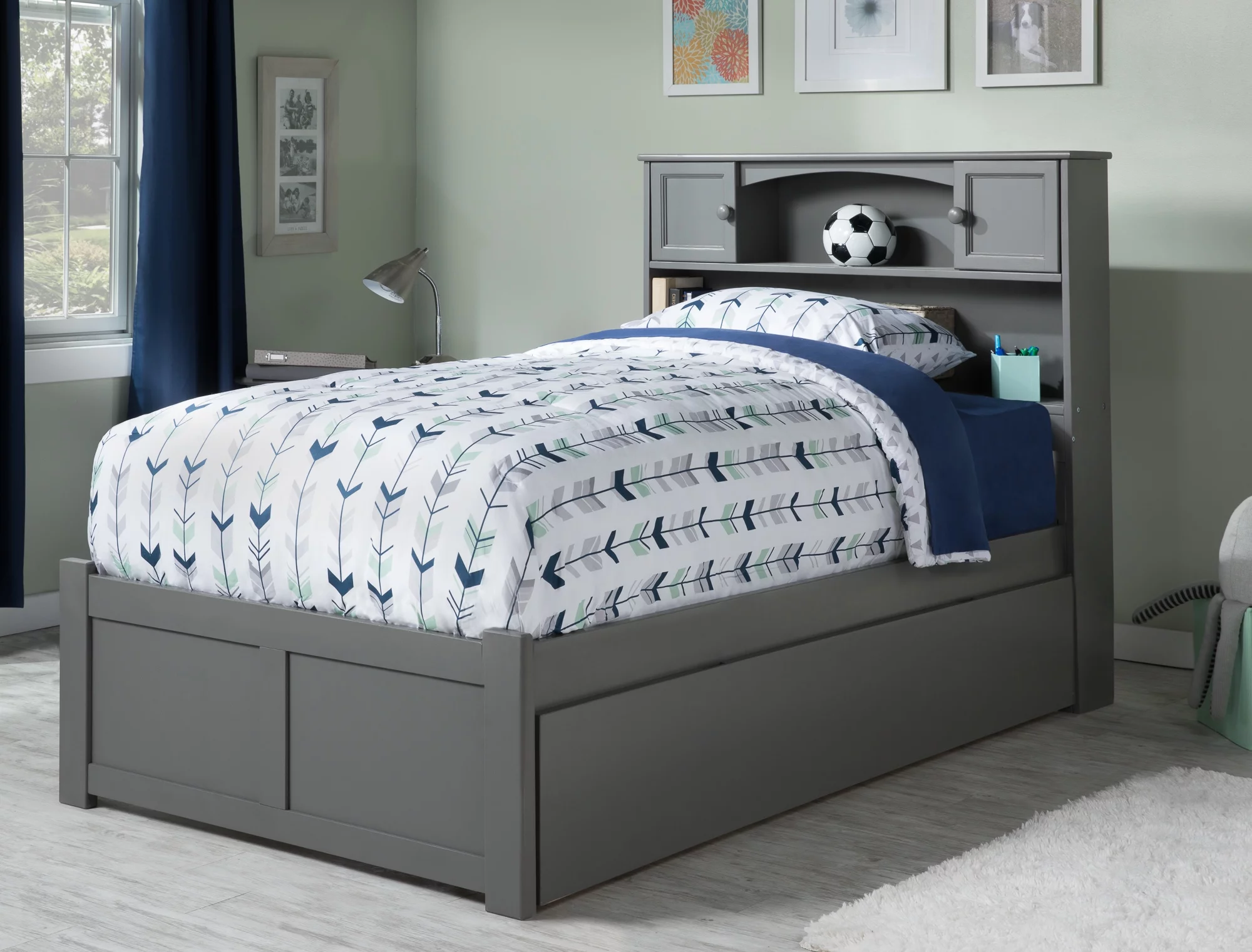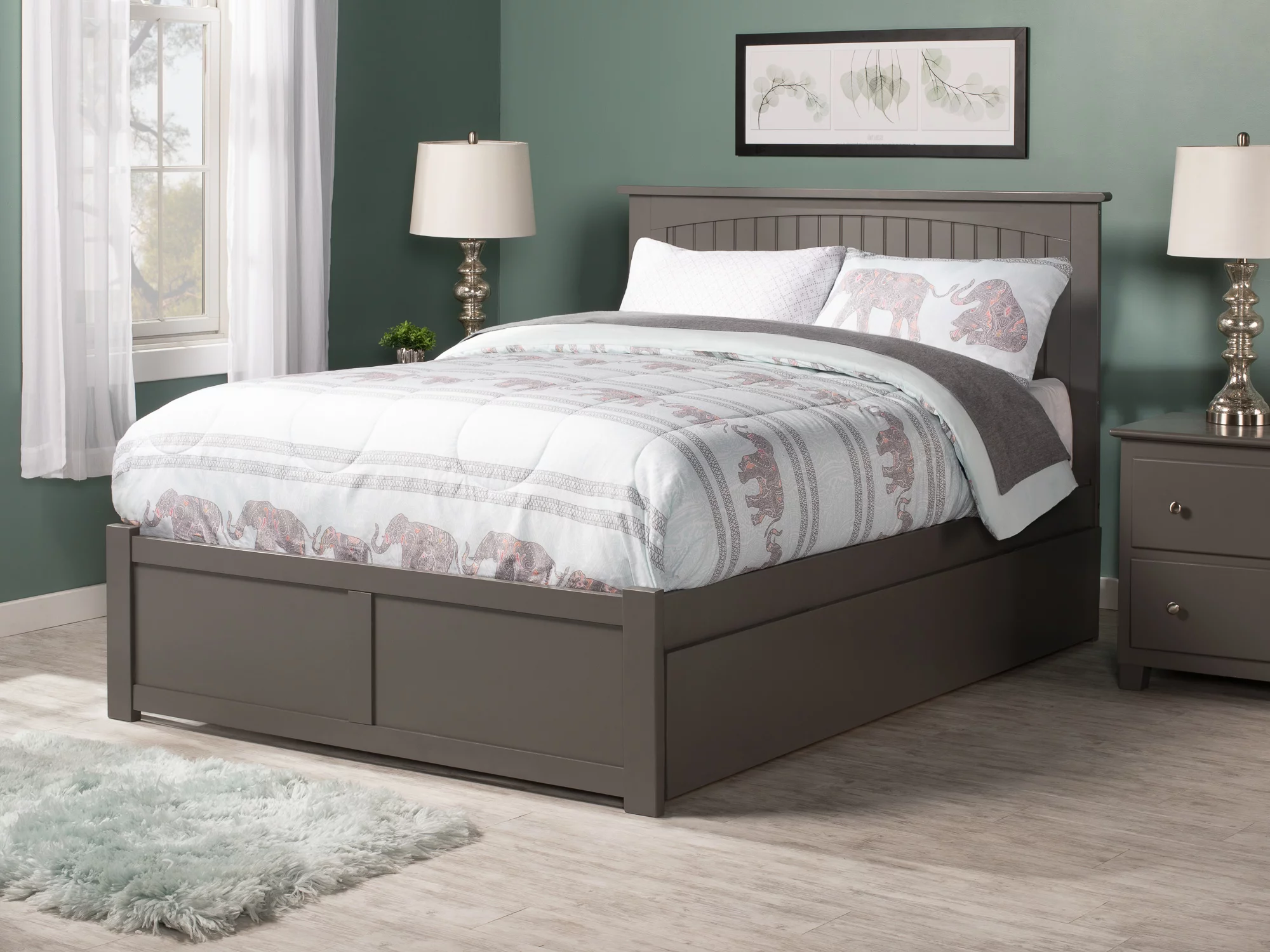 AFI Madison Full Wood Platform Bed with Matching Footboard & Full Trundle in Grey