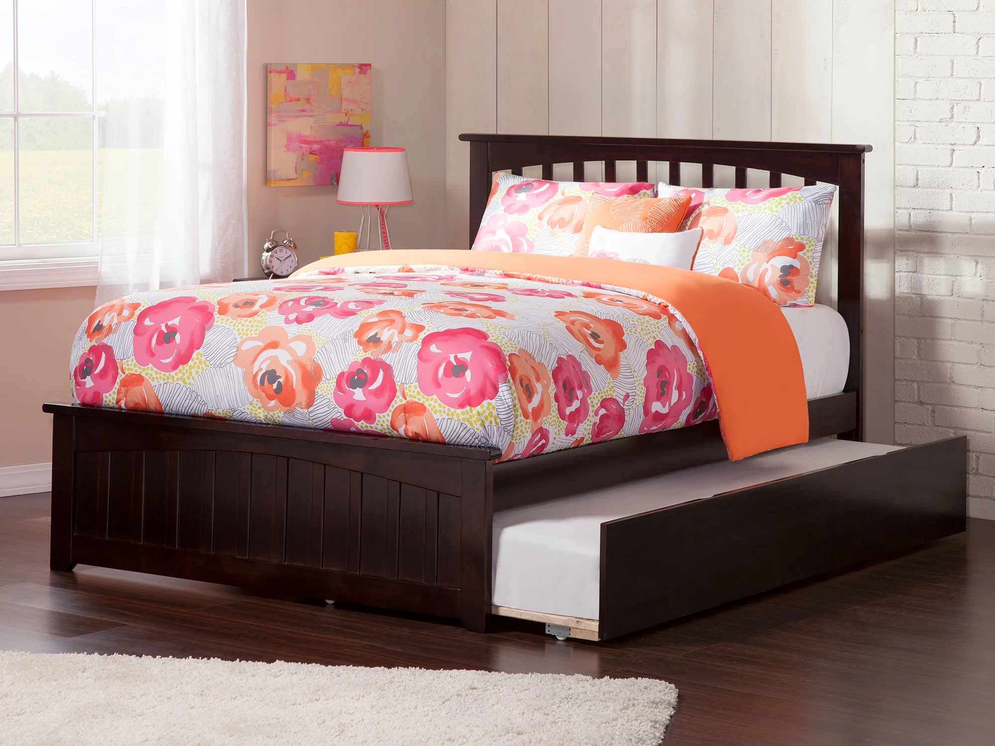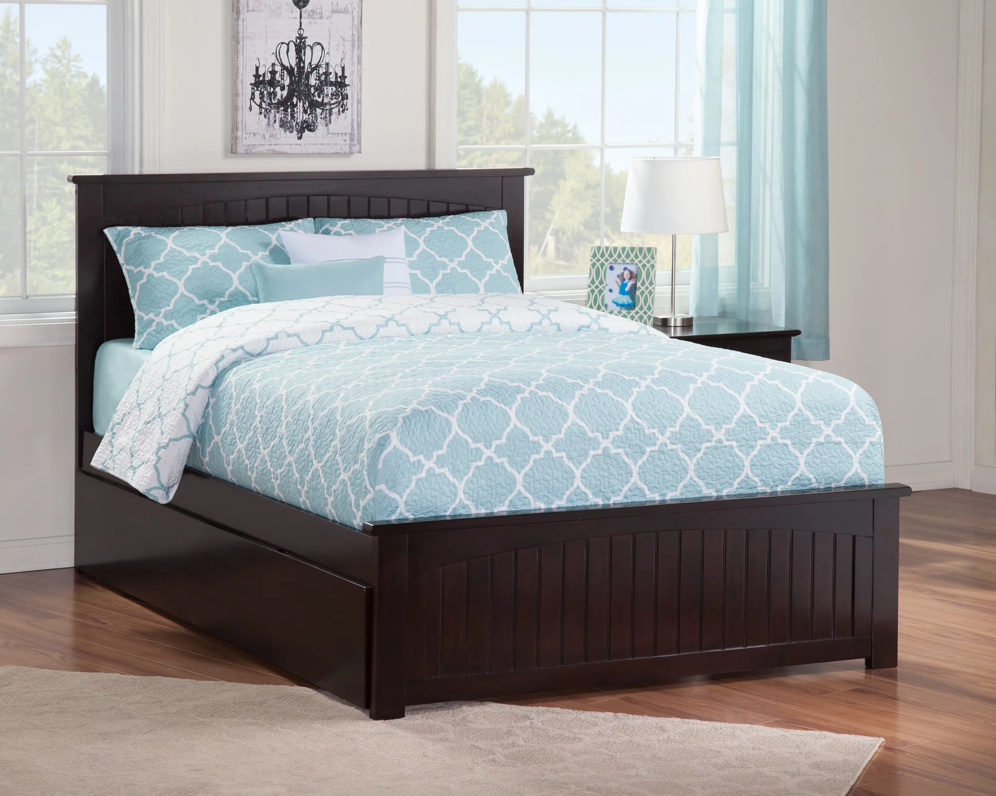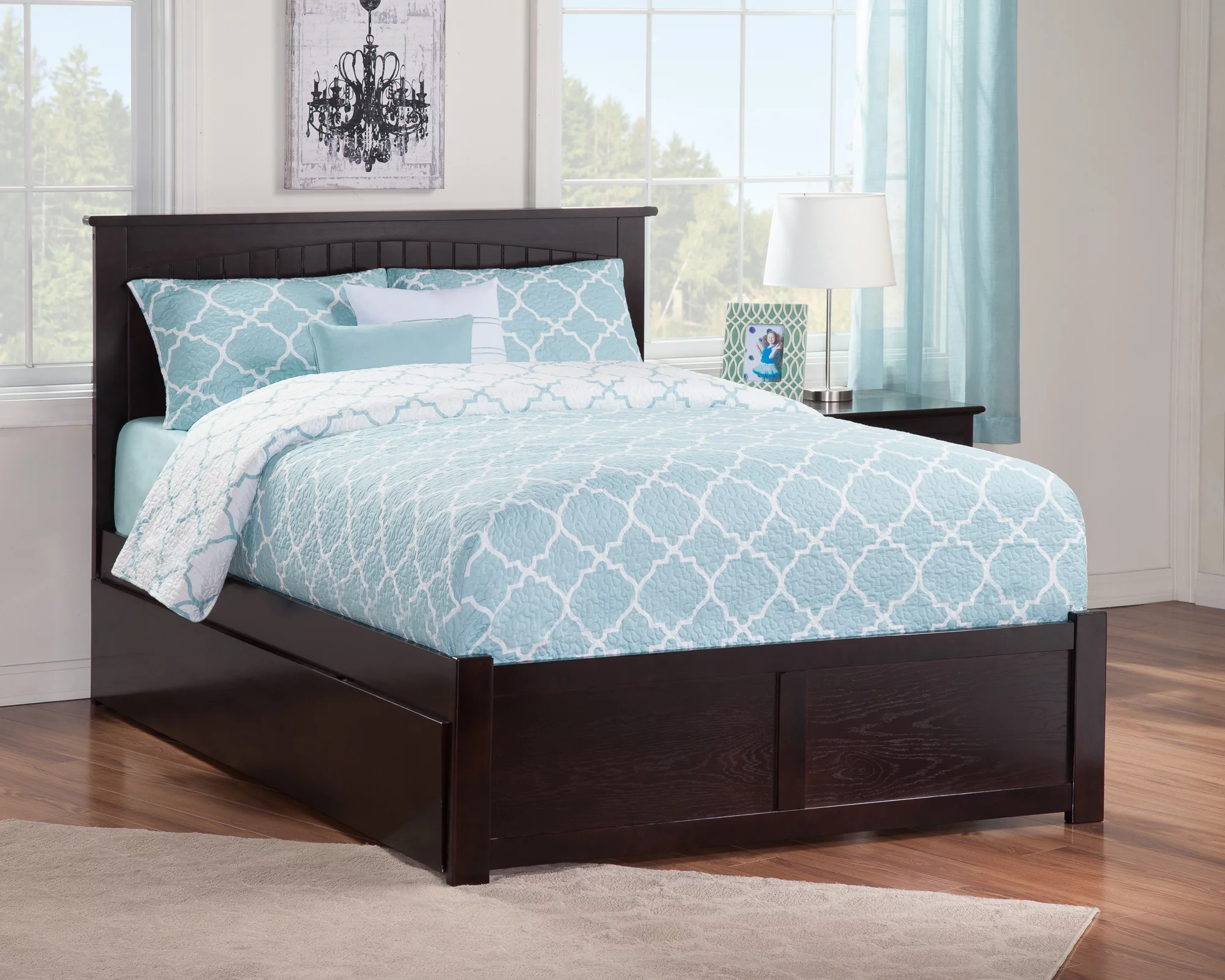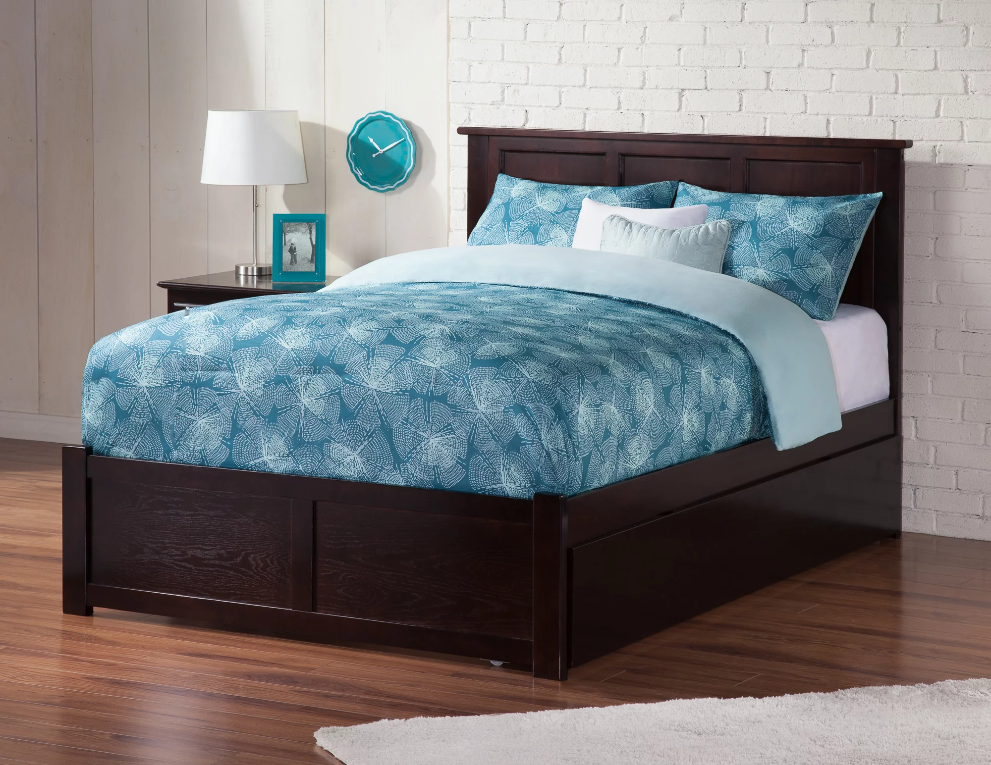 AFI Madison Full Wood Platform Bed with Matching Footboard & Full Trundle in Espresso