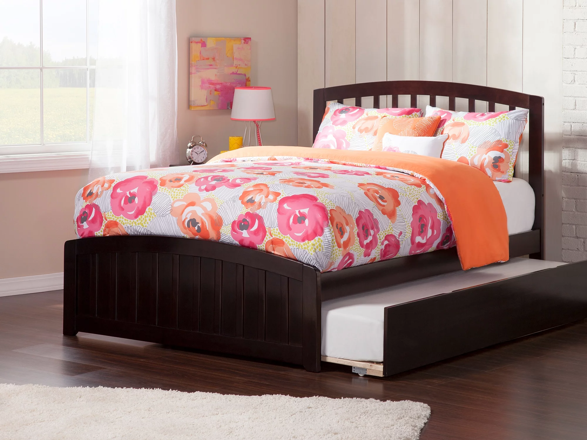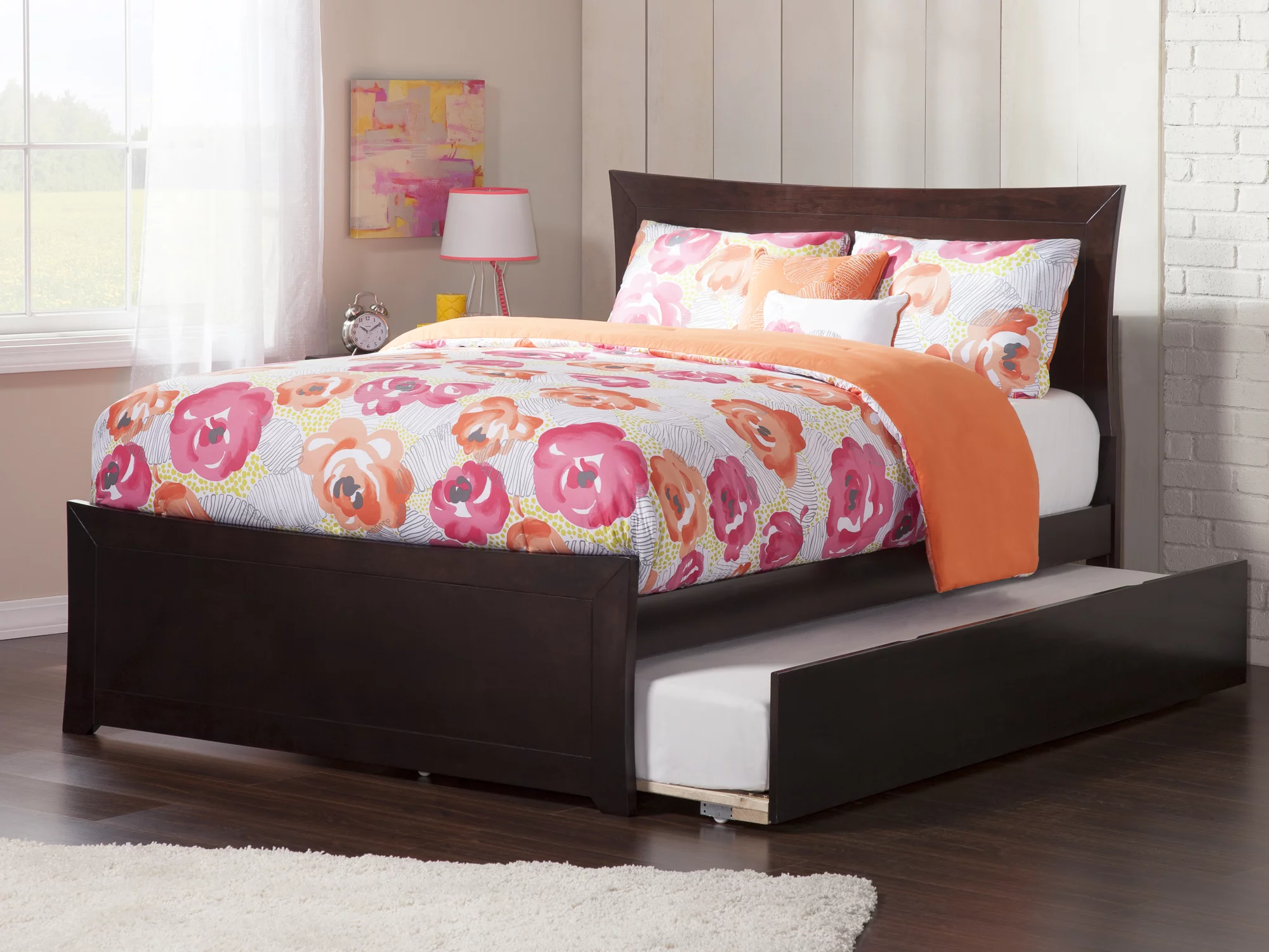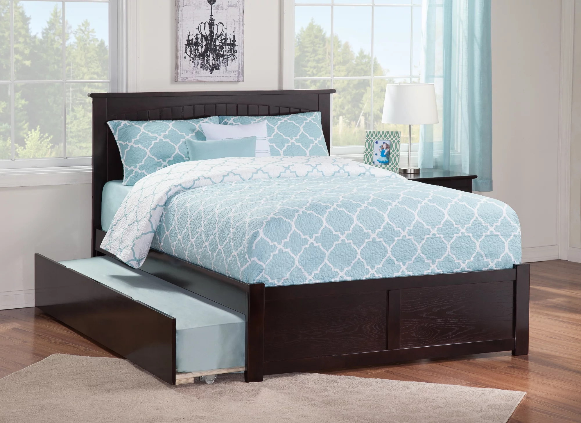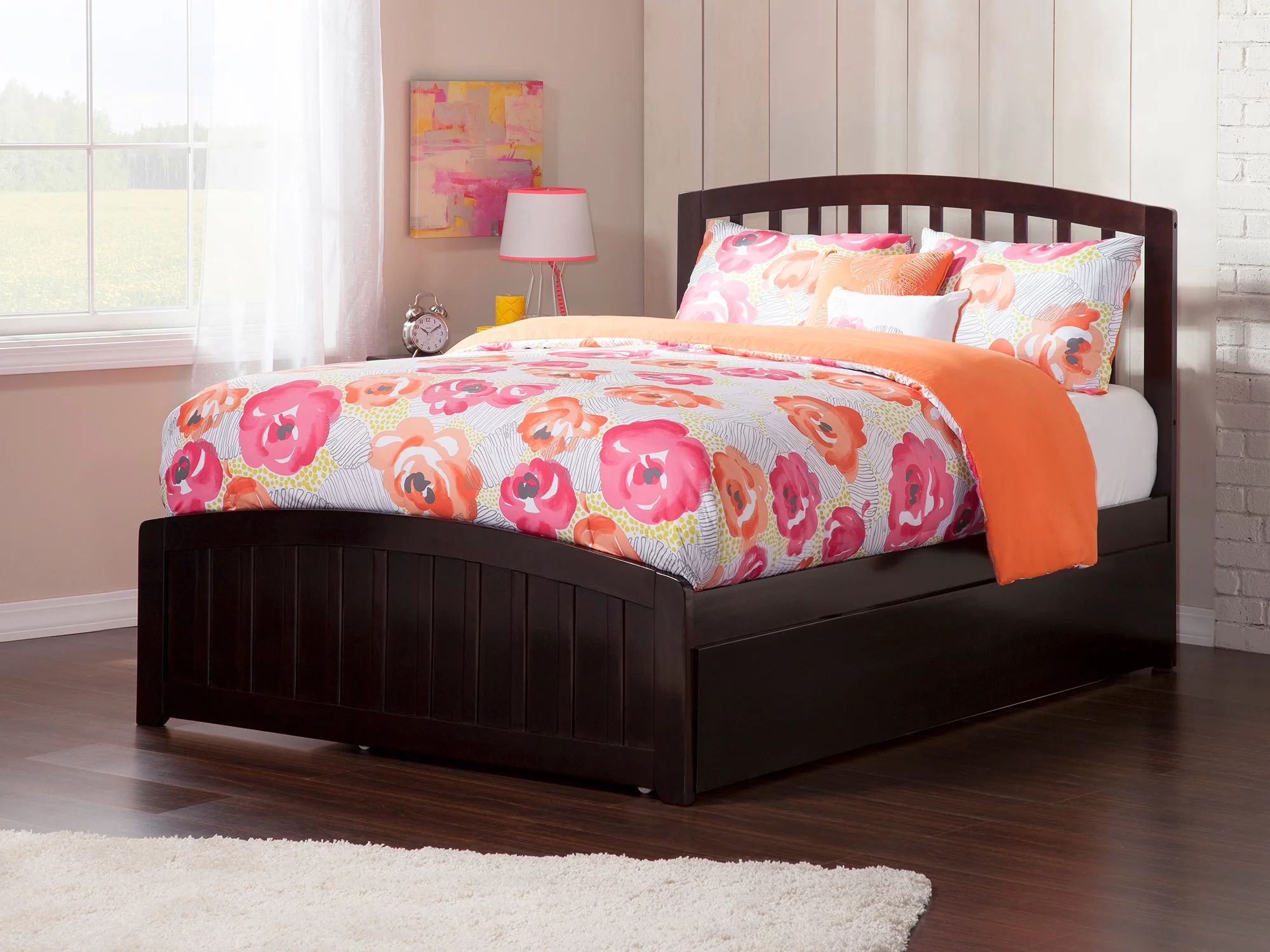 AFI Madison Full Wood Platform Bed with Matching Footboard & Full Trundle in Espresso