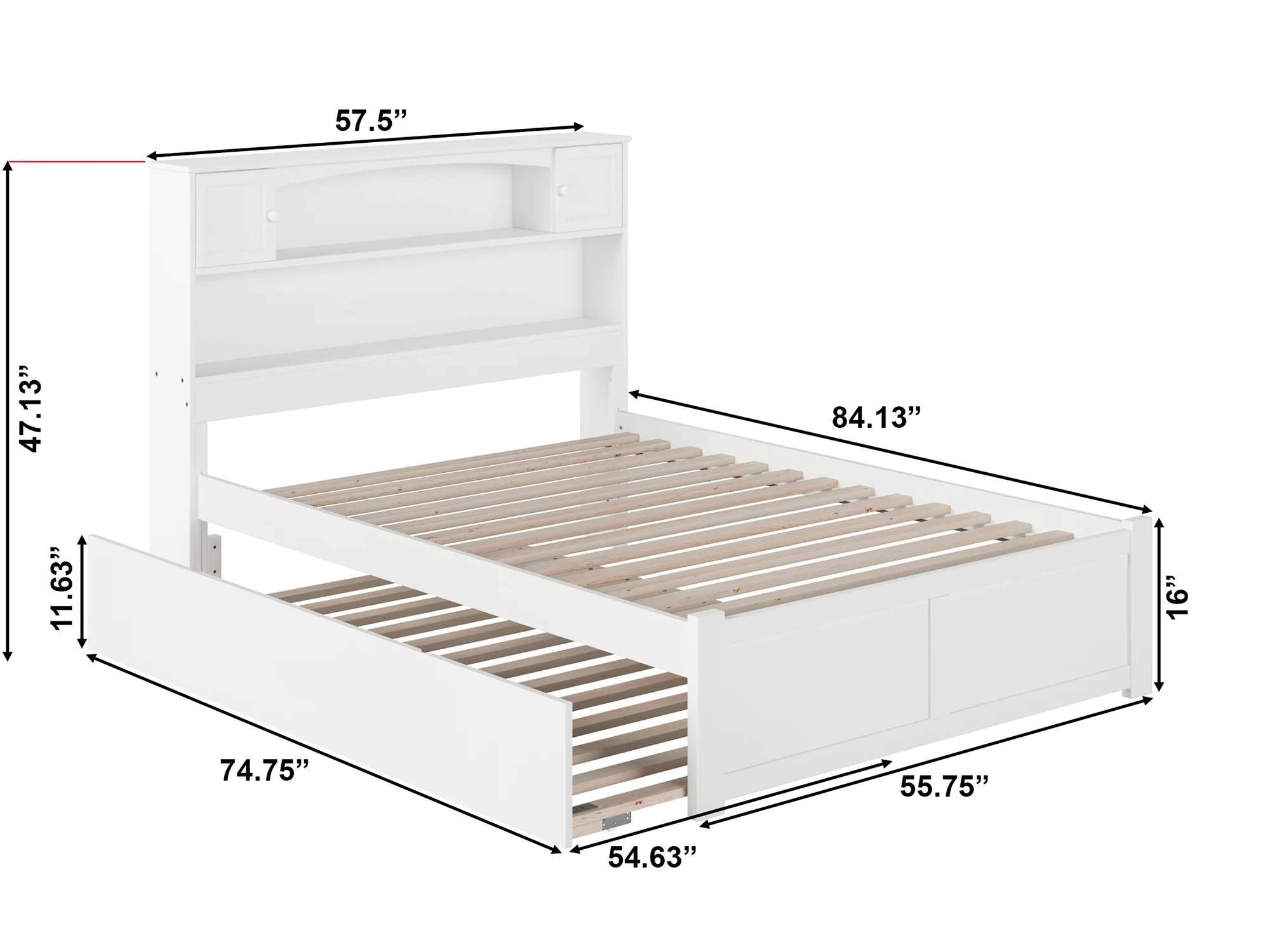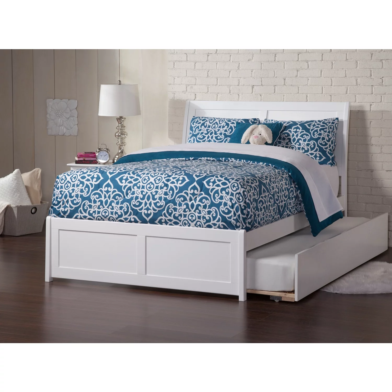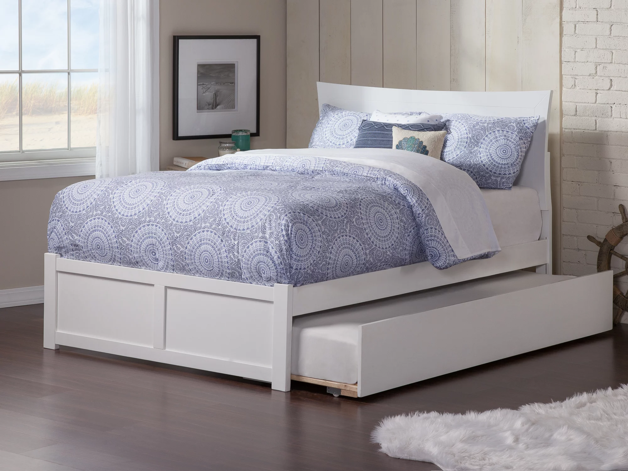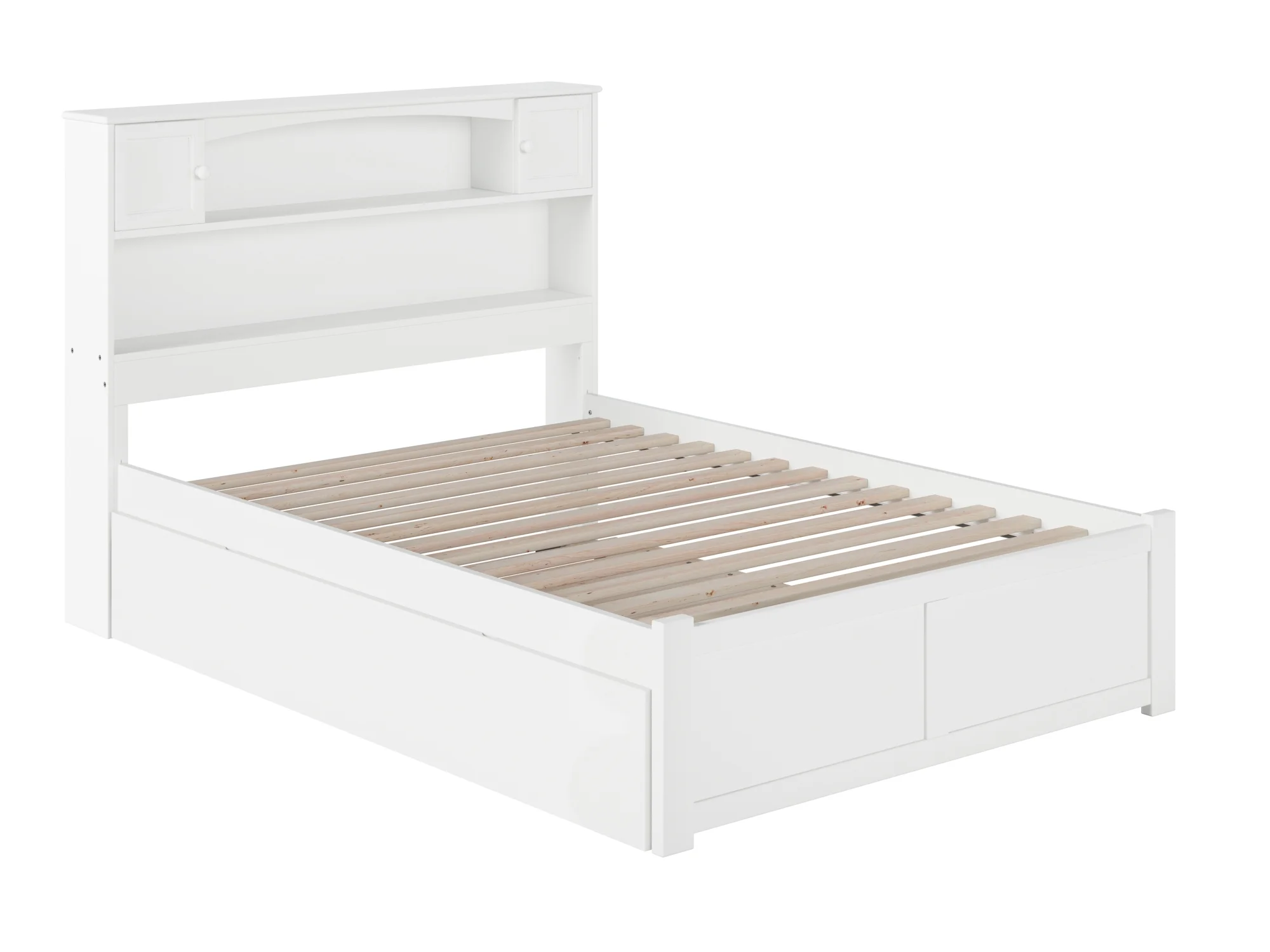 AFI Newport Full Solid Wood Platform Bed with Footboard & Full Trundle in White