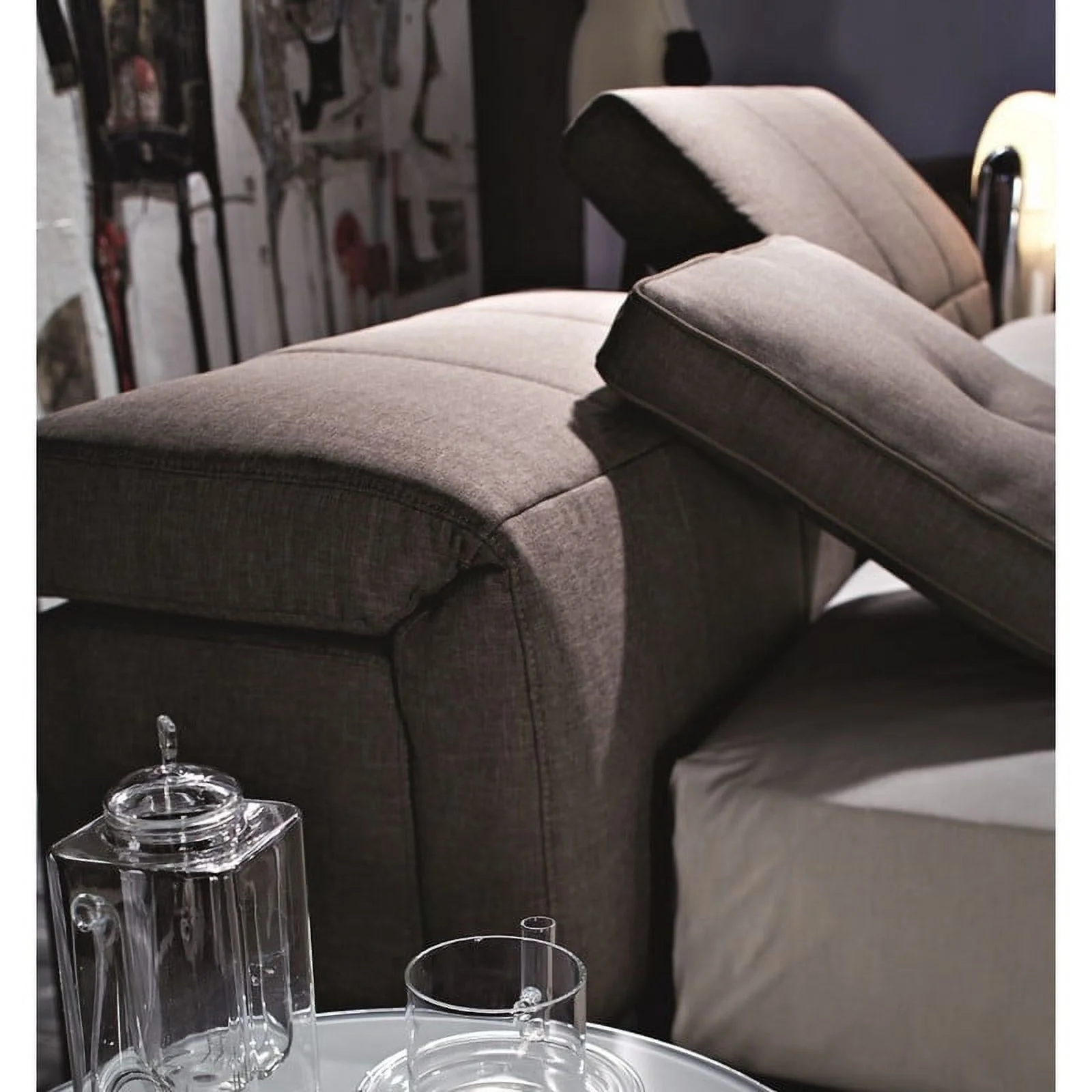 Eni Upholstered Bed with Tufted Adjustable Headboard, Taupe - Queen Size
