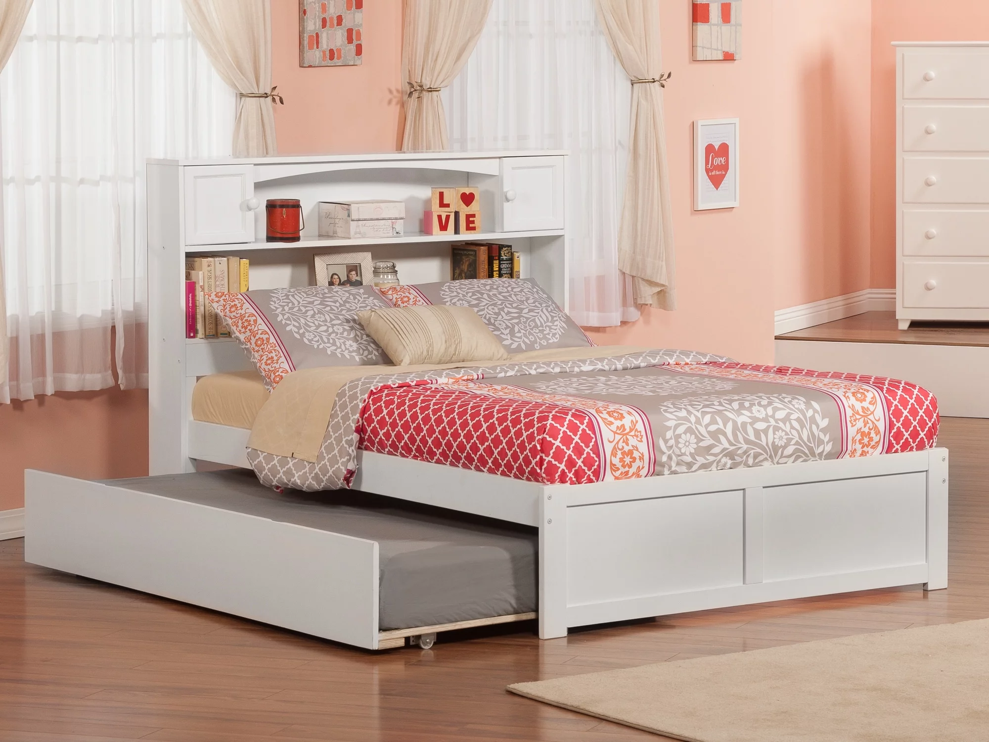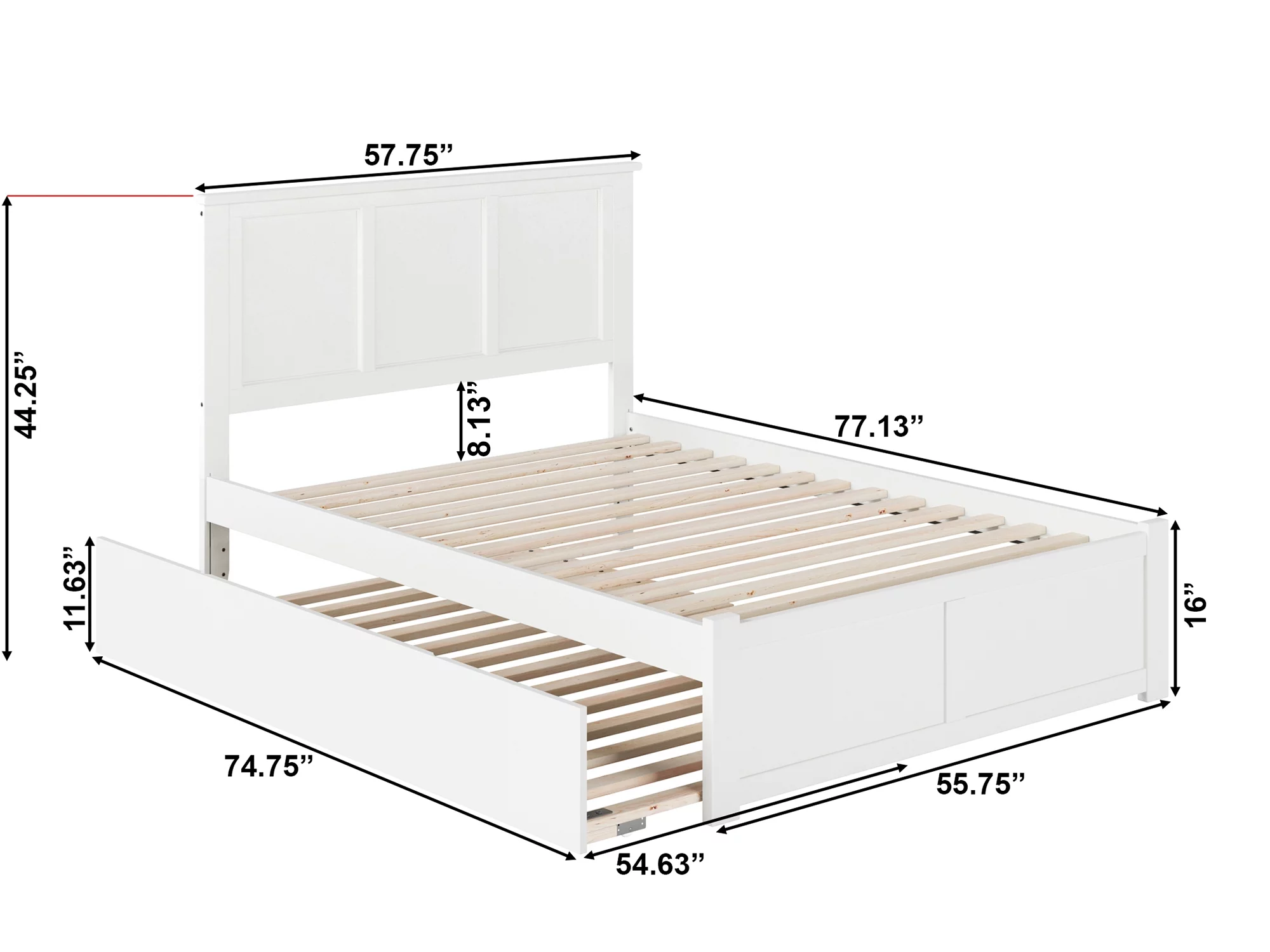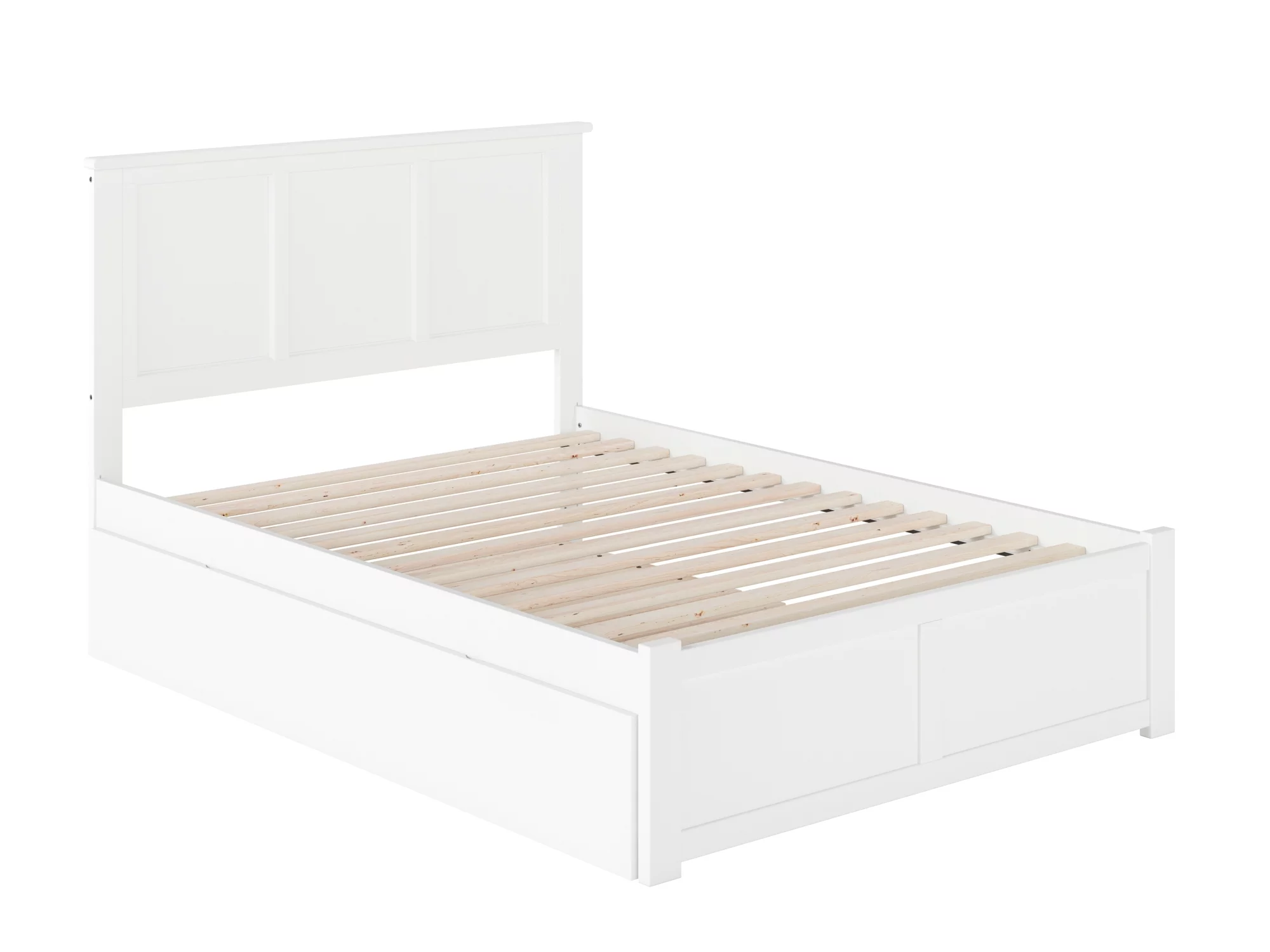 AFI Madison Full Solid Wood Platform Bed with Footboard & Full Trundle in White