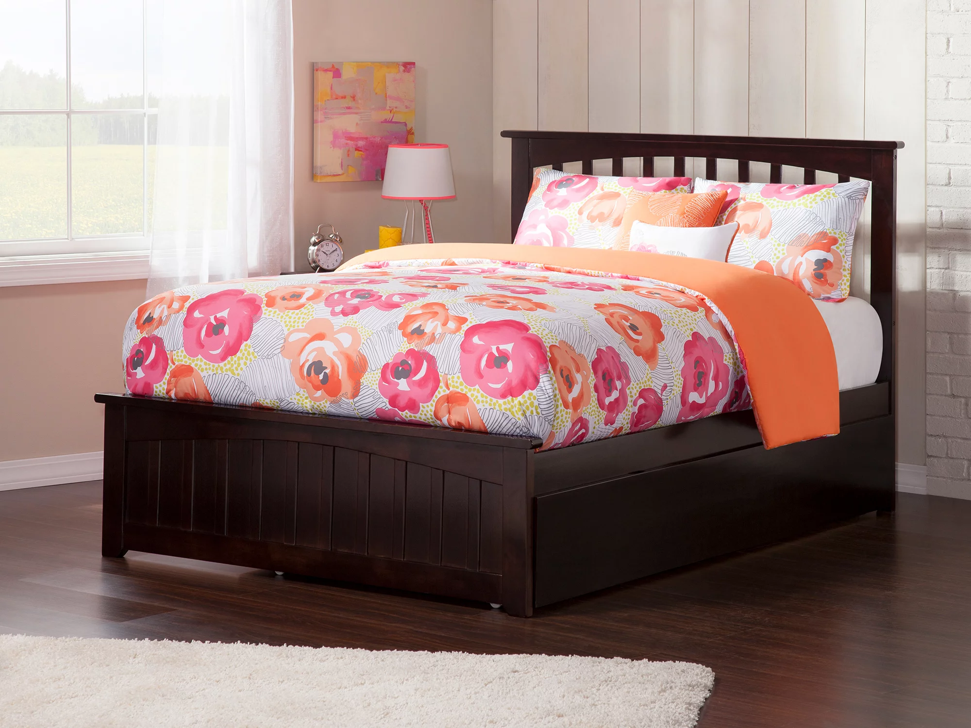 Mission Full Platform Bed with Matching Foot Board with Full Size Urban Trundle Bed in Espresso