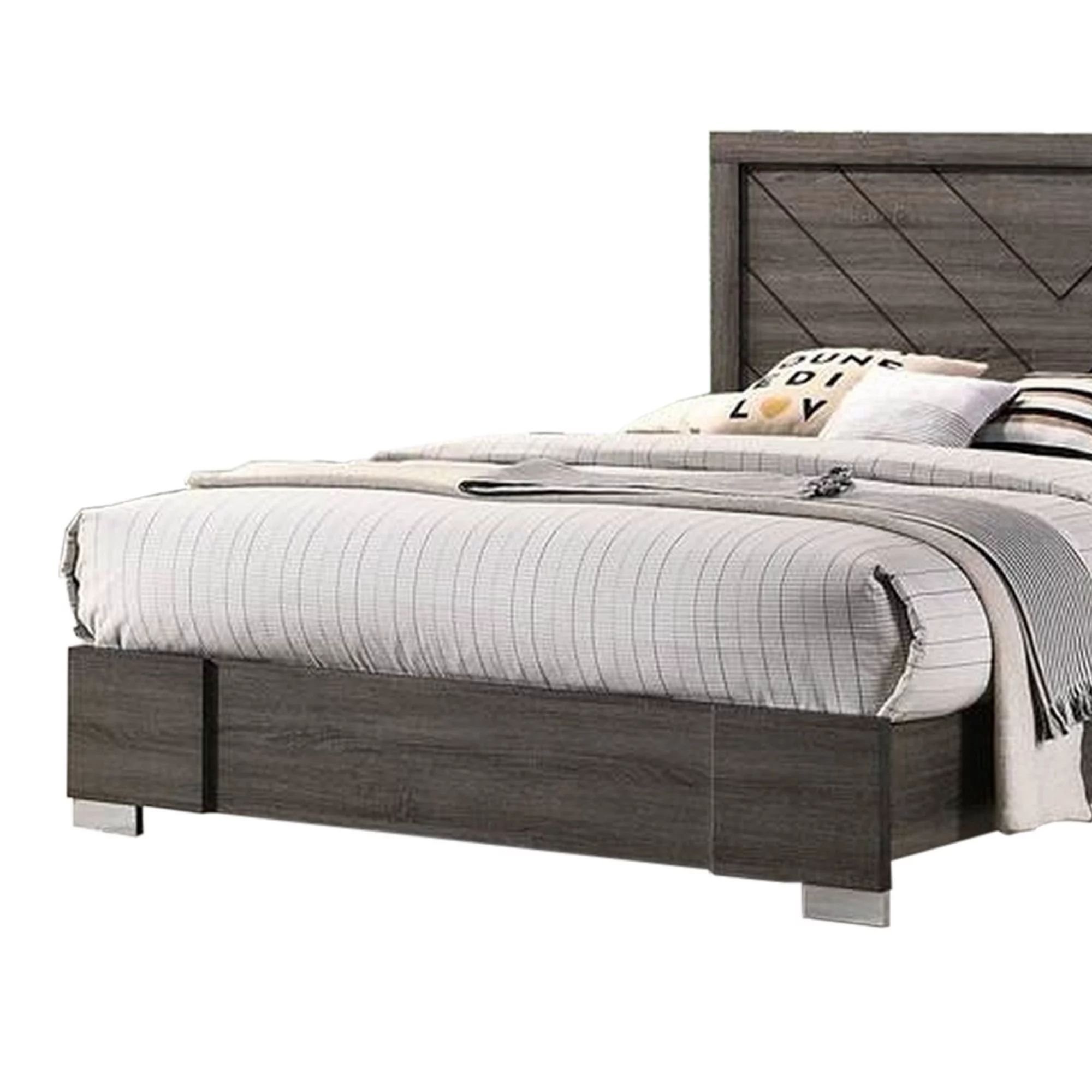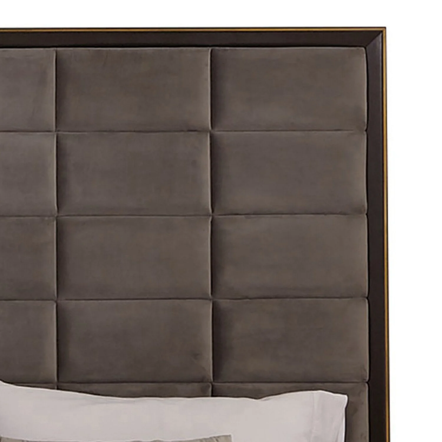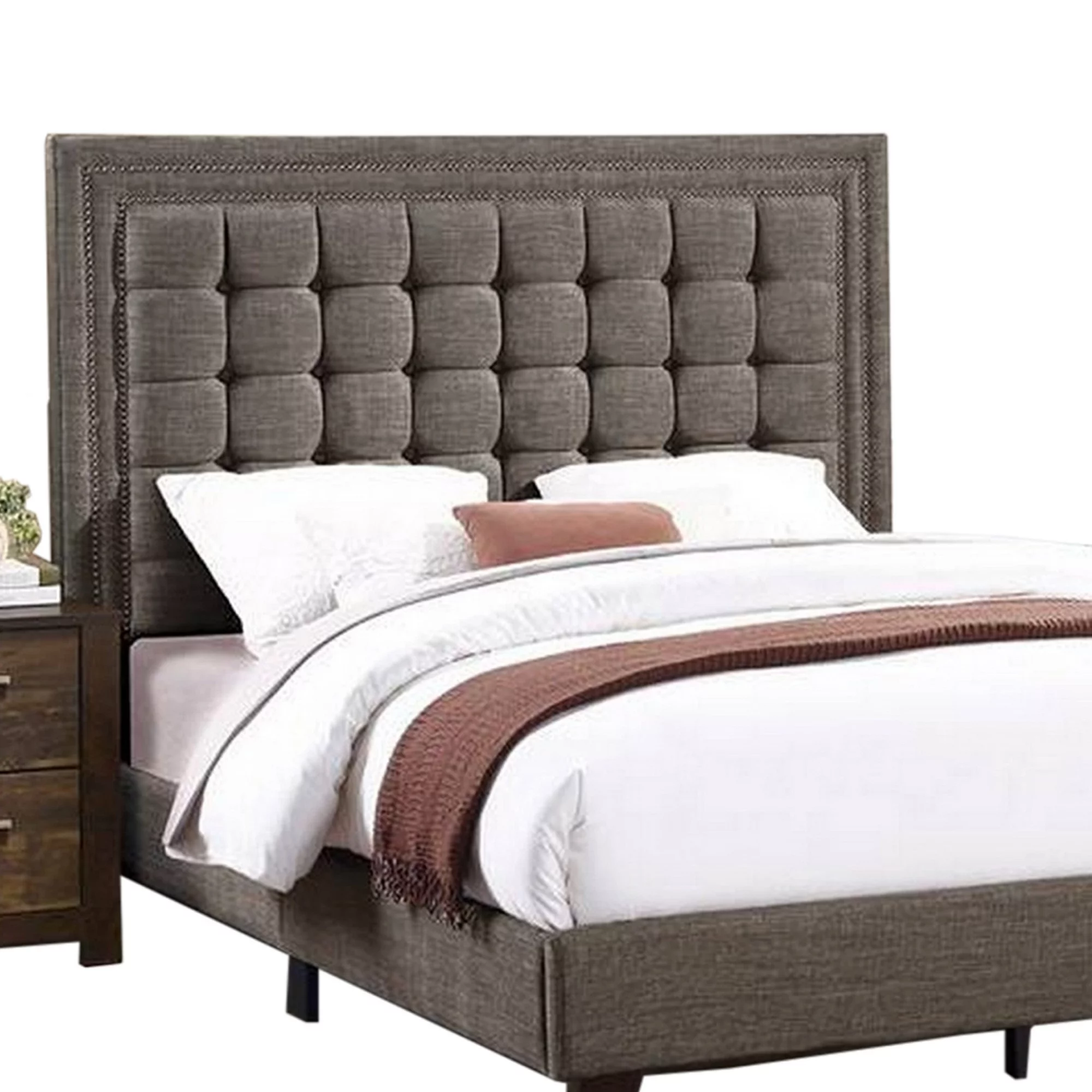 Benjara Tufted Soft Gray Upholstery Vaulted Headboard Oslo California King Size Bed, Gray Brown
