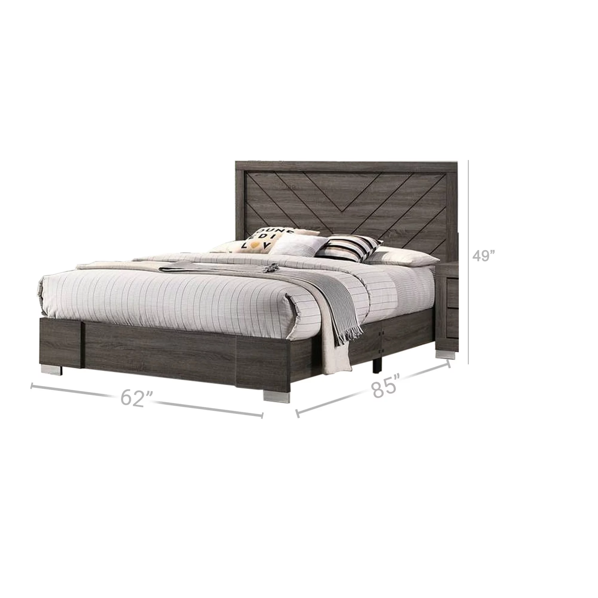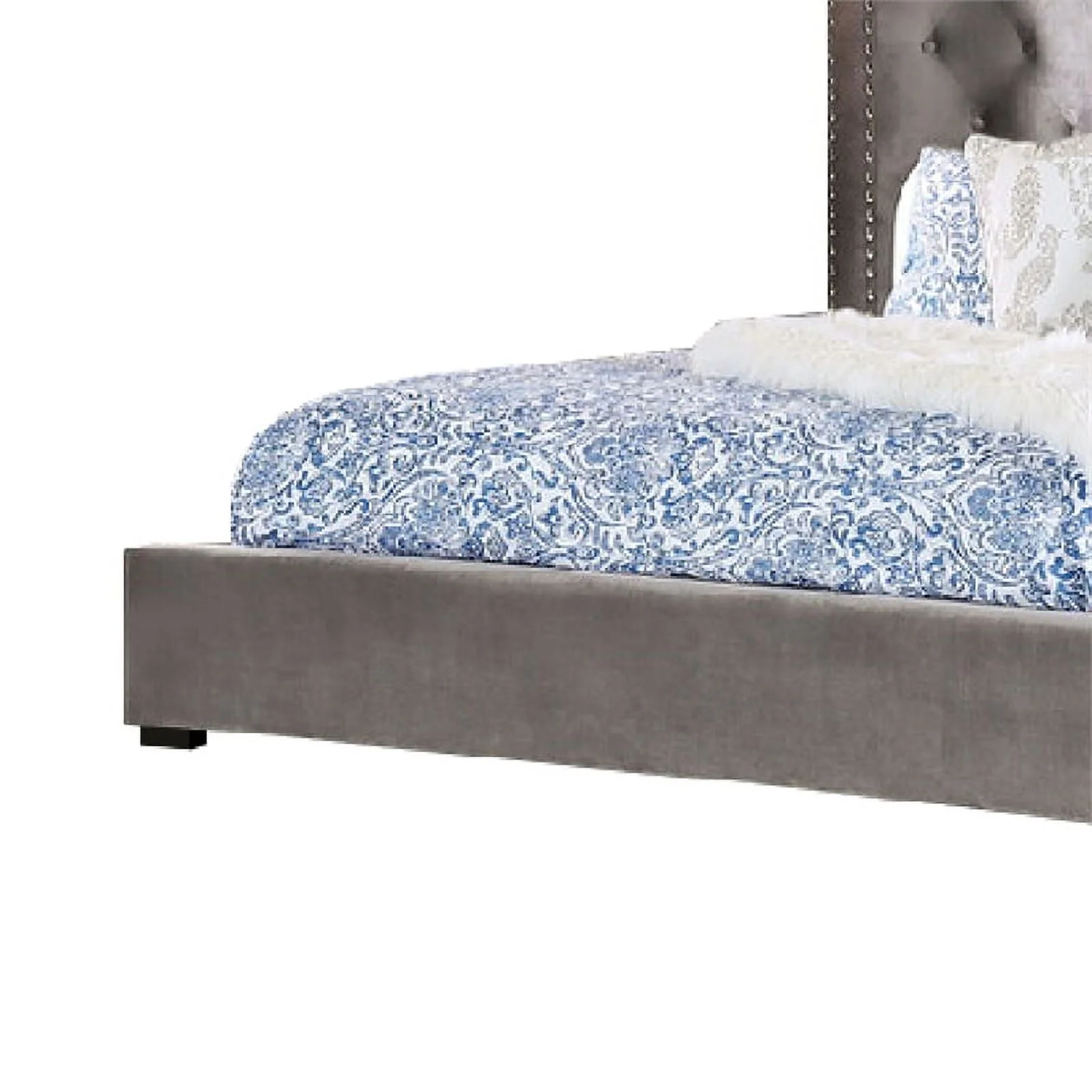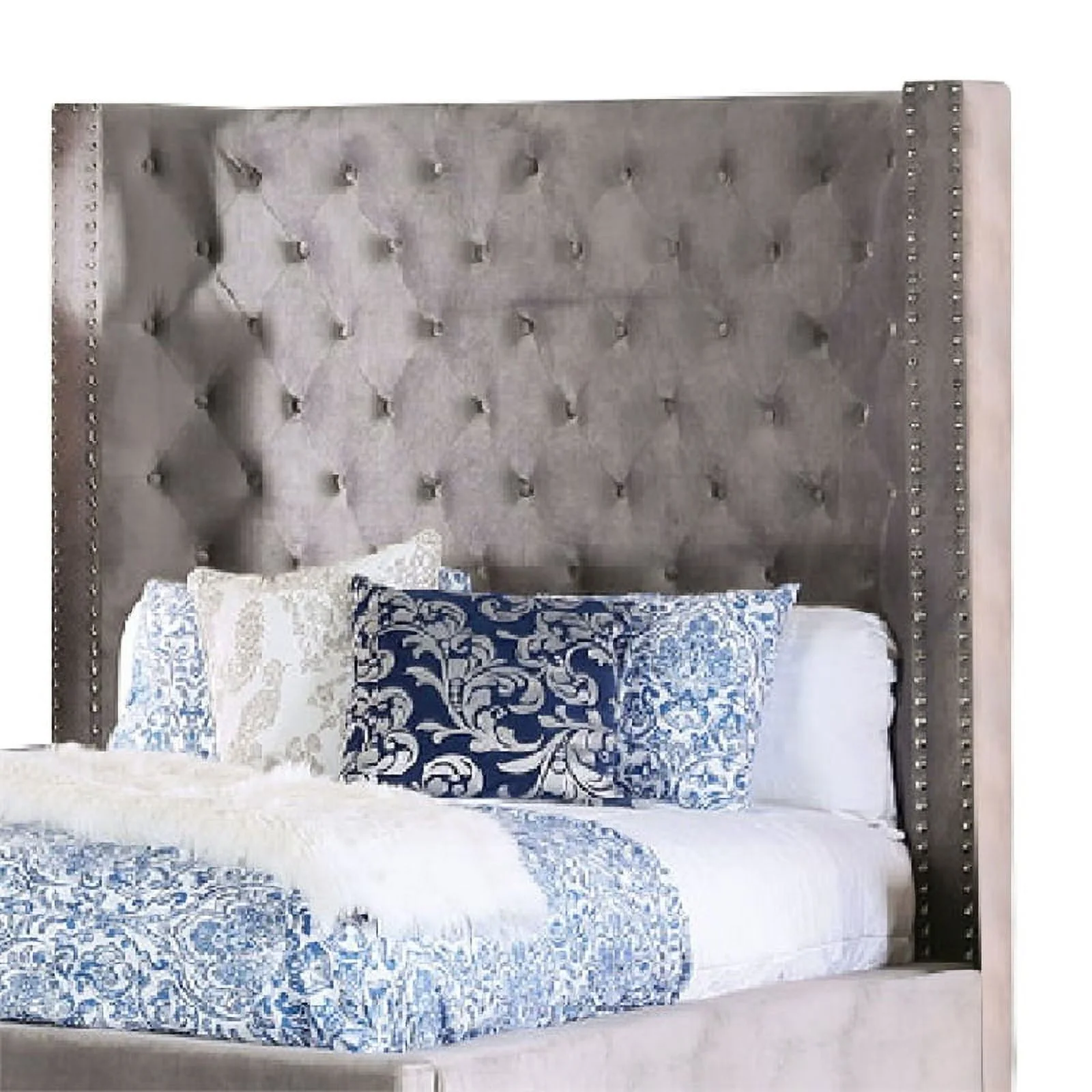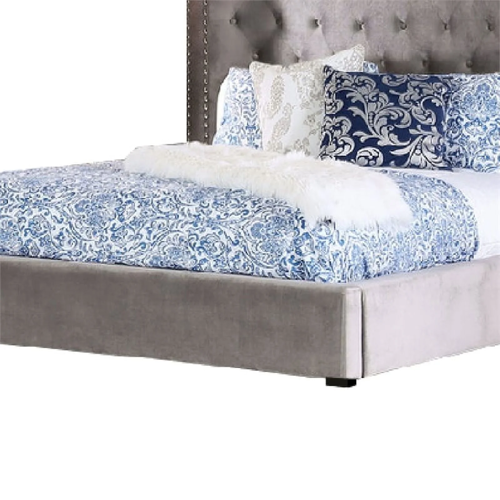Benjara Tufted Soft Gray Upholstery Vaulted Headboard Oslo California King Size Bed, Gray Brown