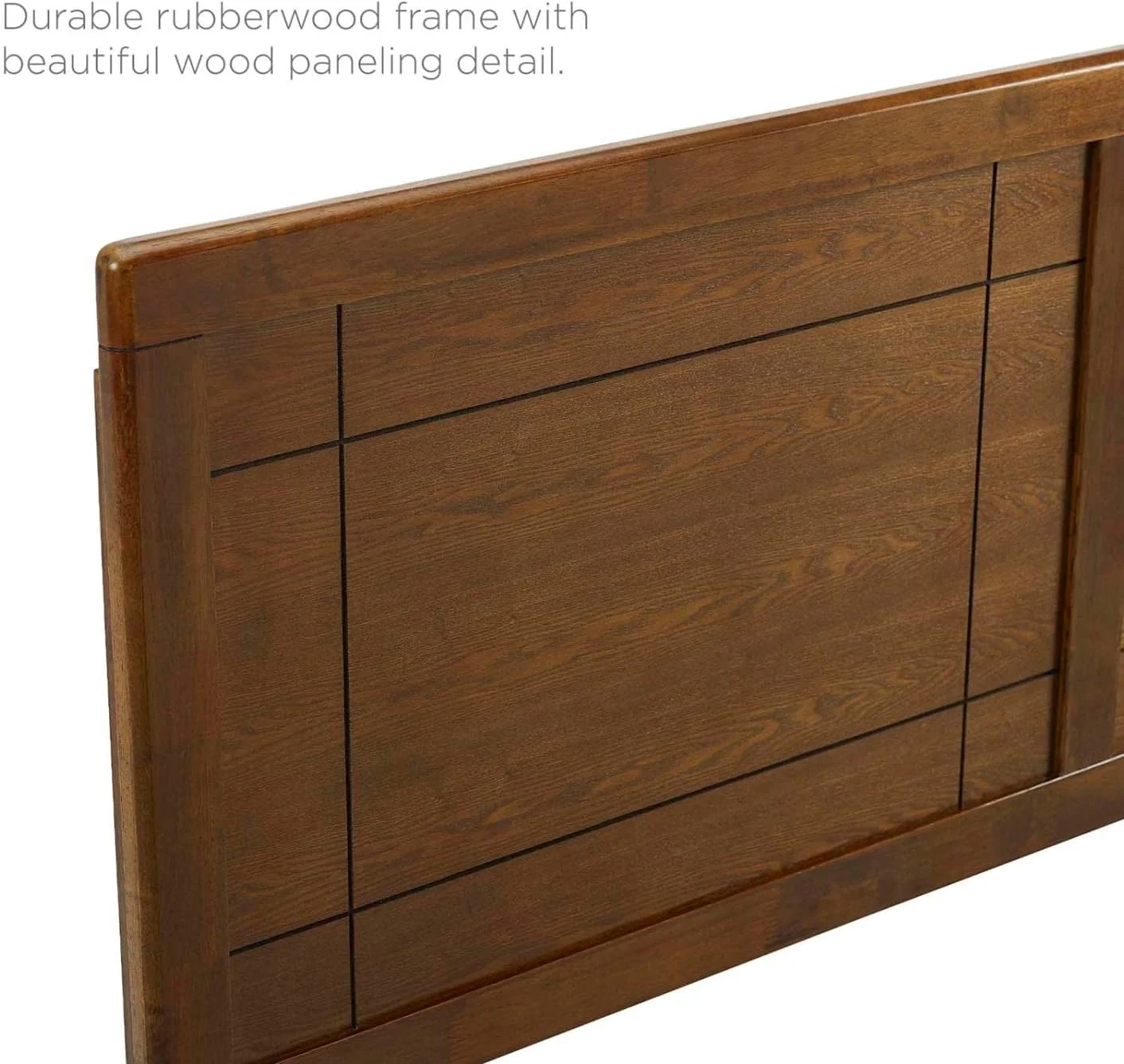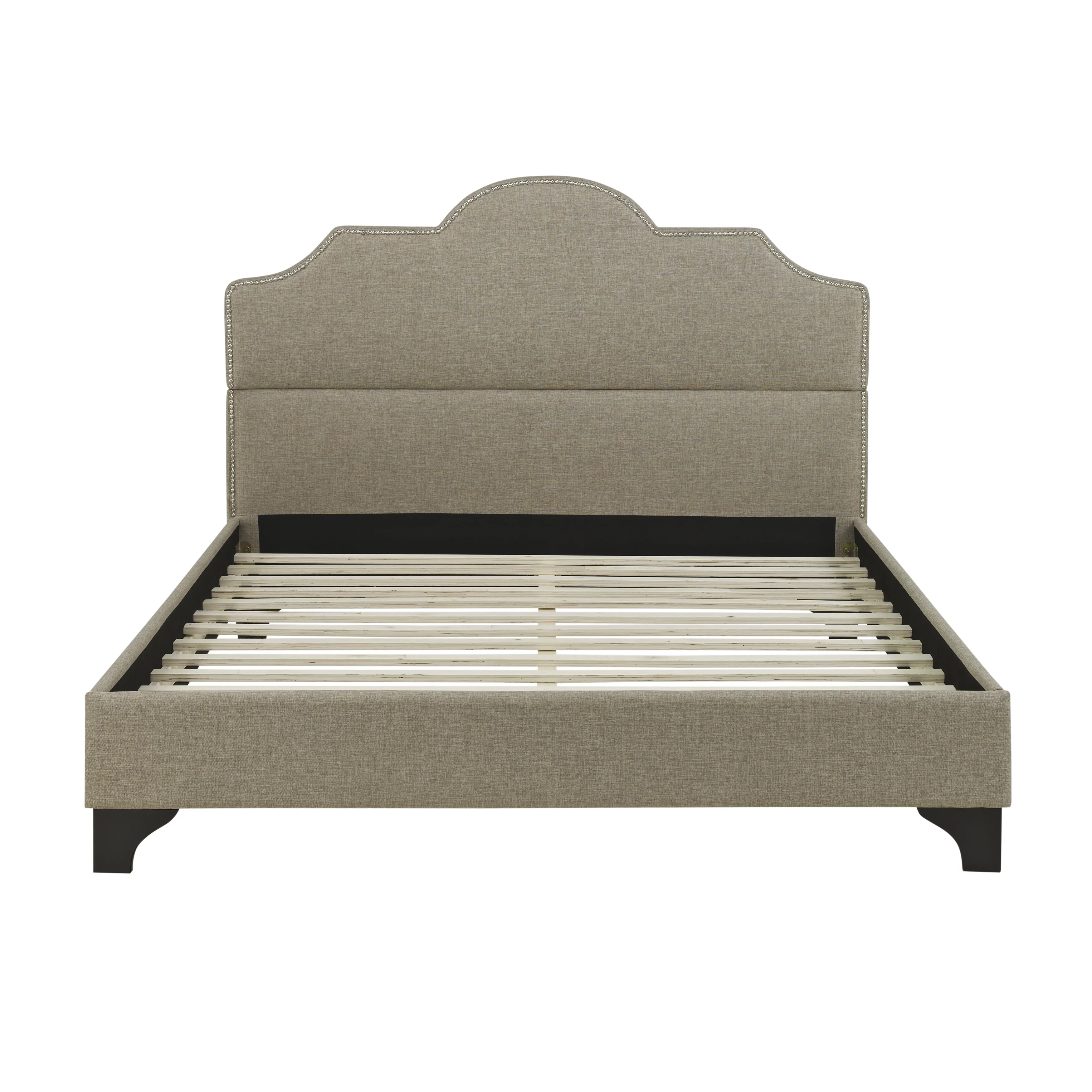 Lola Classic Queen Size Bed, Wood Grain, Strong Block Legs, Taupe Brown