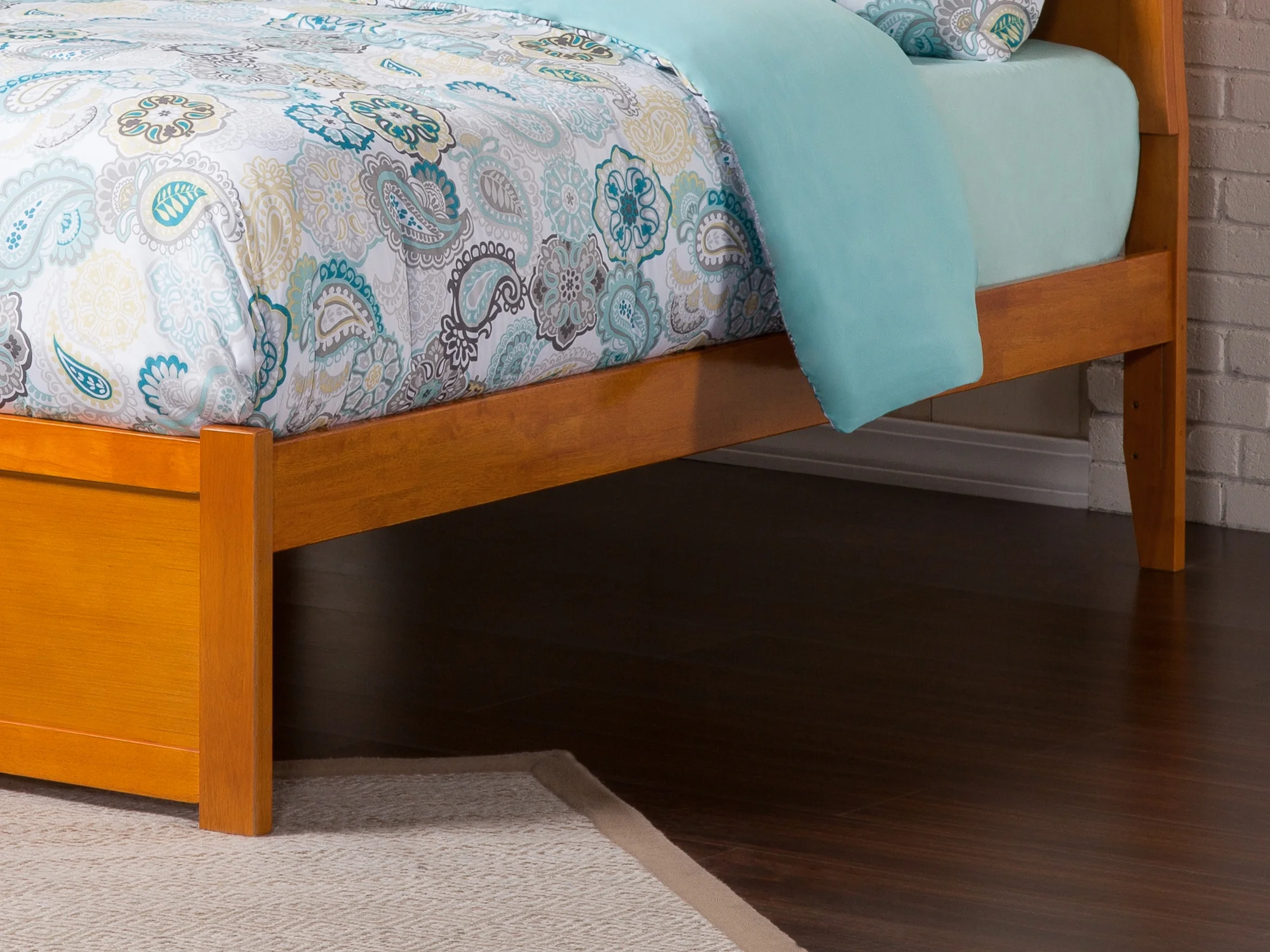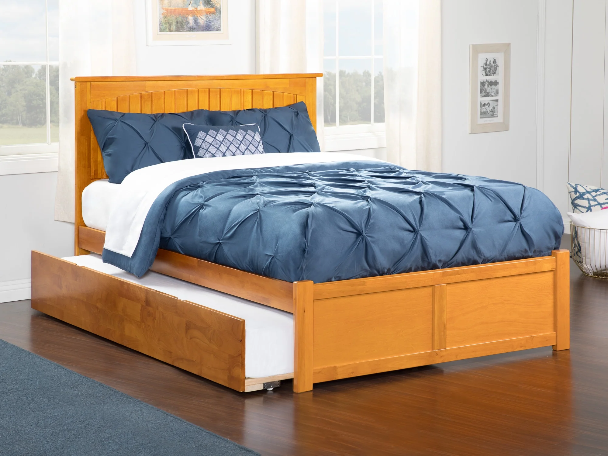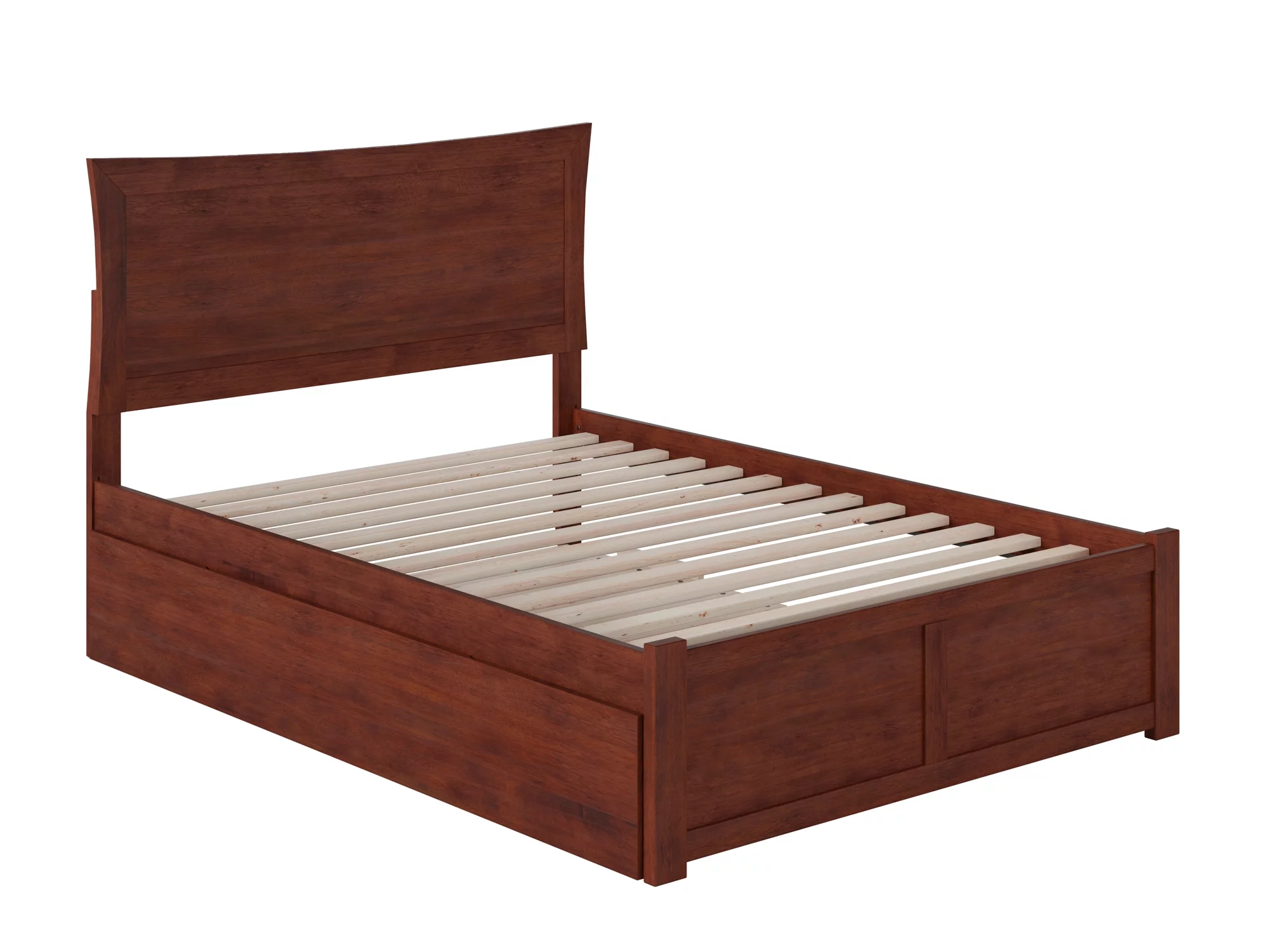 AFI Madison Full Wood Platform Bed with Matching Footboard & Full Trundle in Walnut