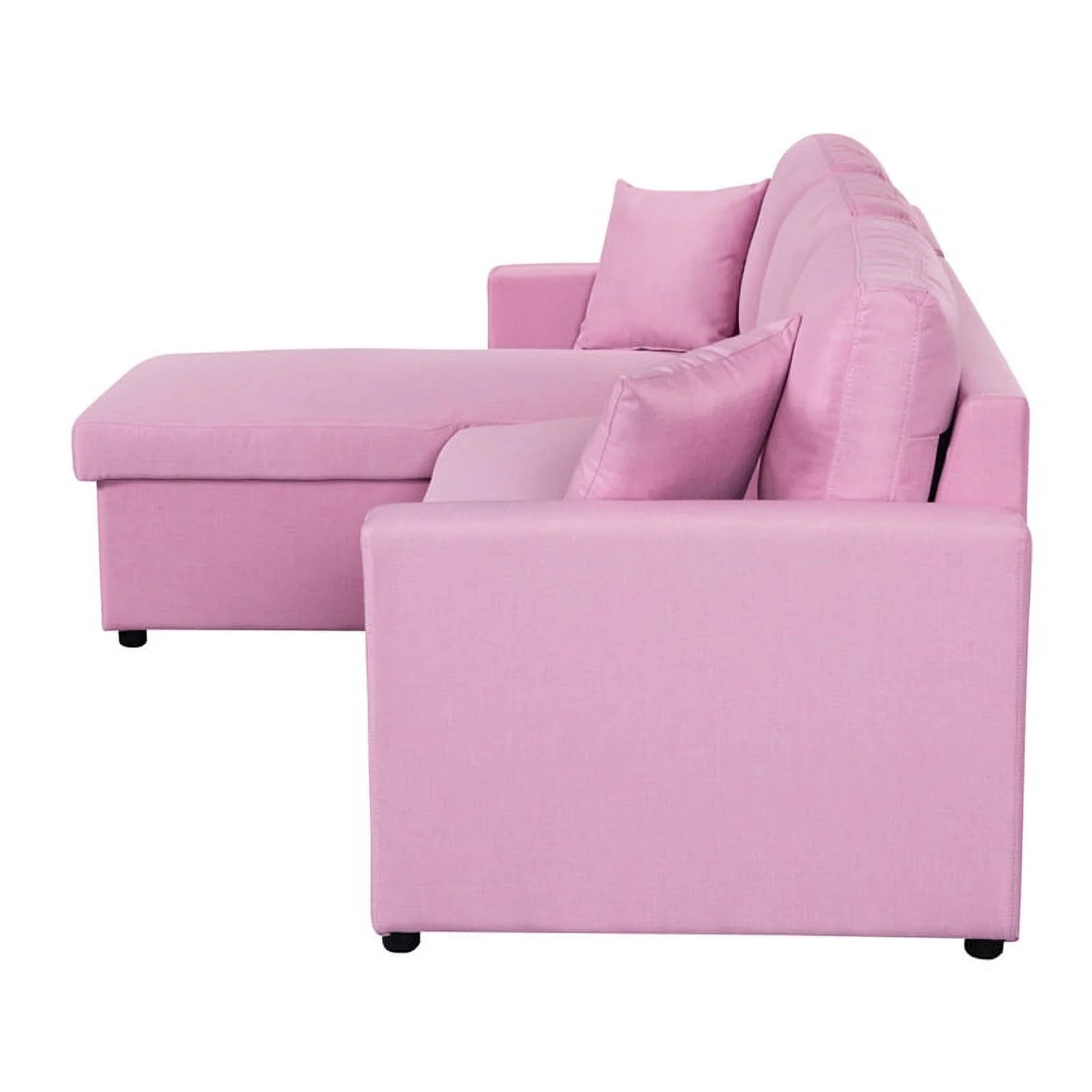 Pemberly Row Pink Fabric Reversible Sleeper Sectional Sofa w/ Storage Chaise