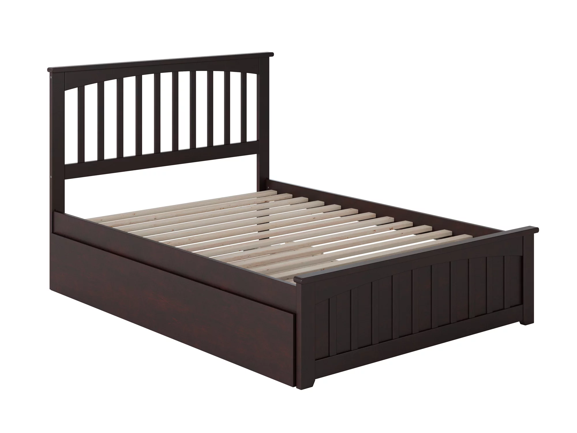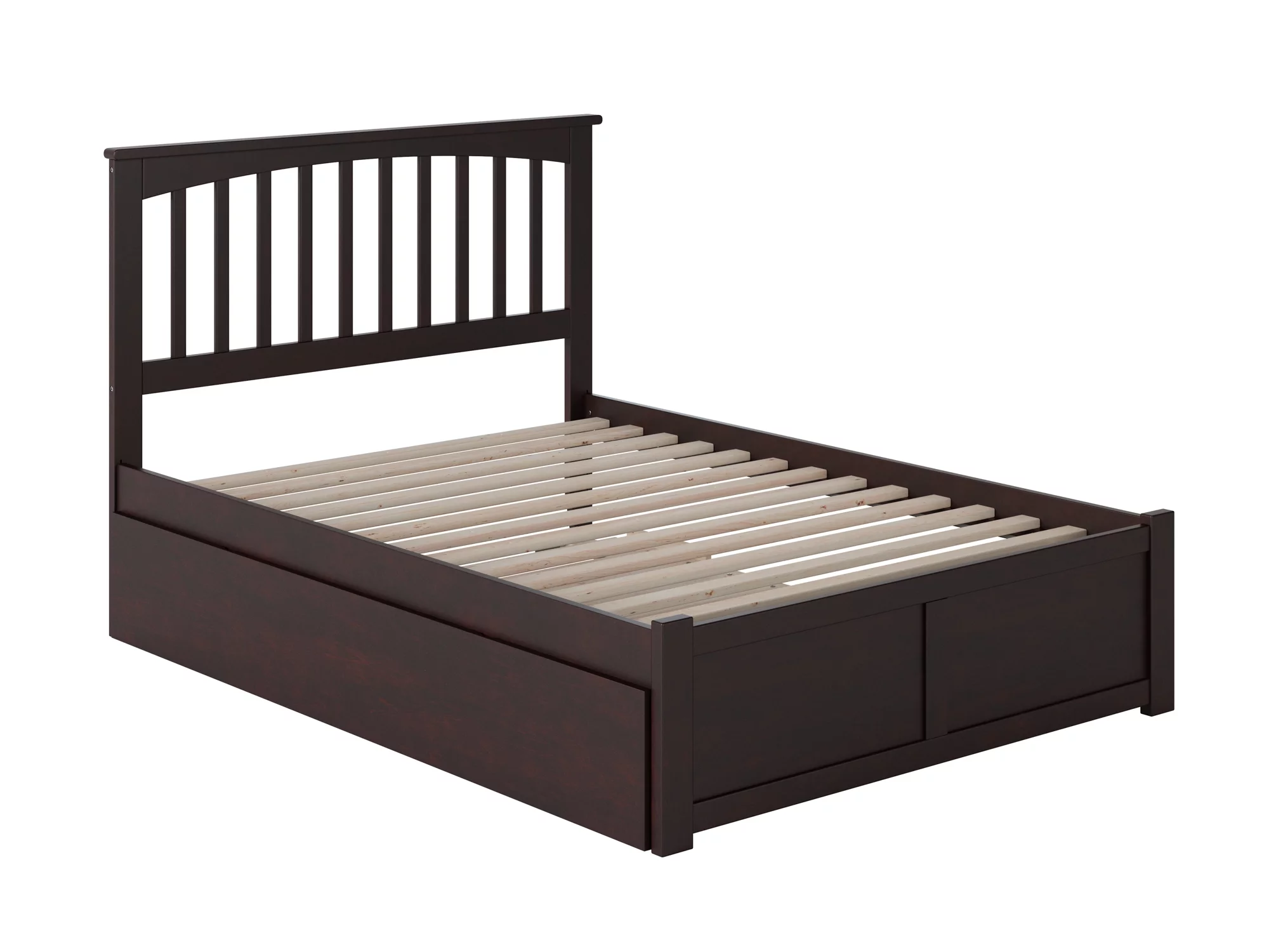 Mission Full Platform Bed with Flat Panel Foot Board and Full Size Urban Trundle Bed in Espresso