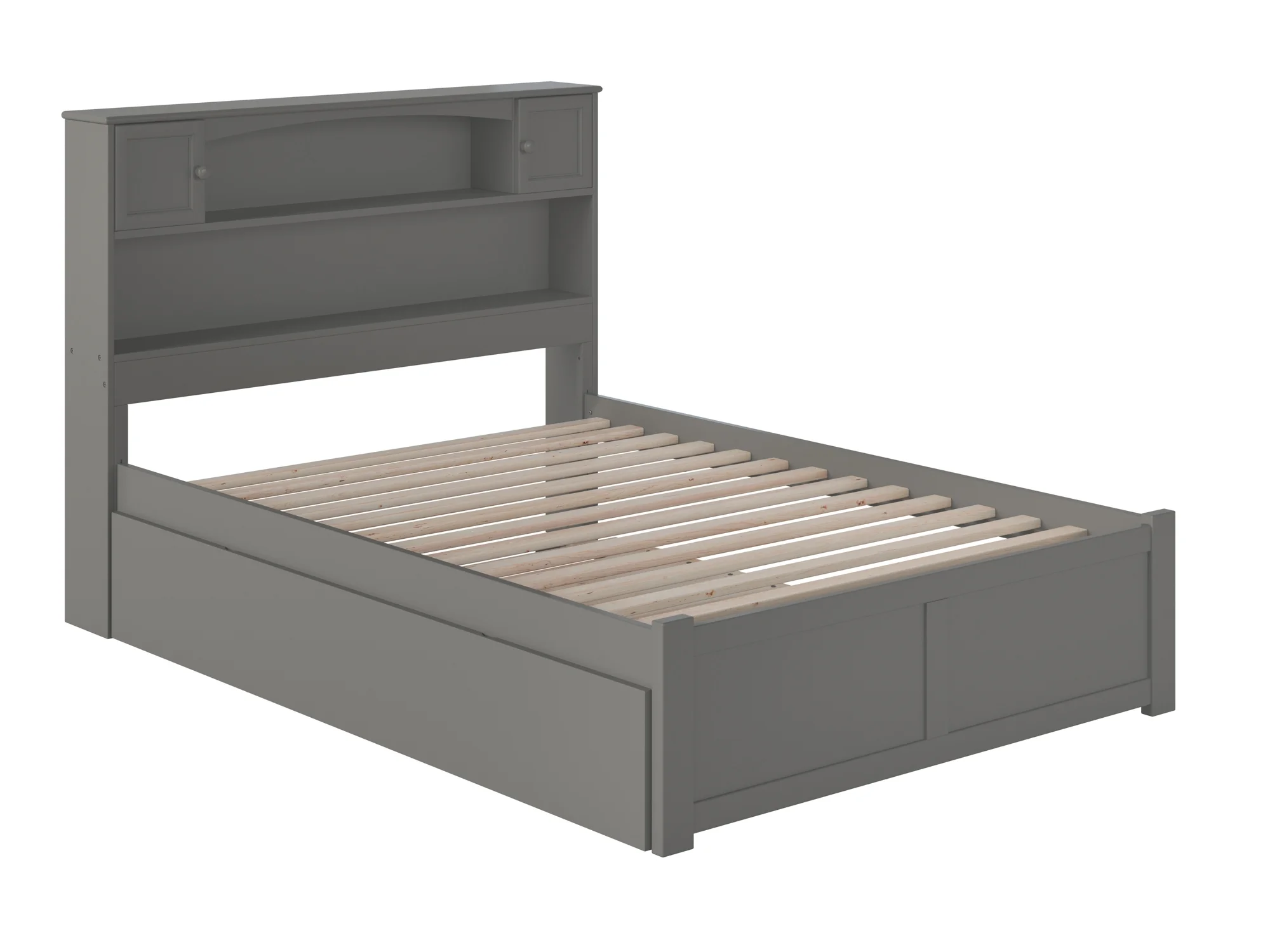 AFI Newport Full Solid Wood Platform Bed with Footboard & Full Trundle in Grey