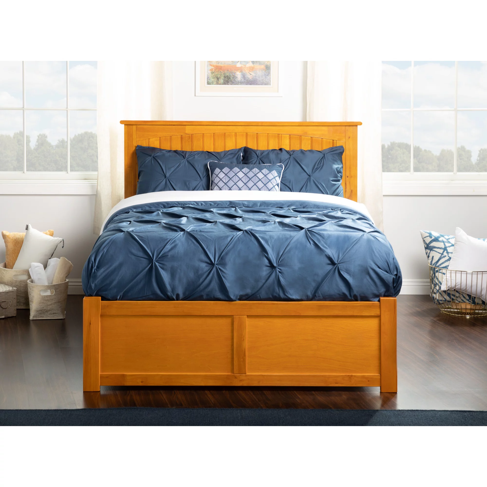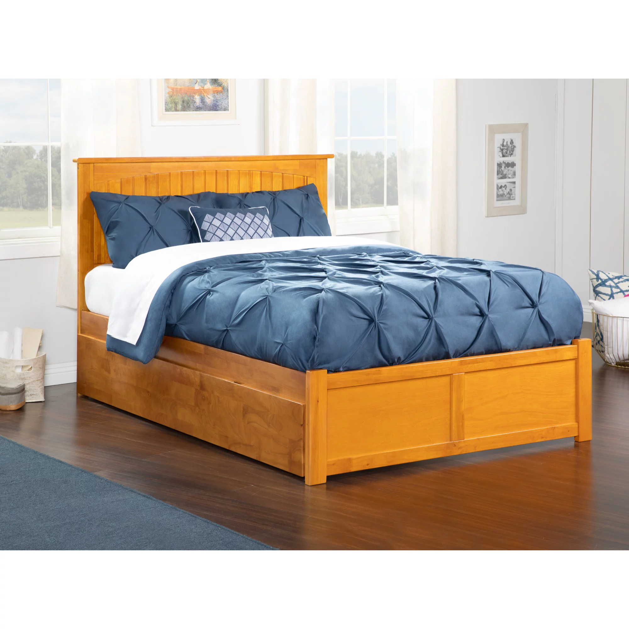 AFI Nantucket Full Size Platform Bed with Panel Footboard and Full Size Trundle in Caramel Latte