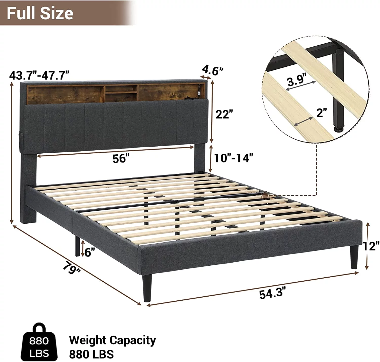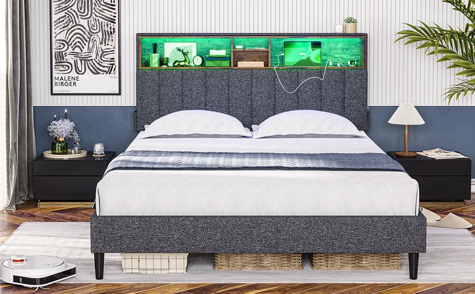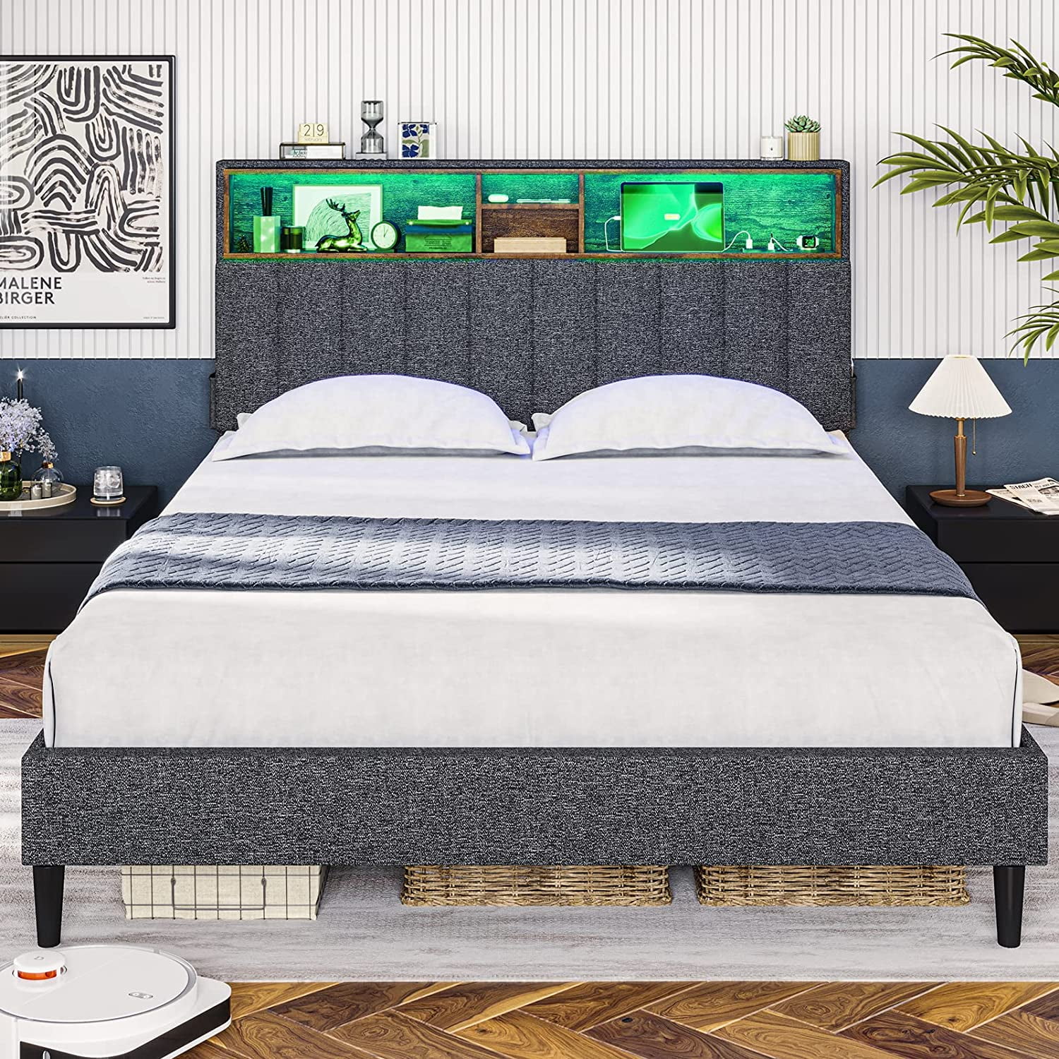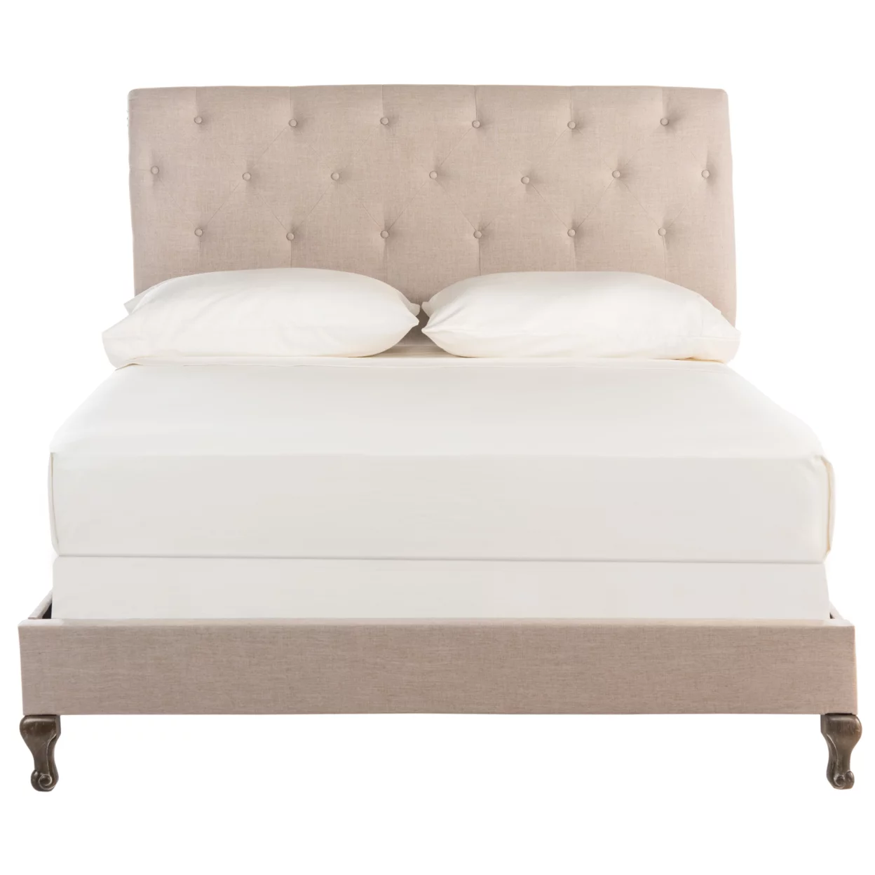 King size Upholstered Platform Bed Frame with Button Tufted Headboard in Taupe