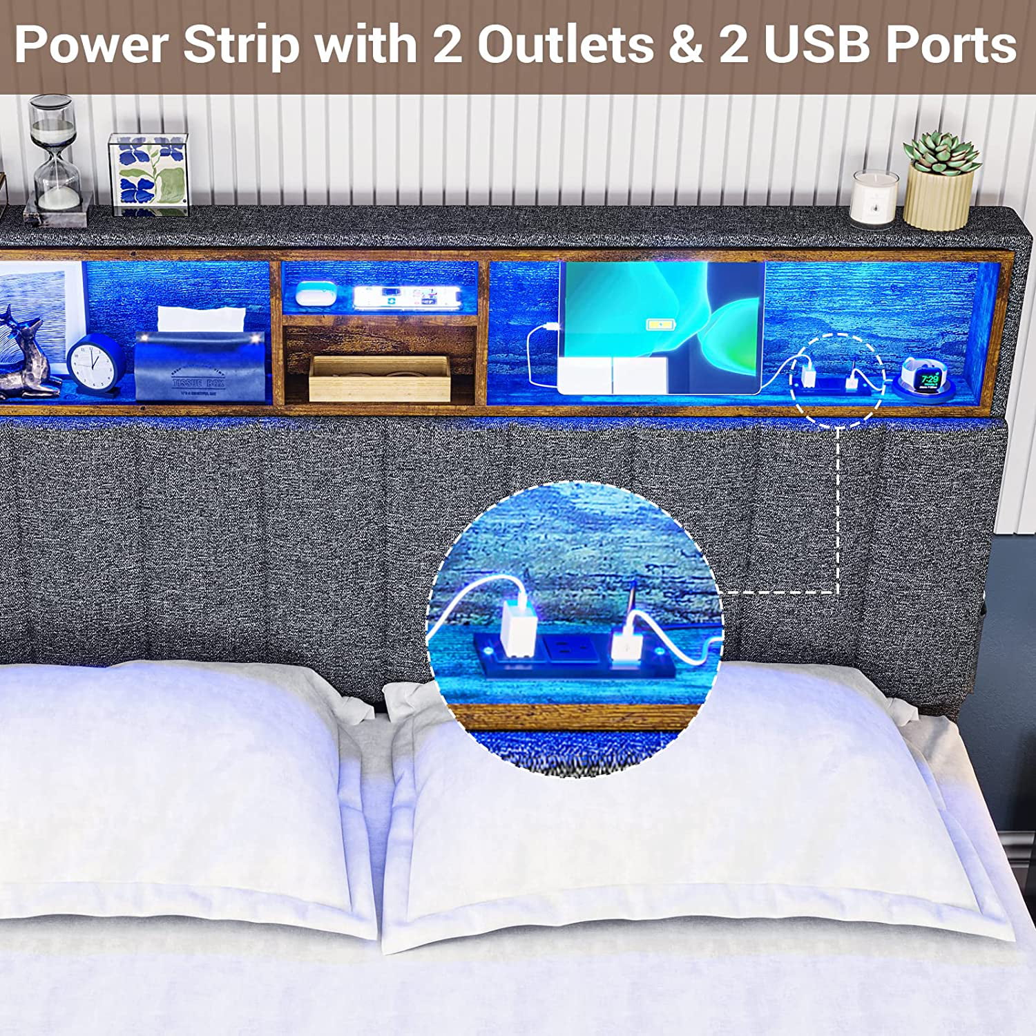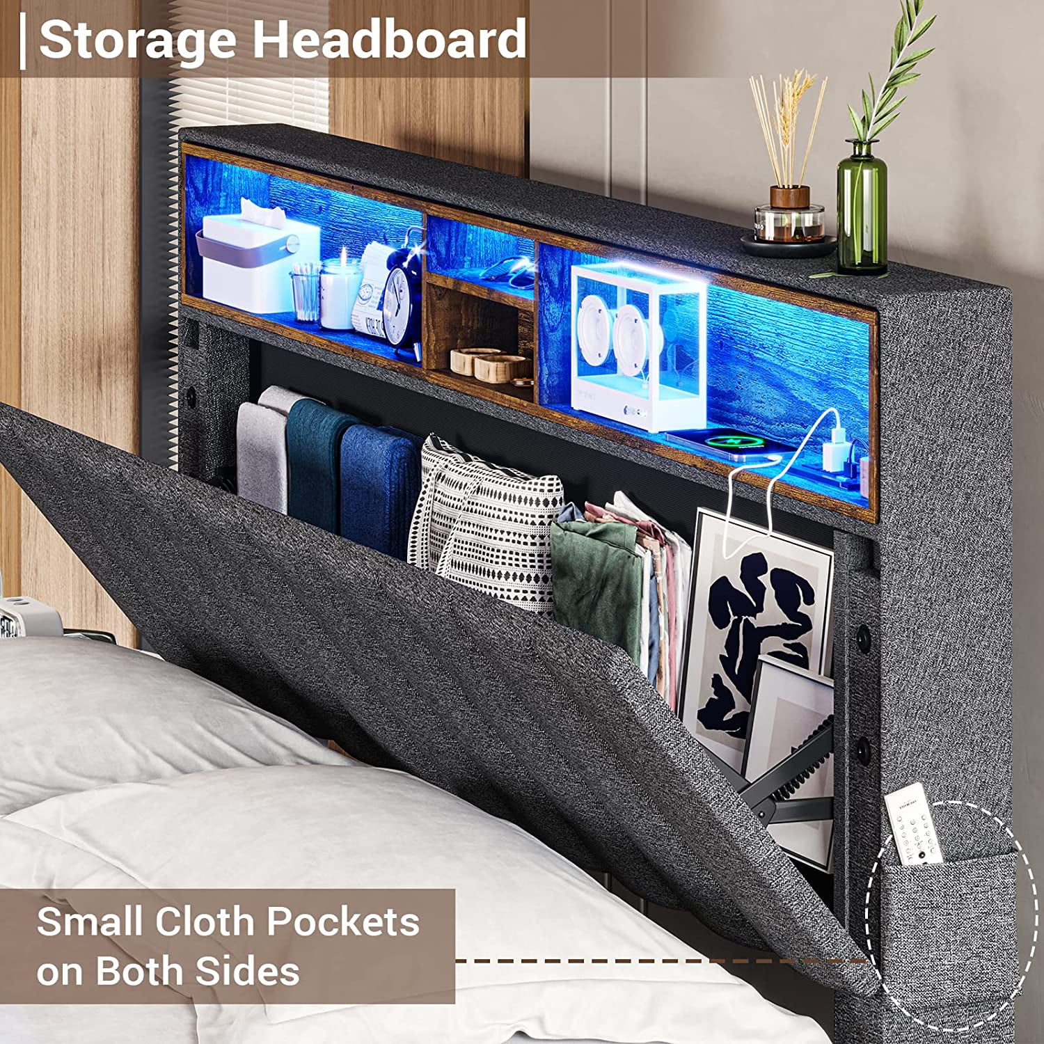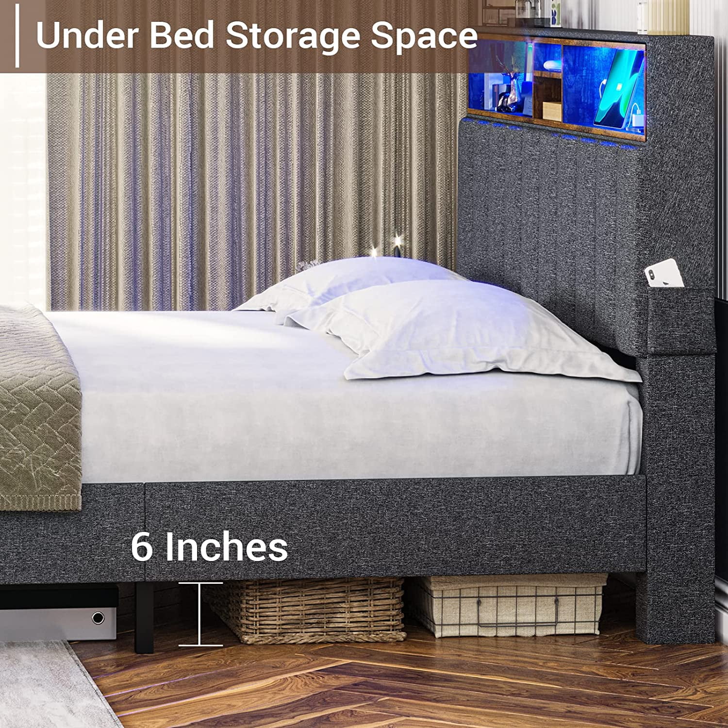 King size Upholstered Platform Bed Frame with Button Tufted Headboard in Taupe