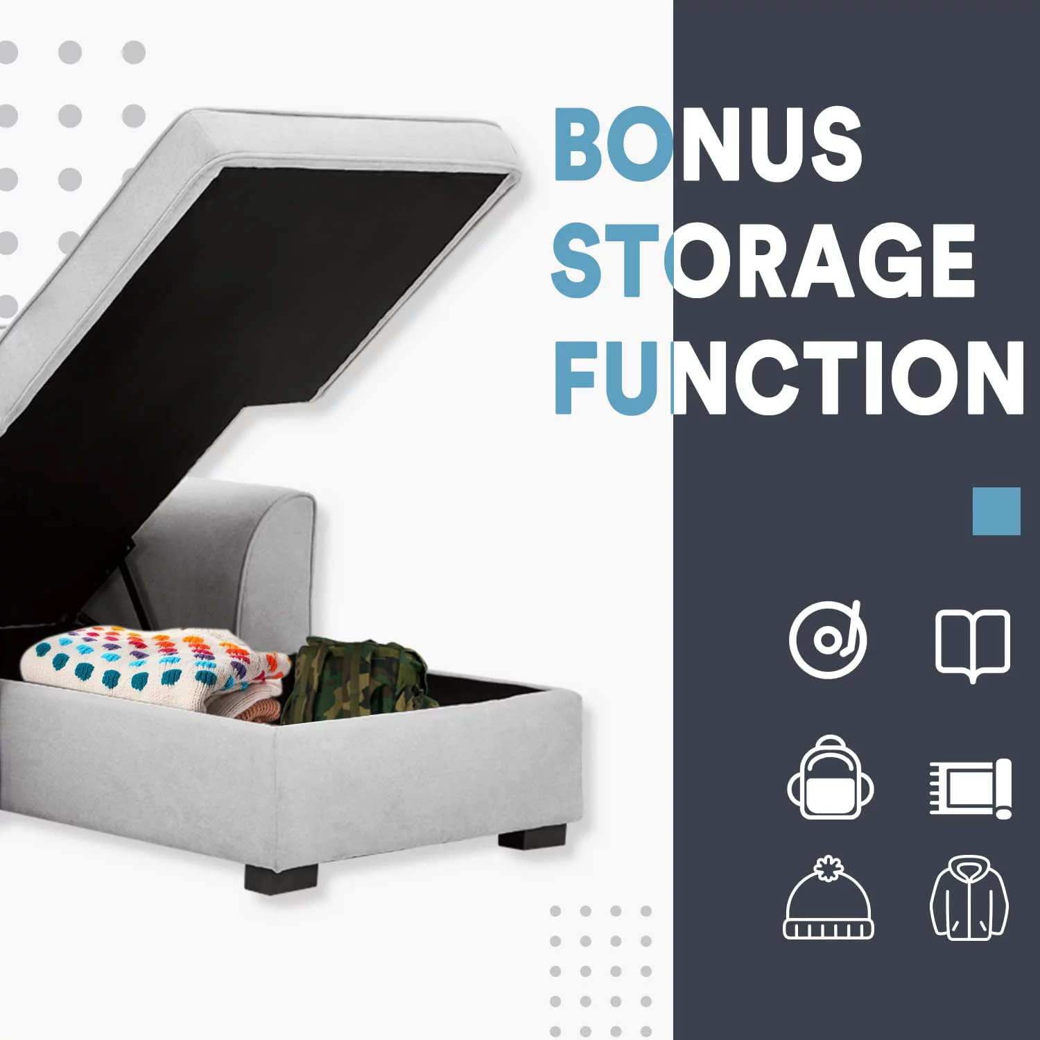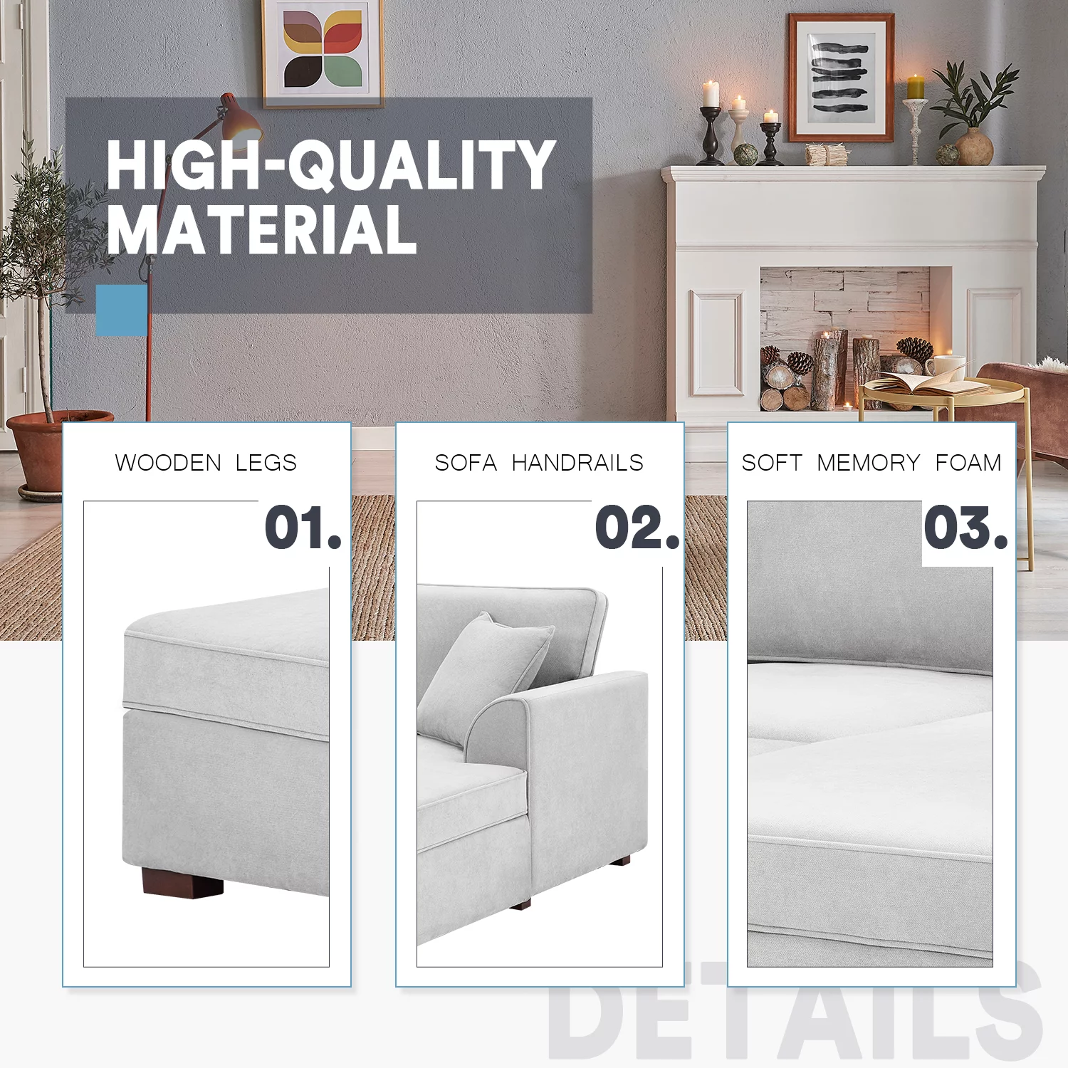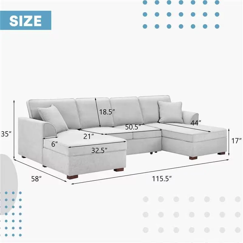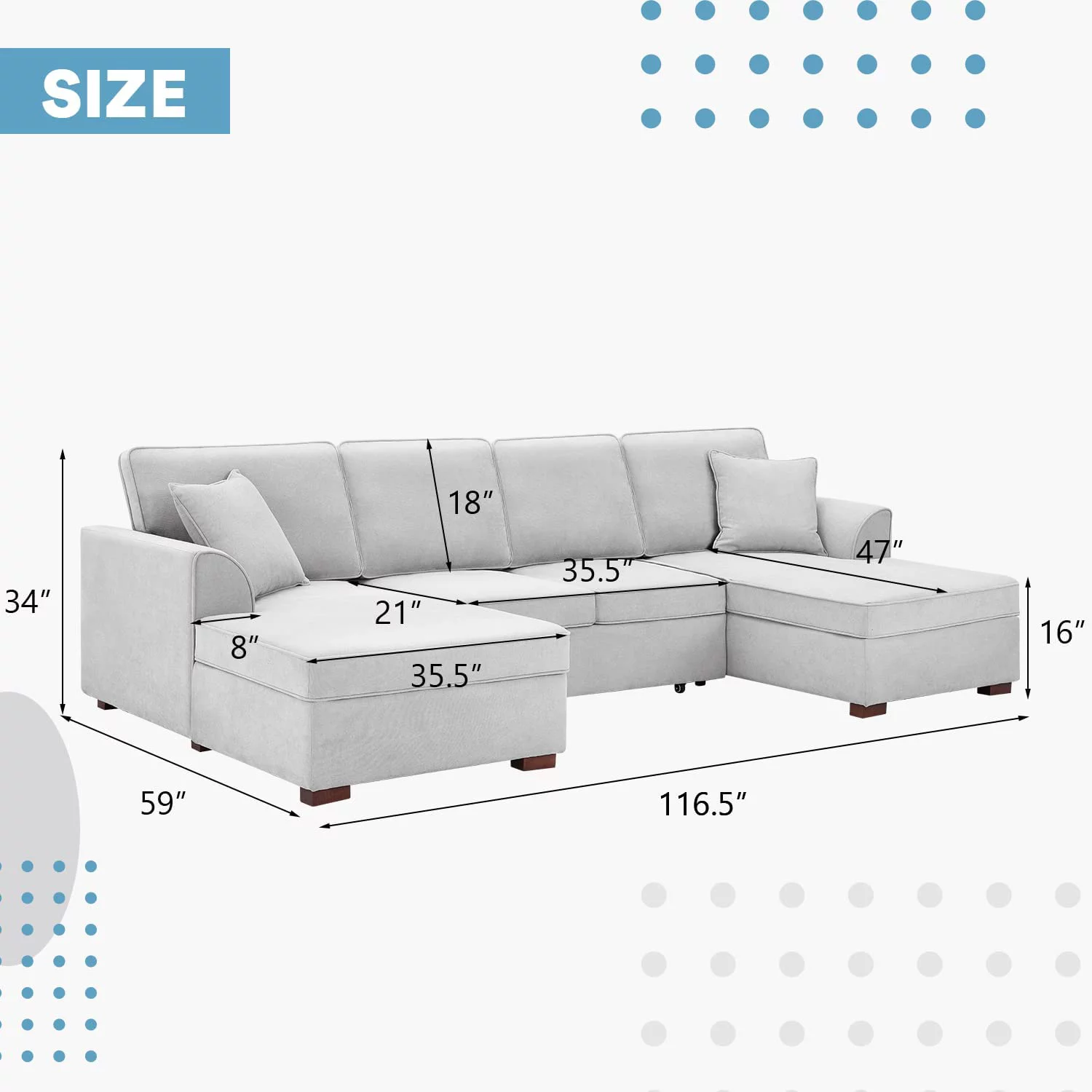 Hommow U-Shaped Sectional Sofa with Pull-Out Bed, Upholstered Modular Couch with Storage, Gray