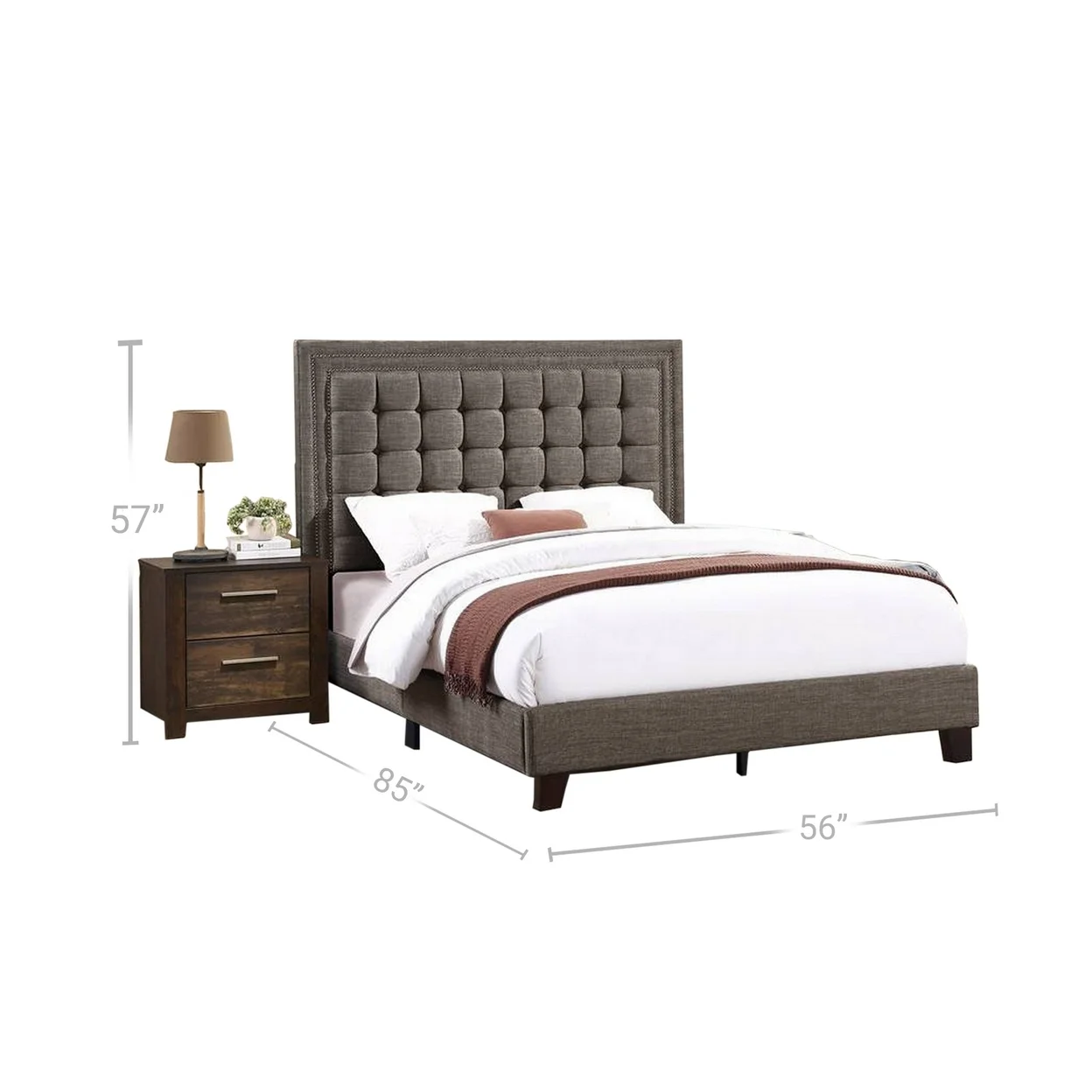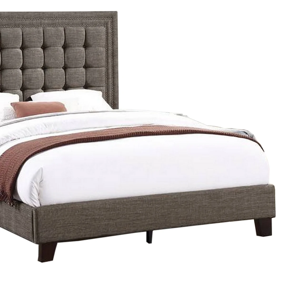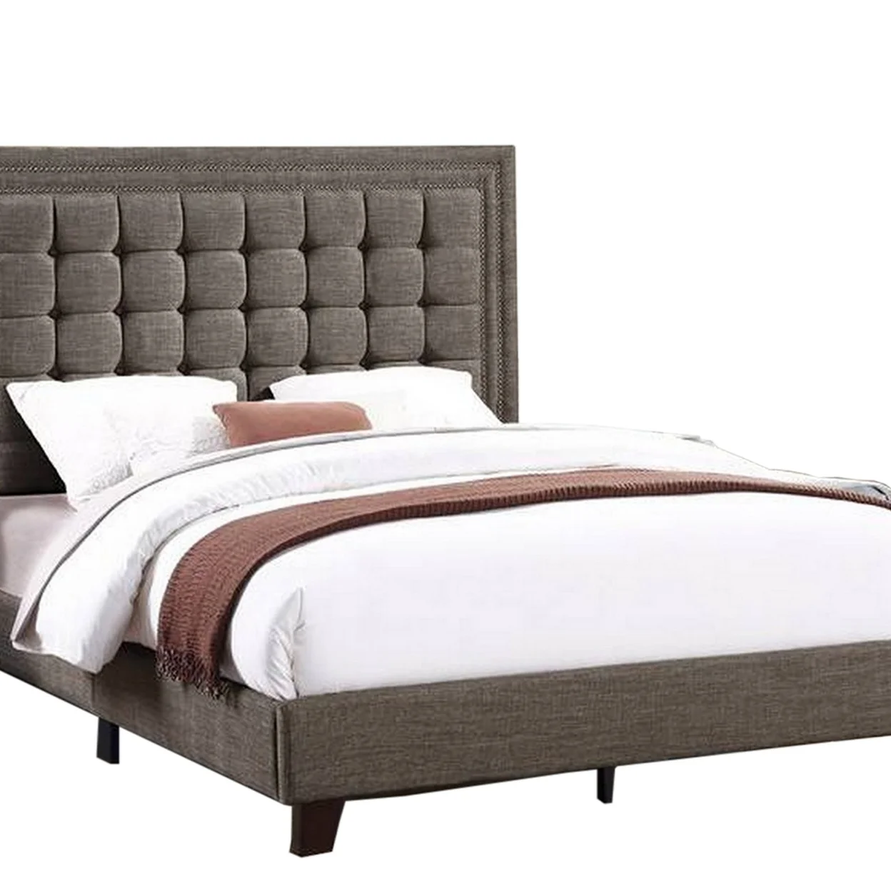 Zofi Modern Full Size Bed Deep Square Tufted Upholstery Taupe Polyester- Saltoro Sherpi