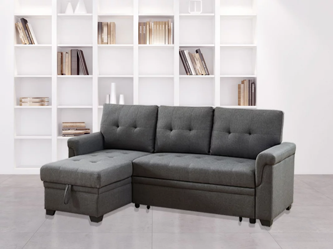 Lilola Home Destiny Dark Gray Linen Reversible Sleeper Sectional Sofa with Storage Chaise