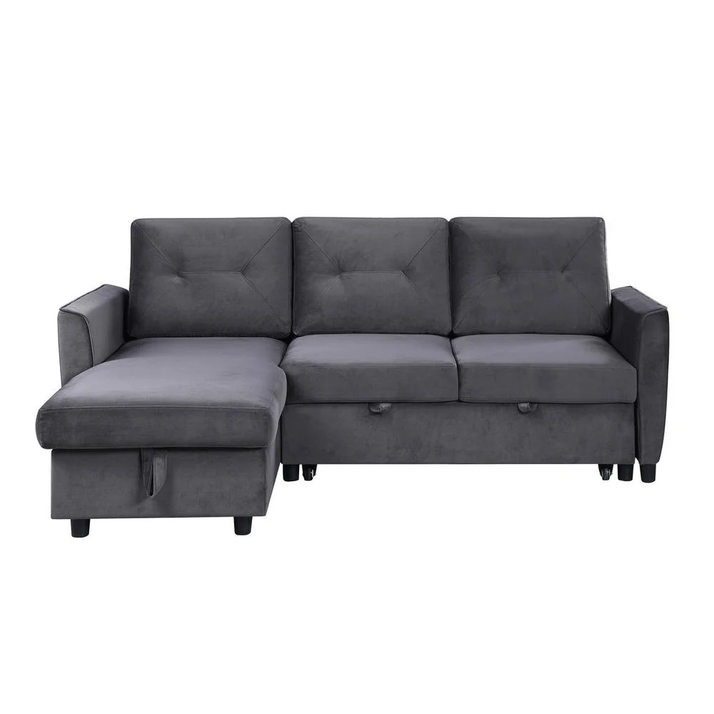 Hudson Dark Gray Velvet Reversible Sleeper Sectional Sofa with Storage Chaise