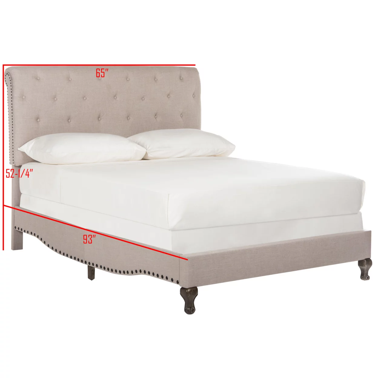 SAFAVIEH Hathaway Modern Tufted Bed Frame with Nail Heads, Twin Taupe