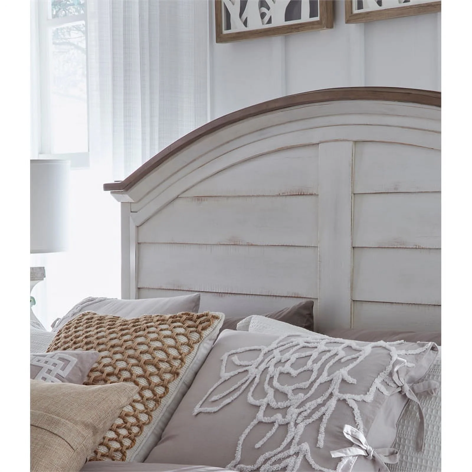 American Woodcrafters Stonebrook Antiqued White Wood King Panel Headboard