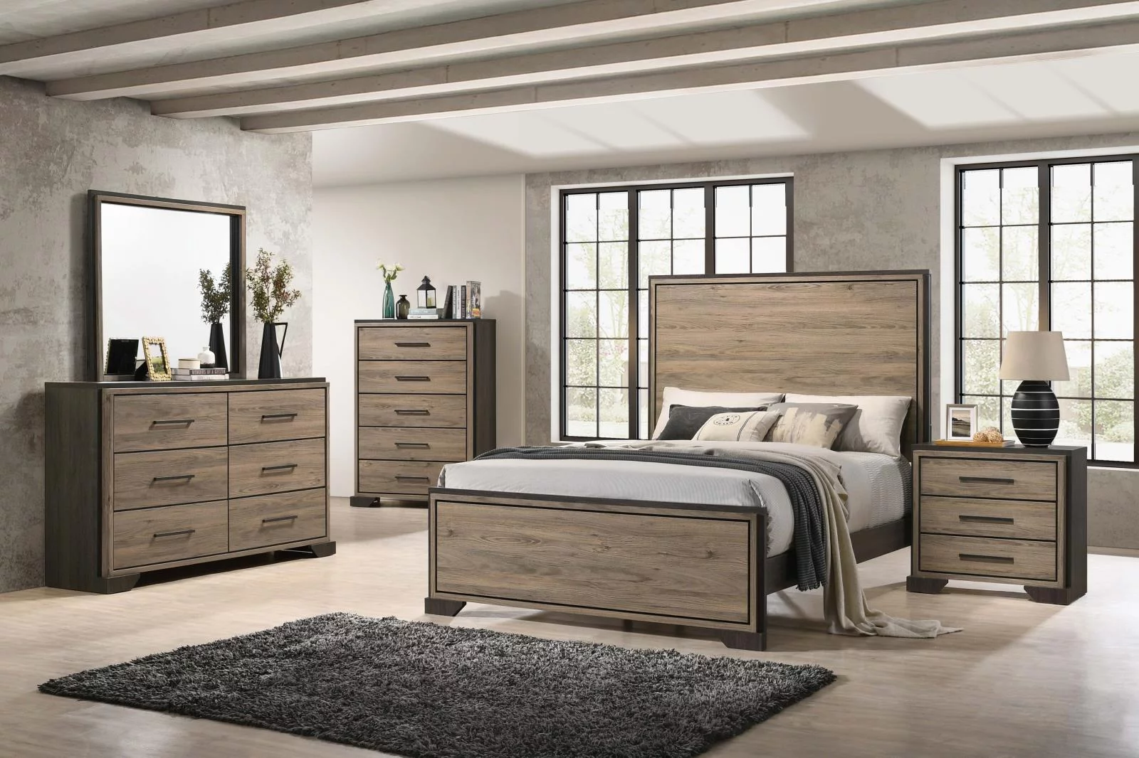Acme Furniture Chelmsford Beige Fabric and Antique Taupe Panel Bed
