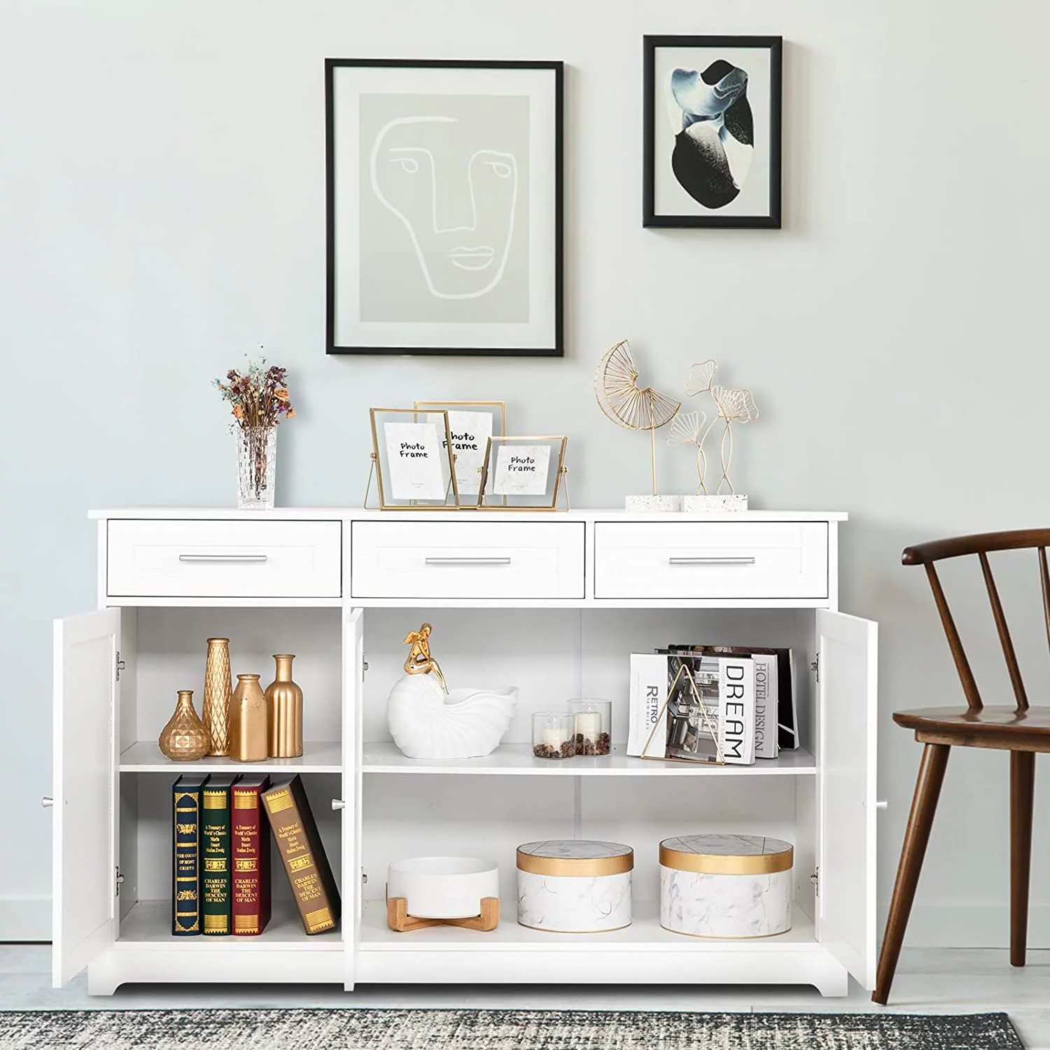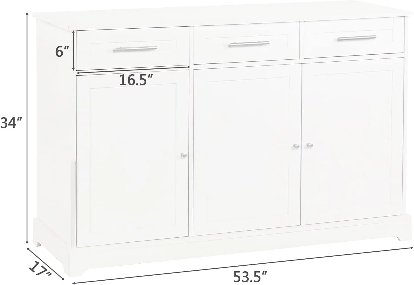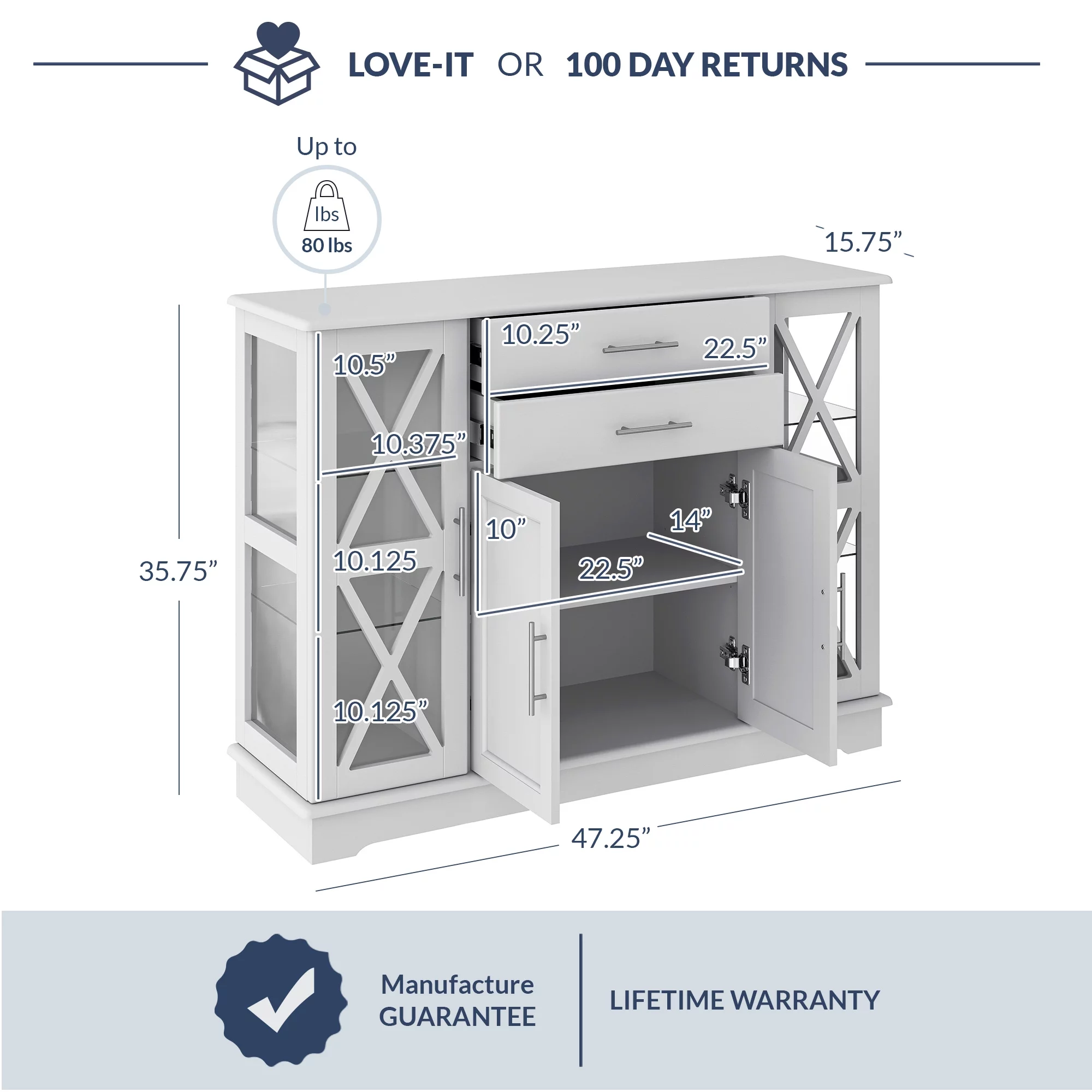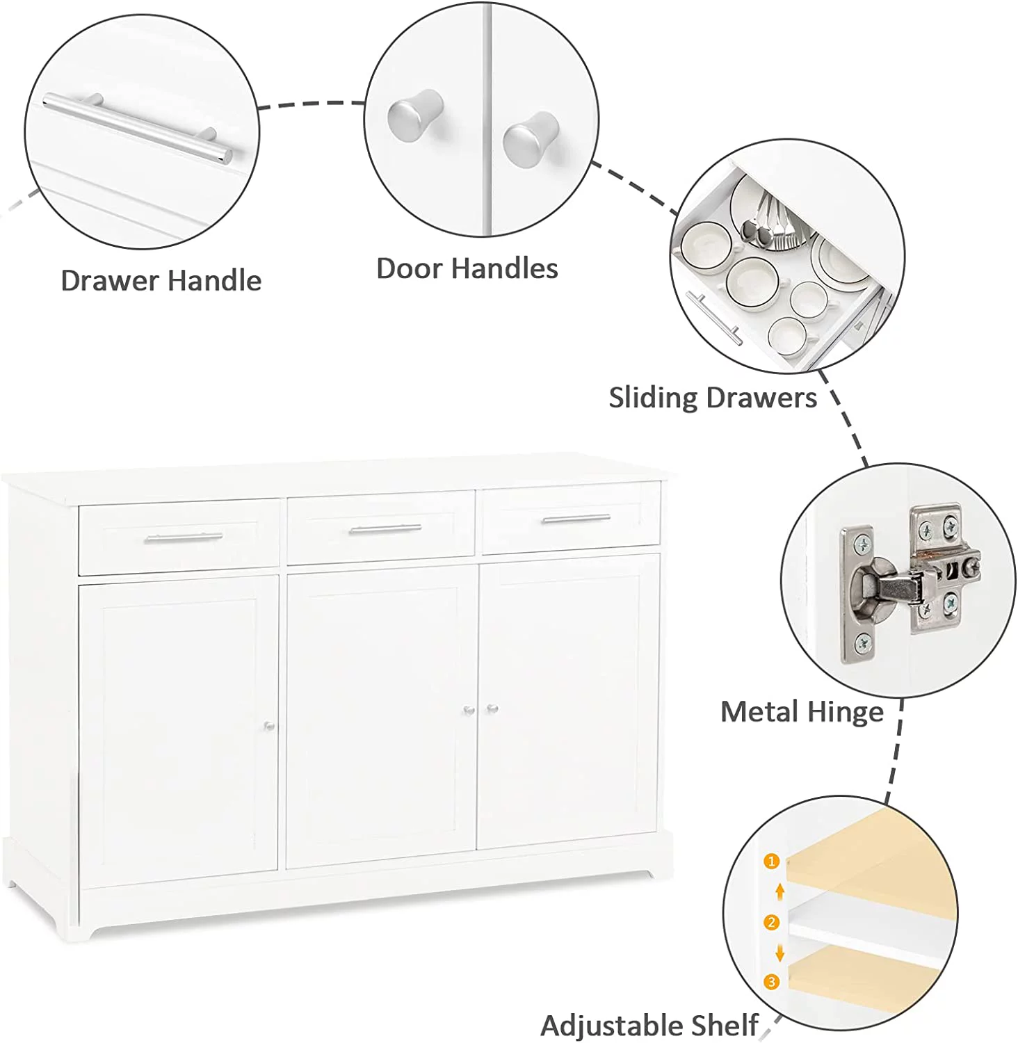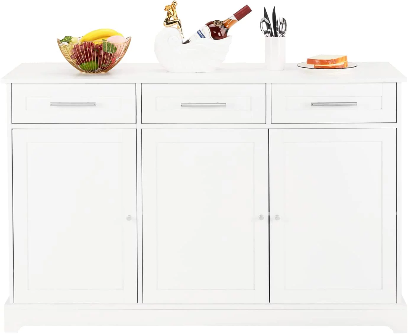 BELLEZE Ryland 47" Wood Storage Sideboard Buffet Cabinet Console Table, White