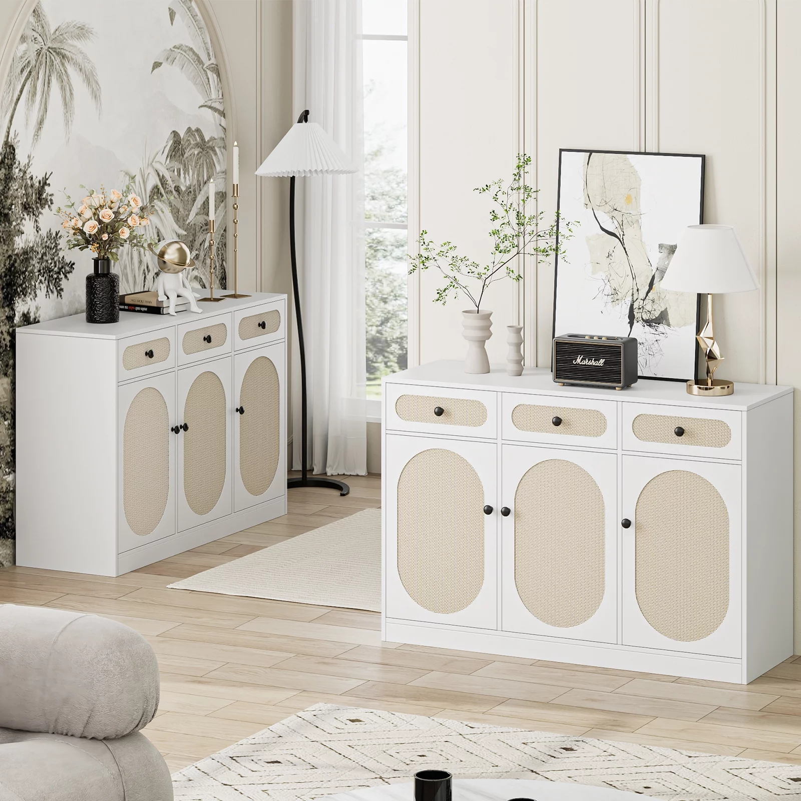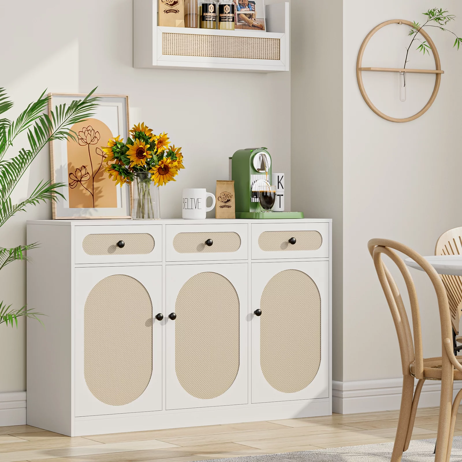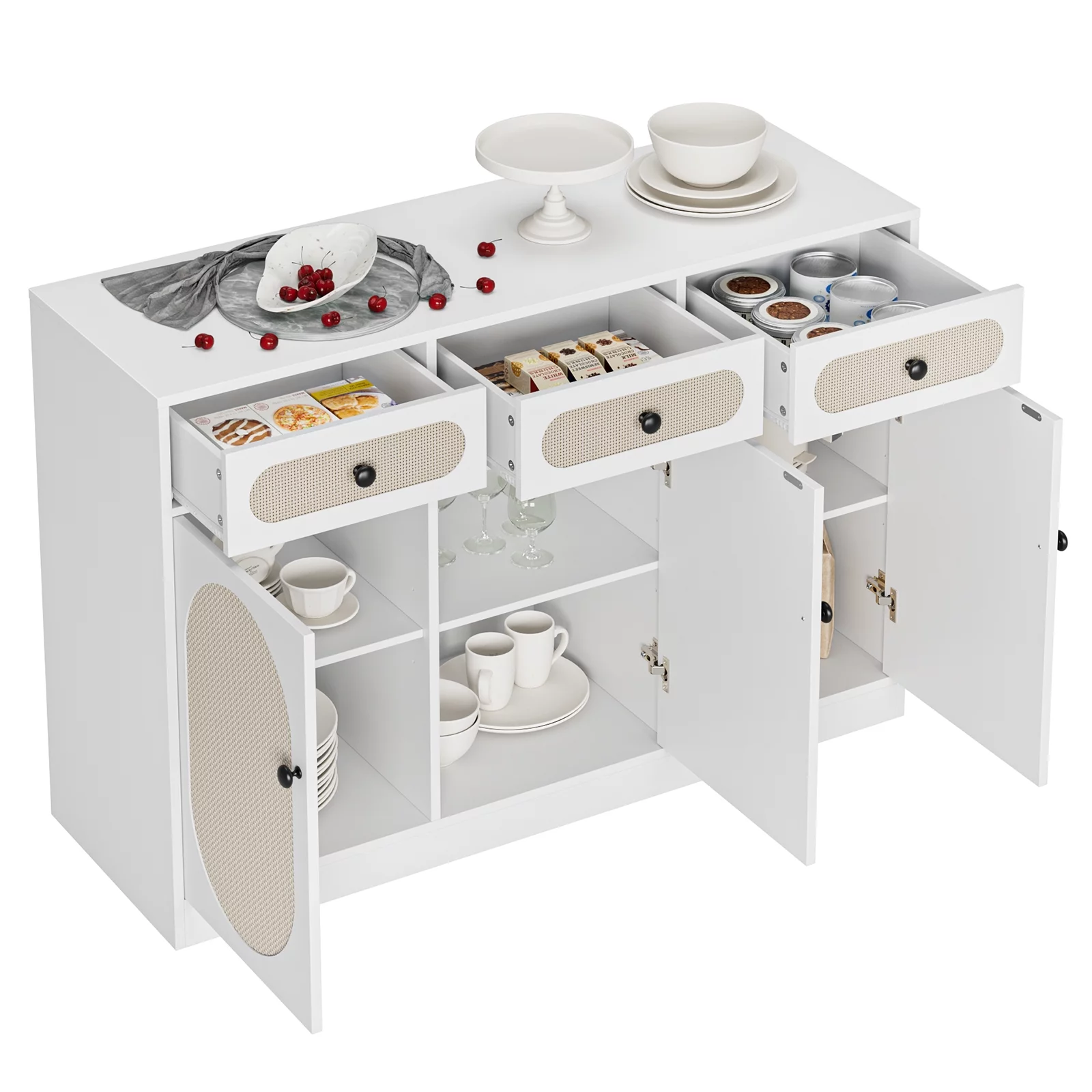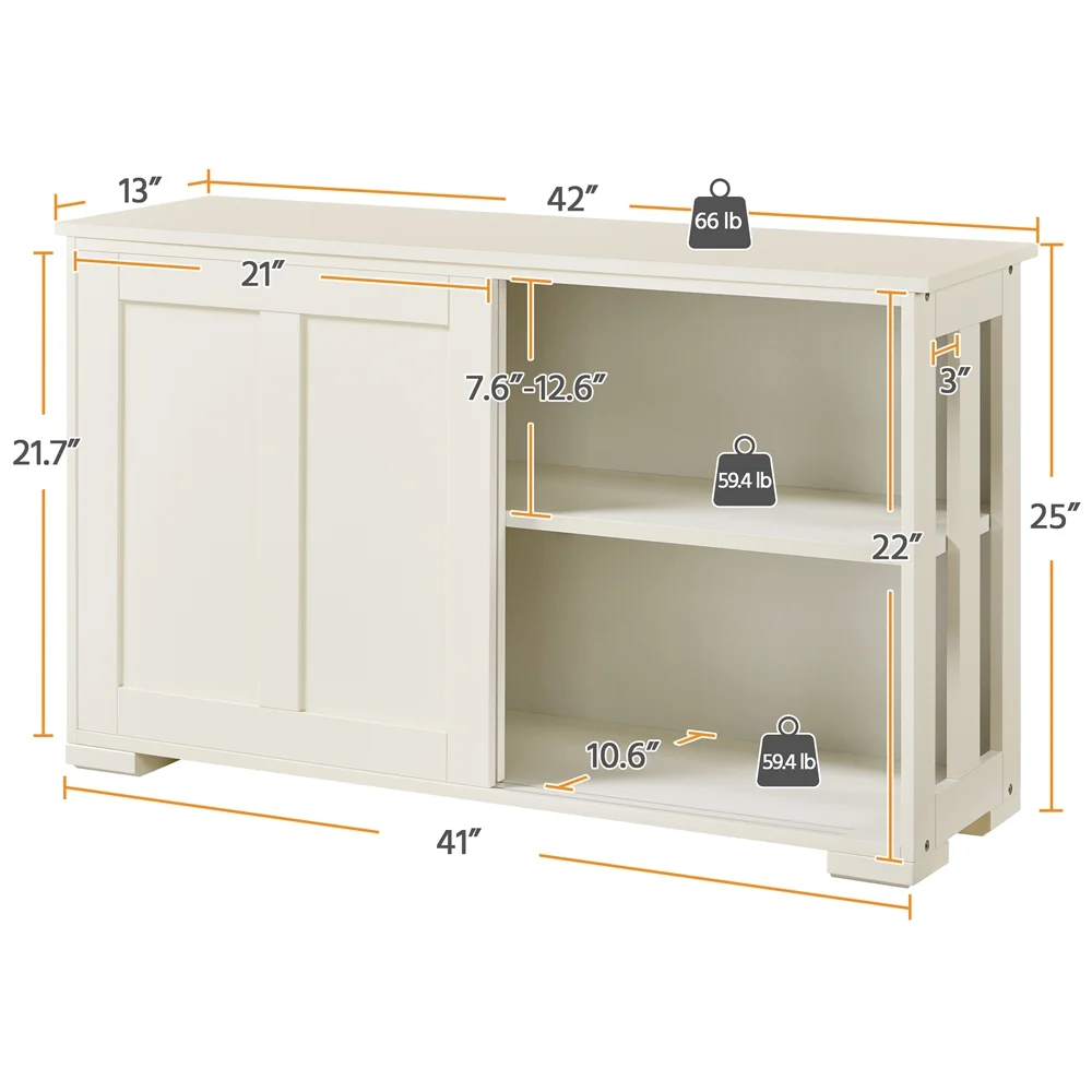 BELLEZE Ryland 47" Wood Storage Sideboard Buffet Cabinet Console Table, White