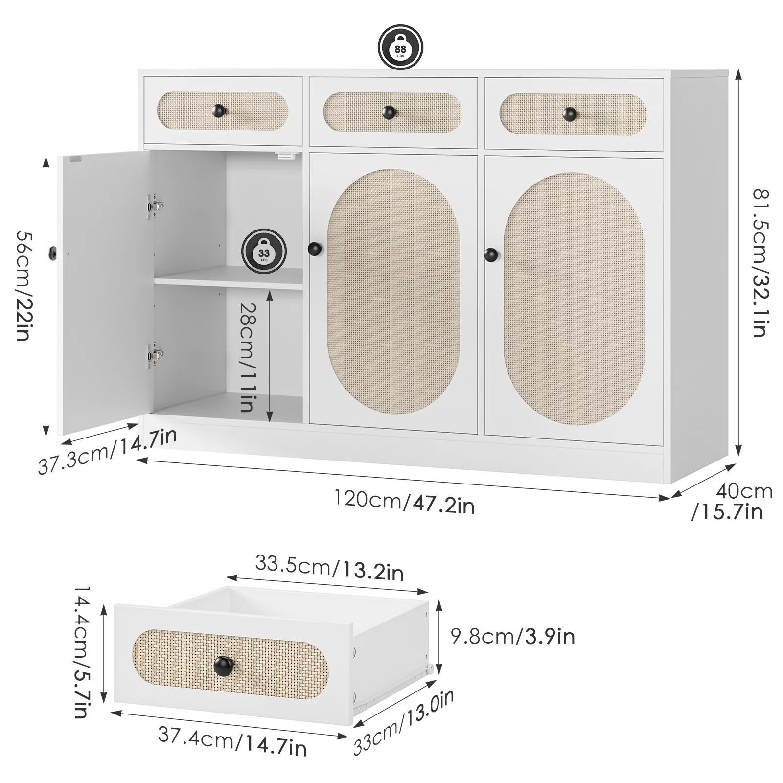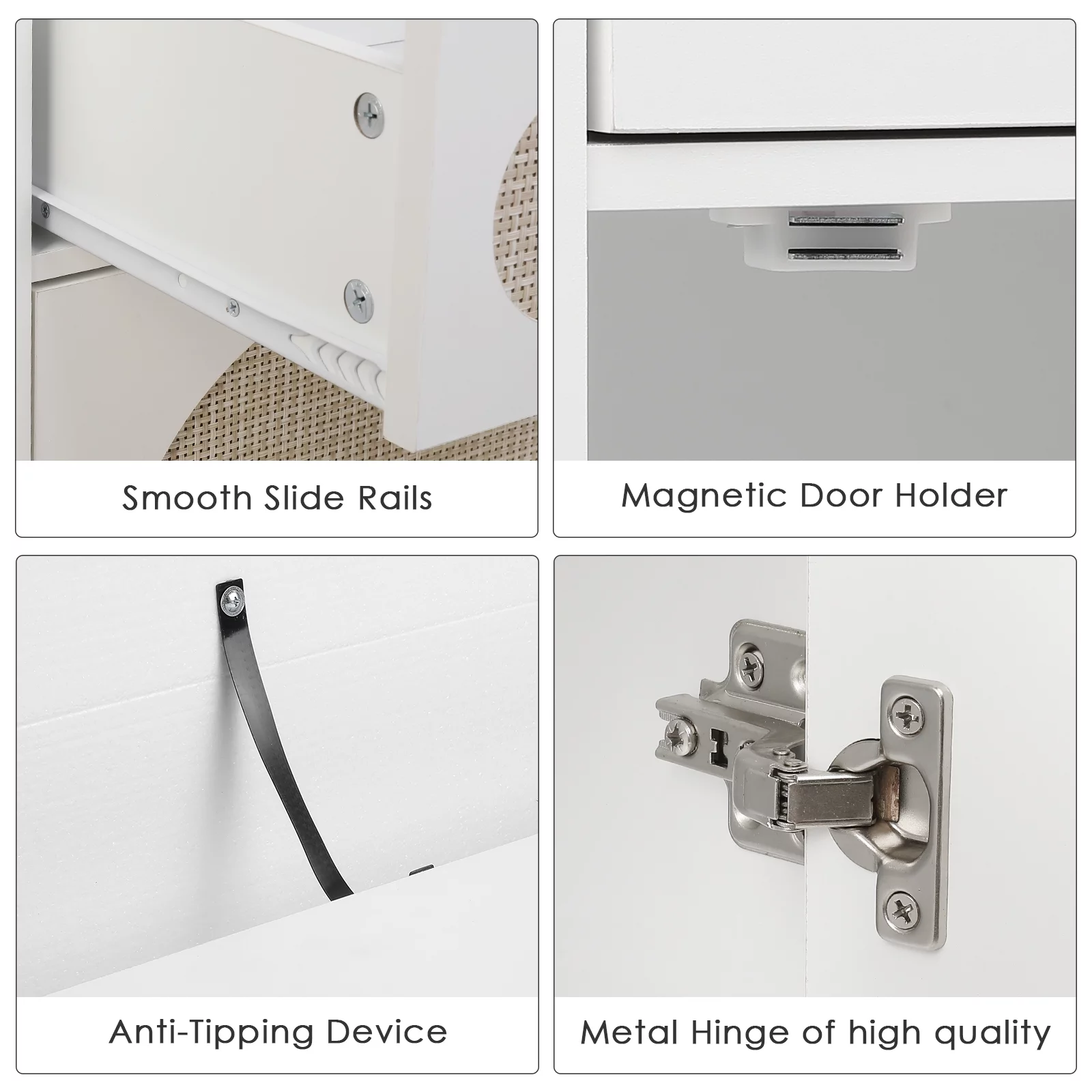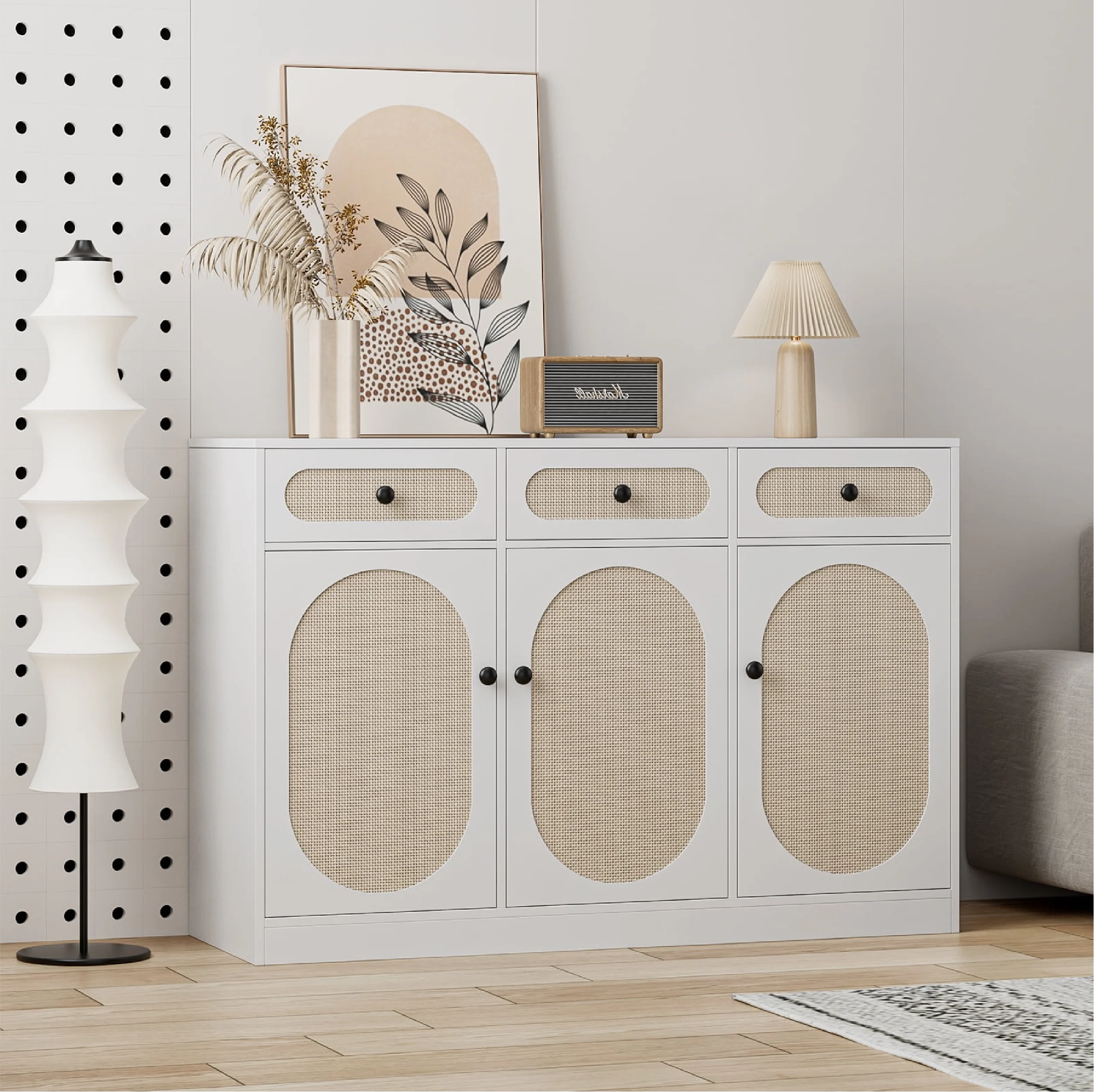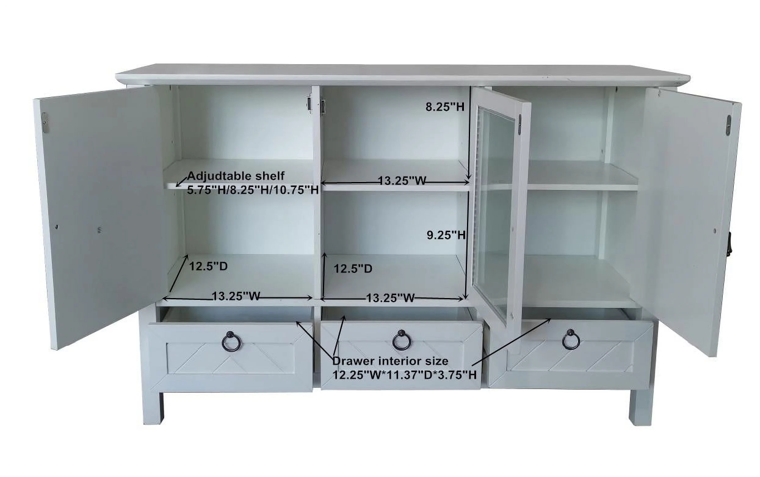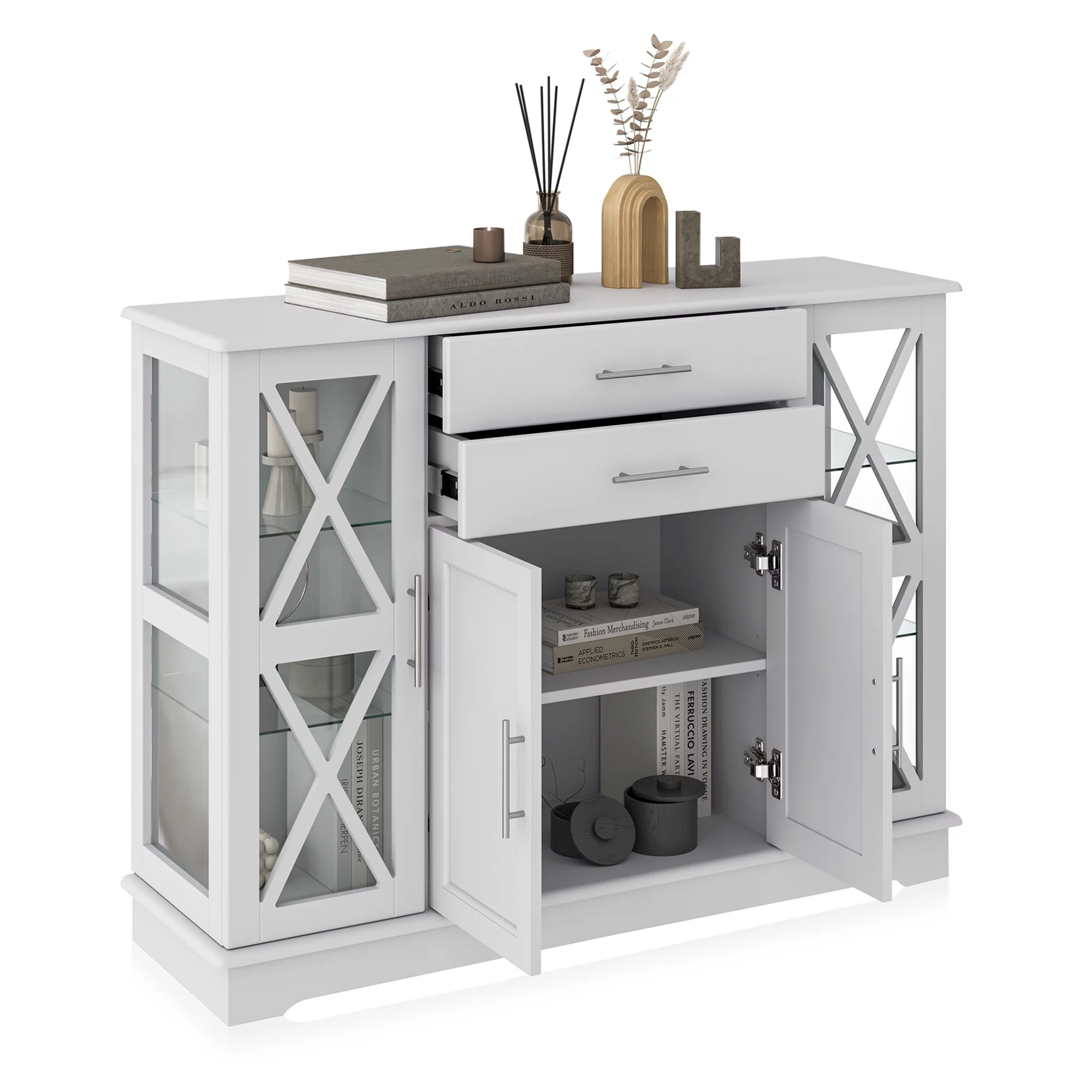 BELLEZE Ryland 47" Wood Storage Sideboard Buffet Cabinet Console Table, White
