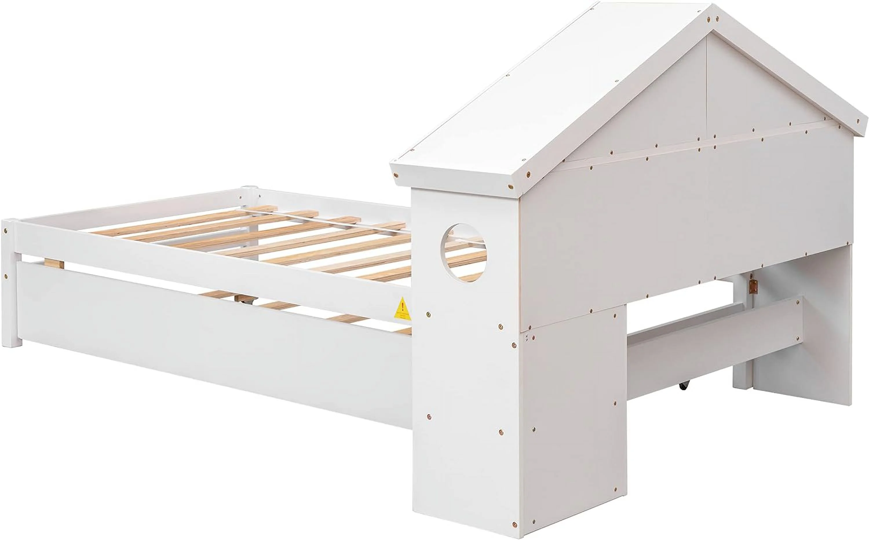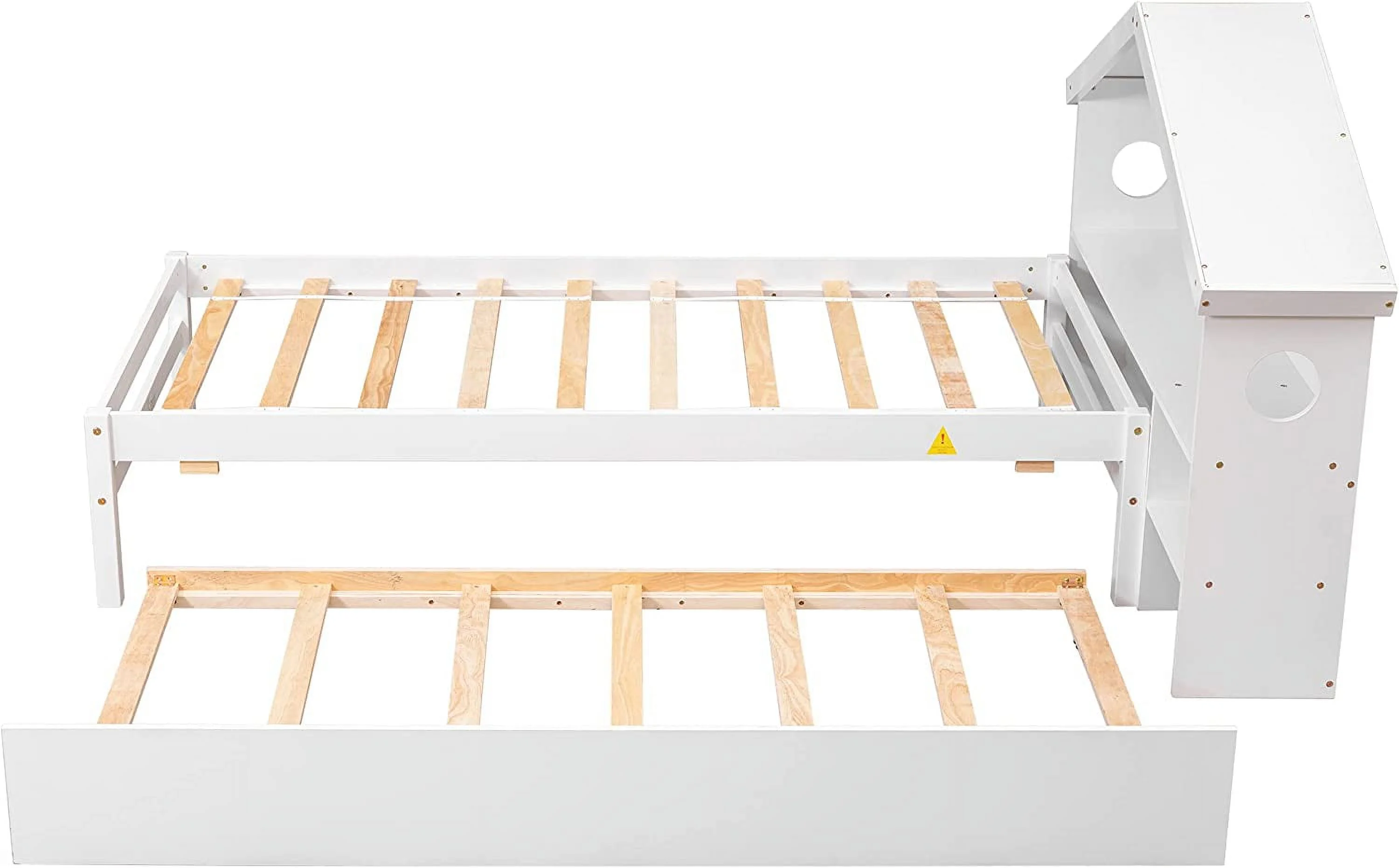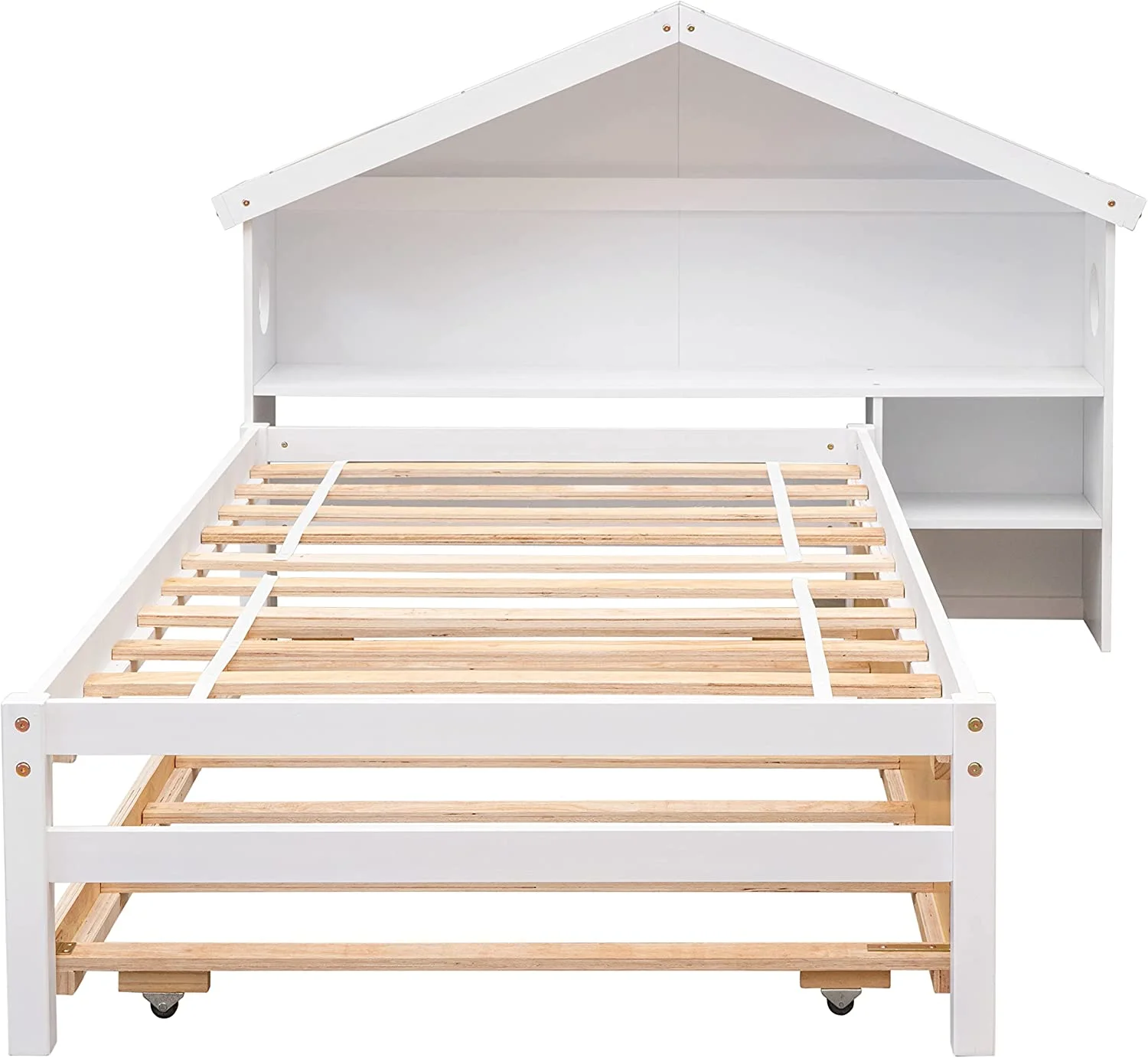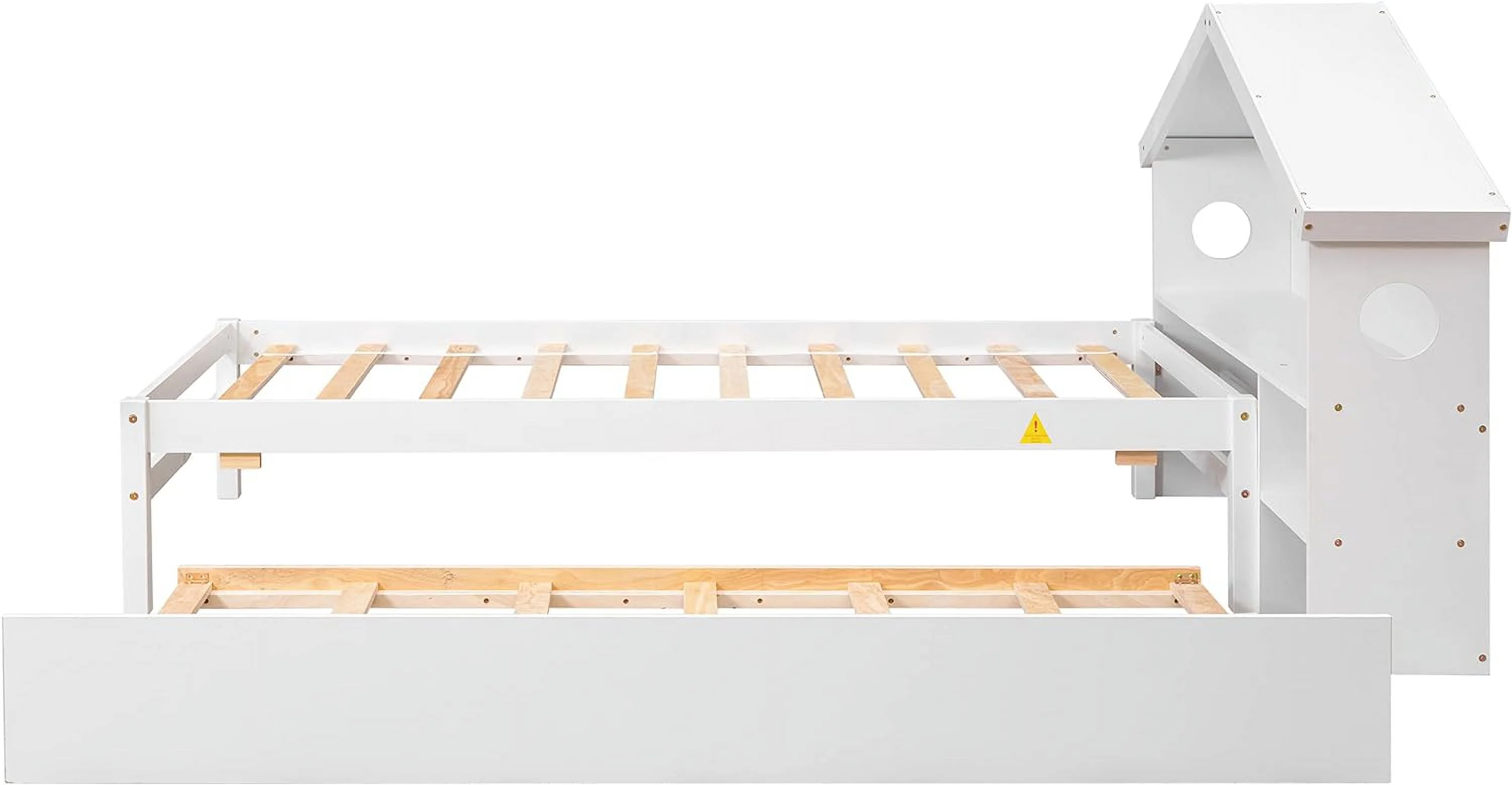 Gewnee Metal House Bed With Trundle,Kids Twin Size House Shaped Platform Bed Frame,Black