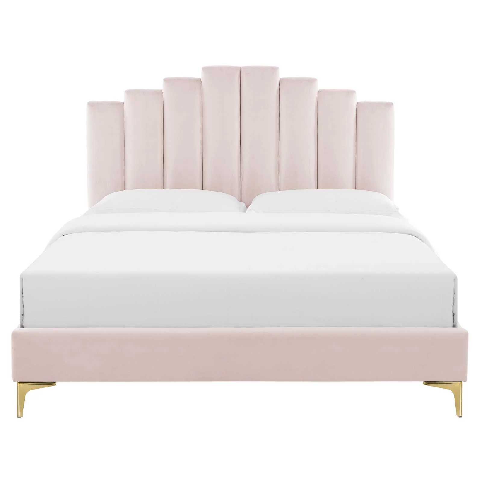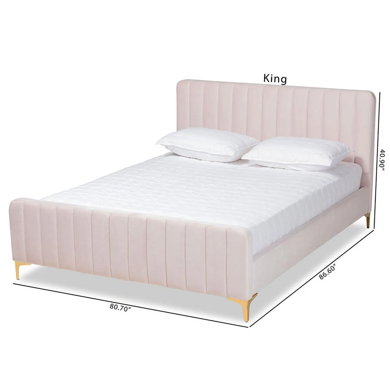 Bowery Hill Pink Fabric Upholstered and Gold Finished King Size Platform Bed