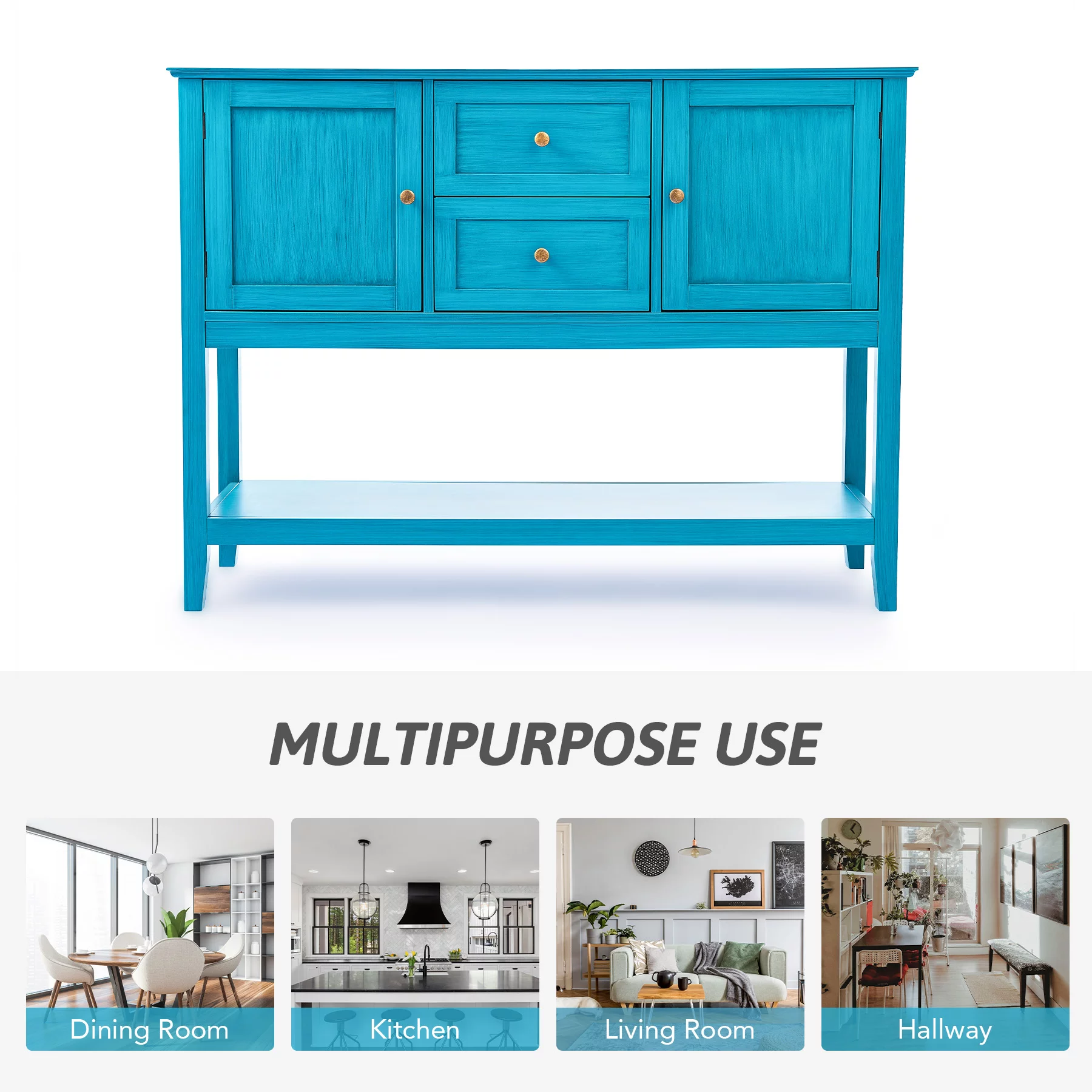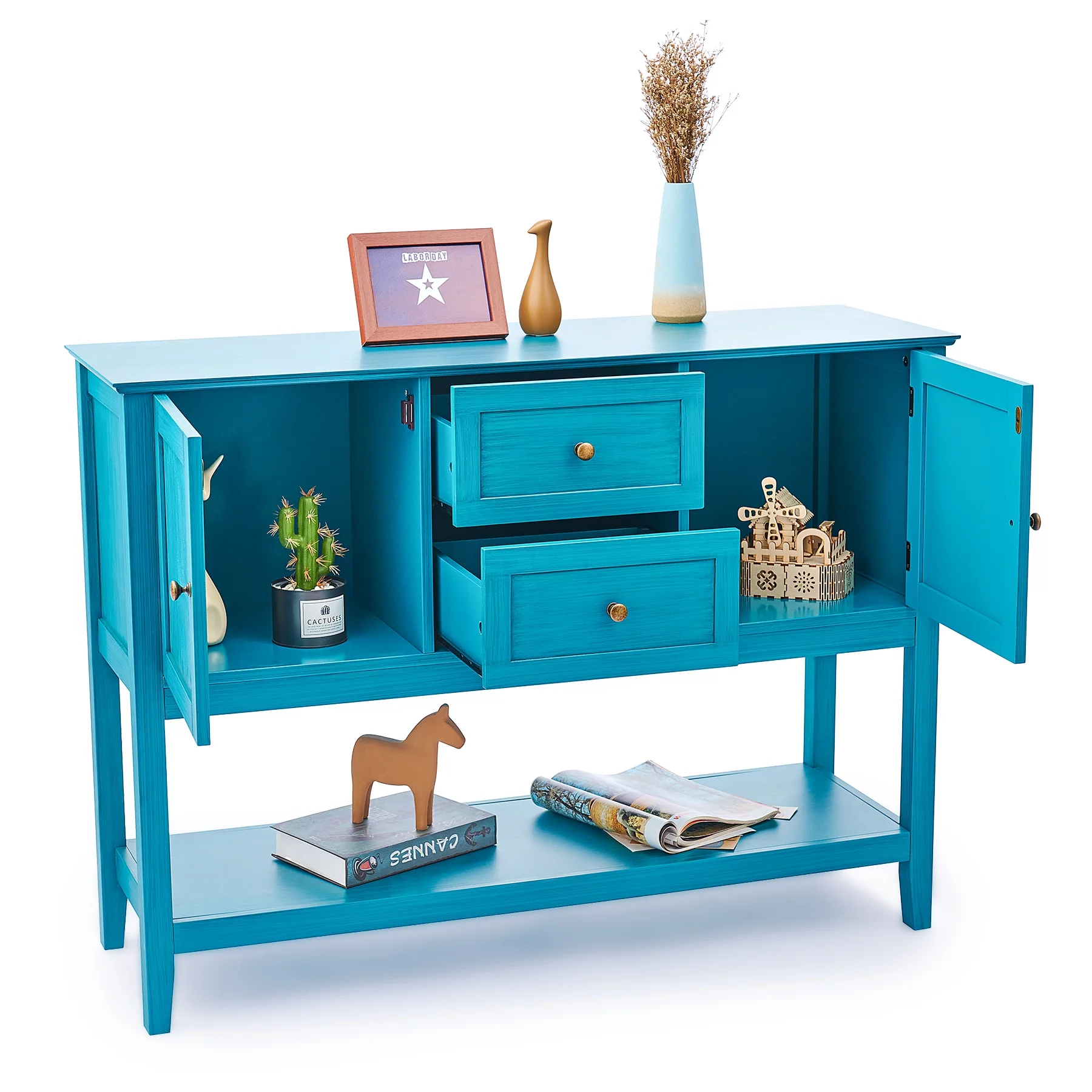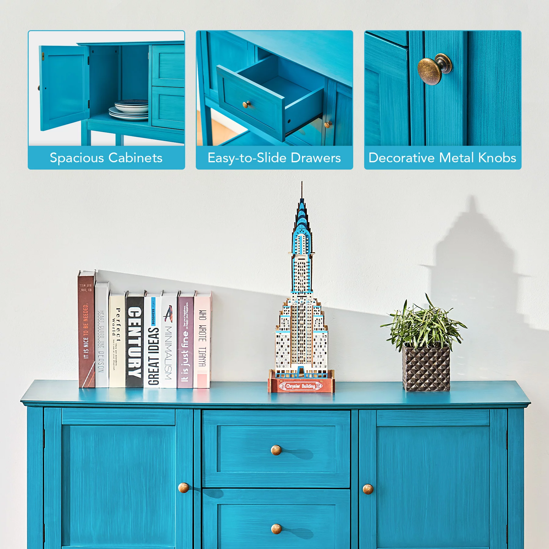 Bestco Sideboard Buffet Server Console Table Coffee Bar Cabinet w Drawers Cabinets Teal
