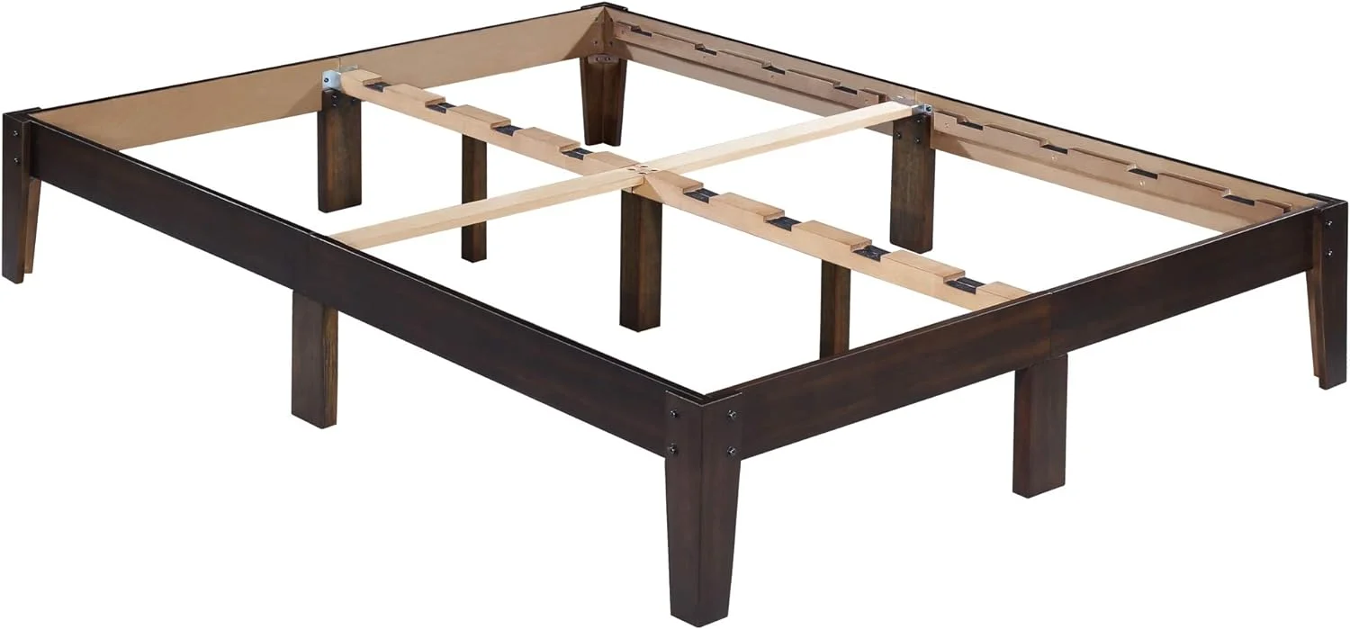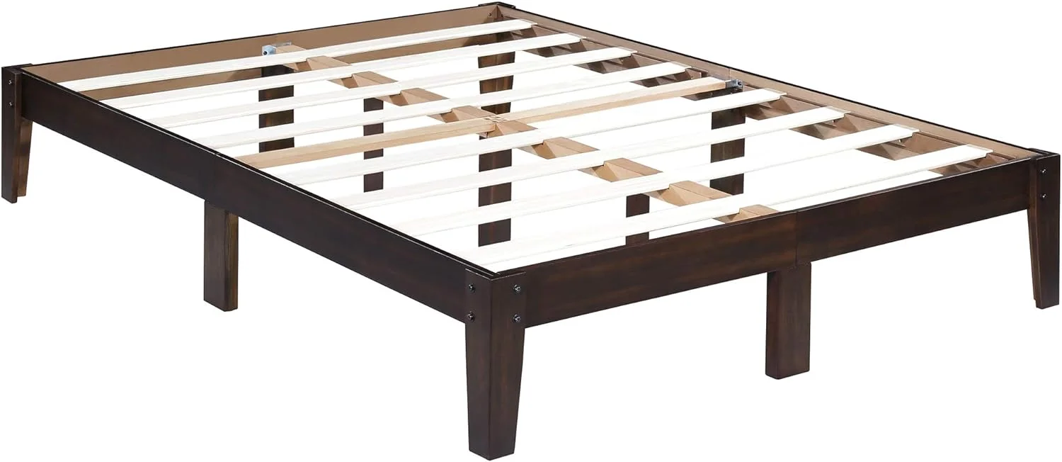 YINCHEN 14 Inch Solid Wood Platform Bed Frame/Anti-Slip Support/No Box Spring Needed/Easy to Set Up (King), Dark Brown
