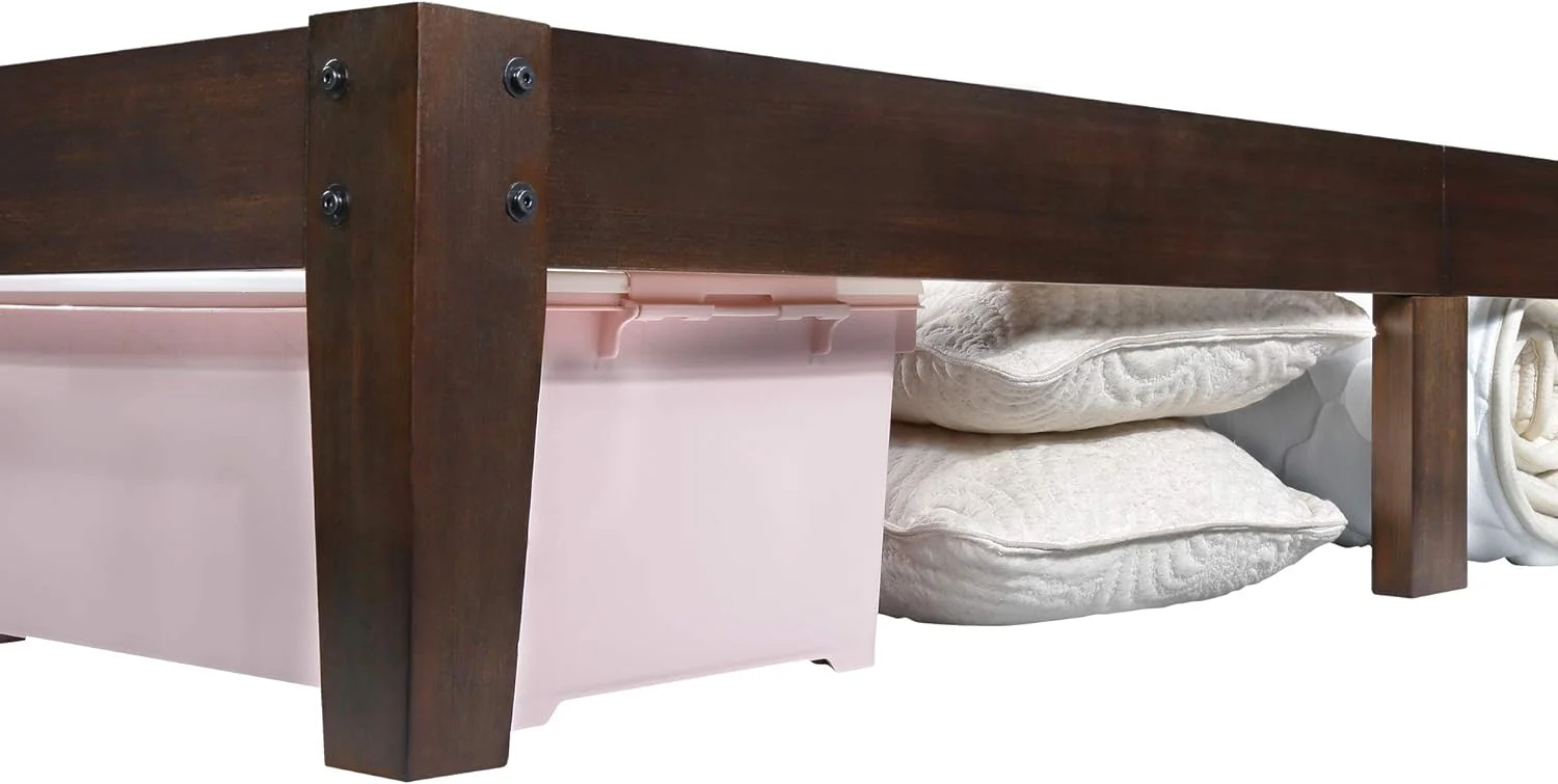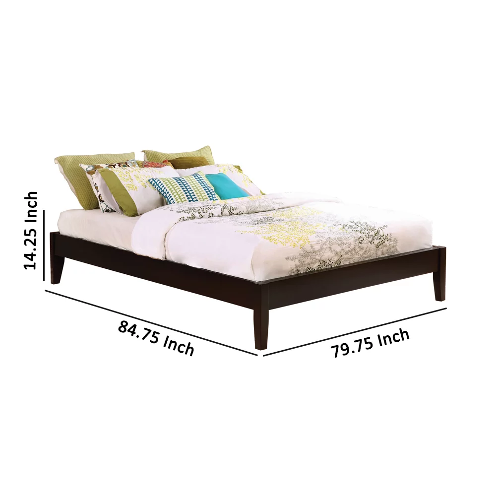 Wooden Eastern King Platform Bed with Chamfered Legs, Dark Brown- Saltoro Sherpi