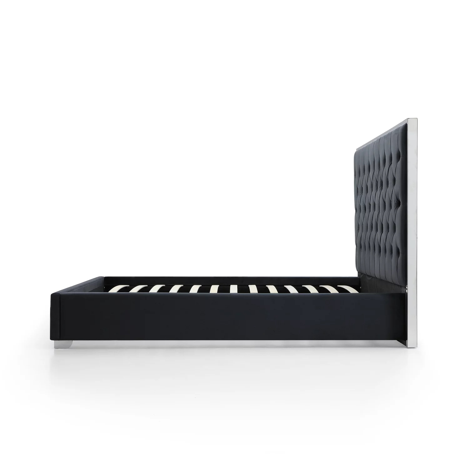 Better Home Products Sophia Velvet King Bed with Silver Metal Frame in Pink