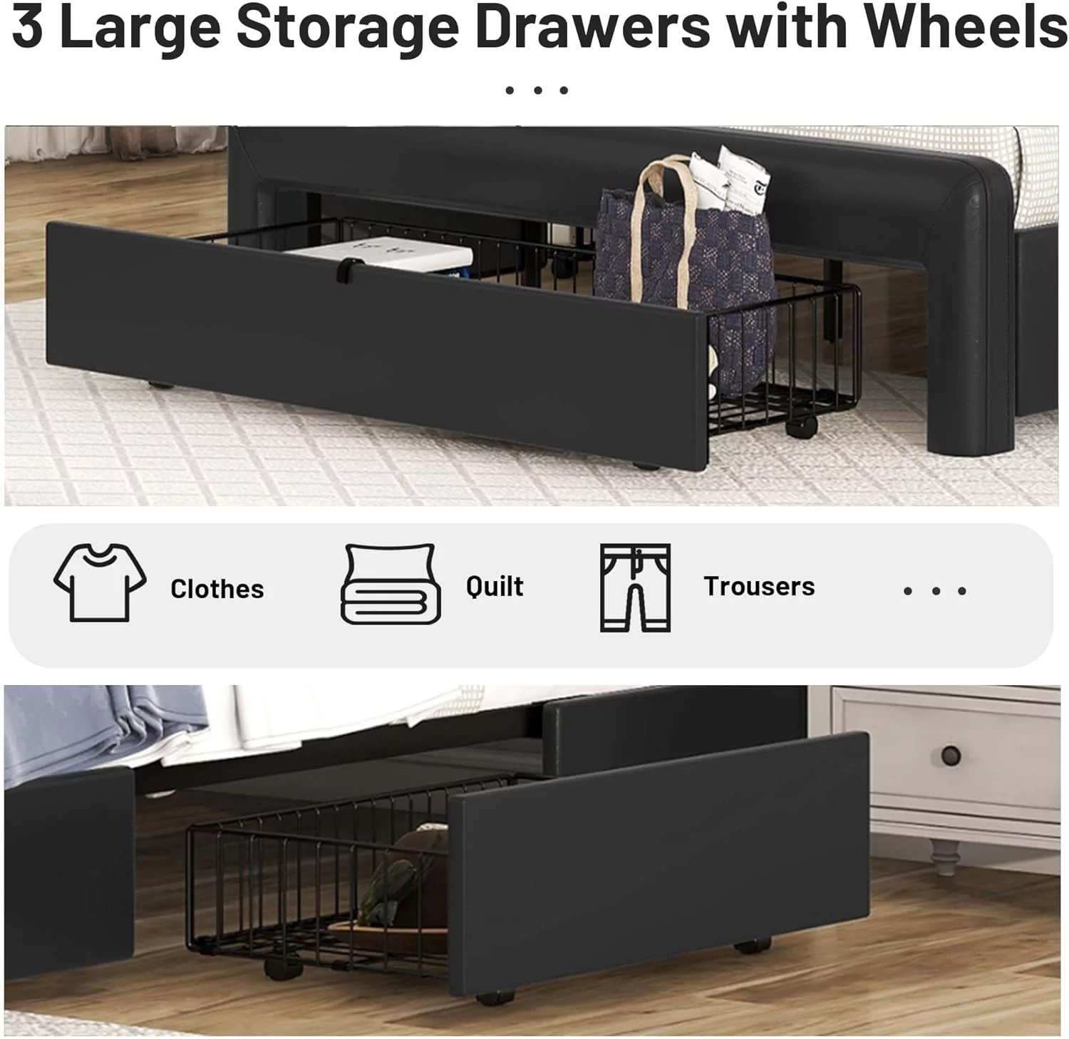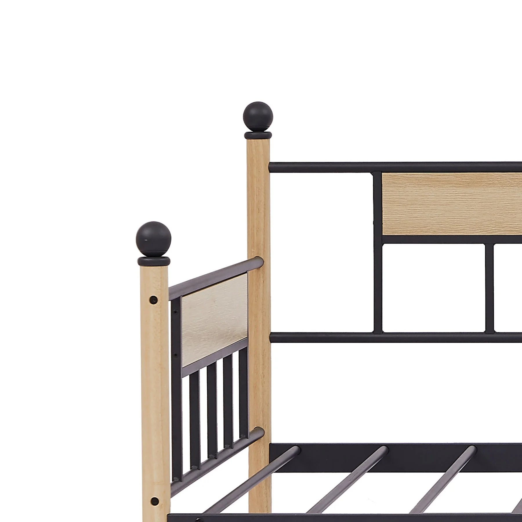 Minimalist Farmhouse Style Twin Size Daybed with a Trundle Bed, Natural+Black