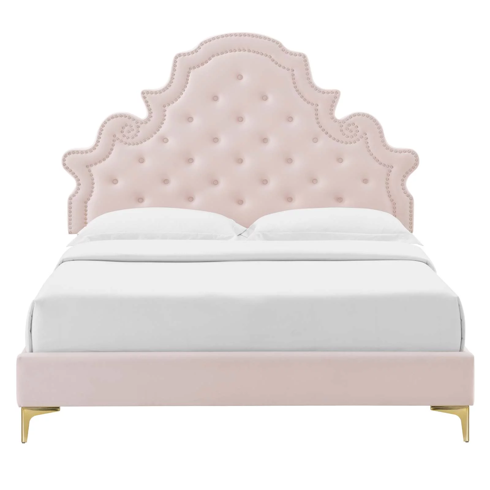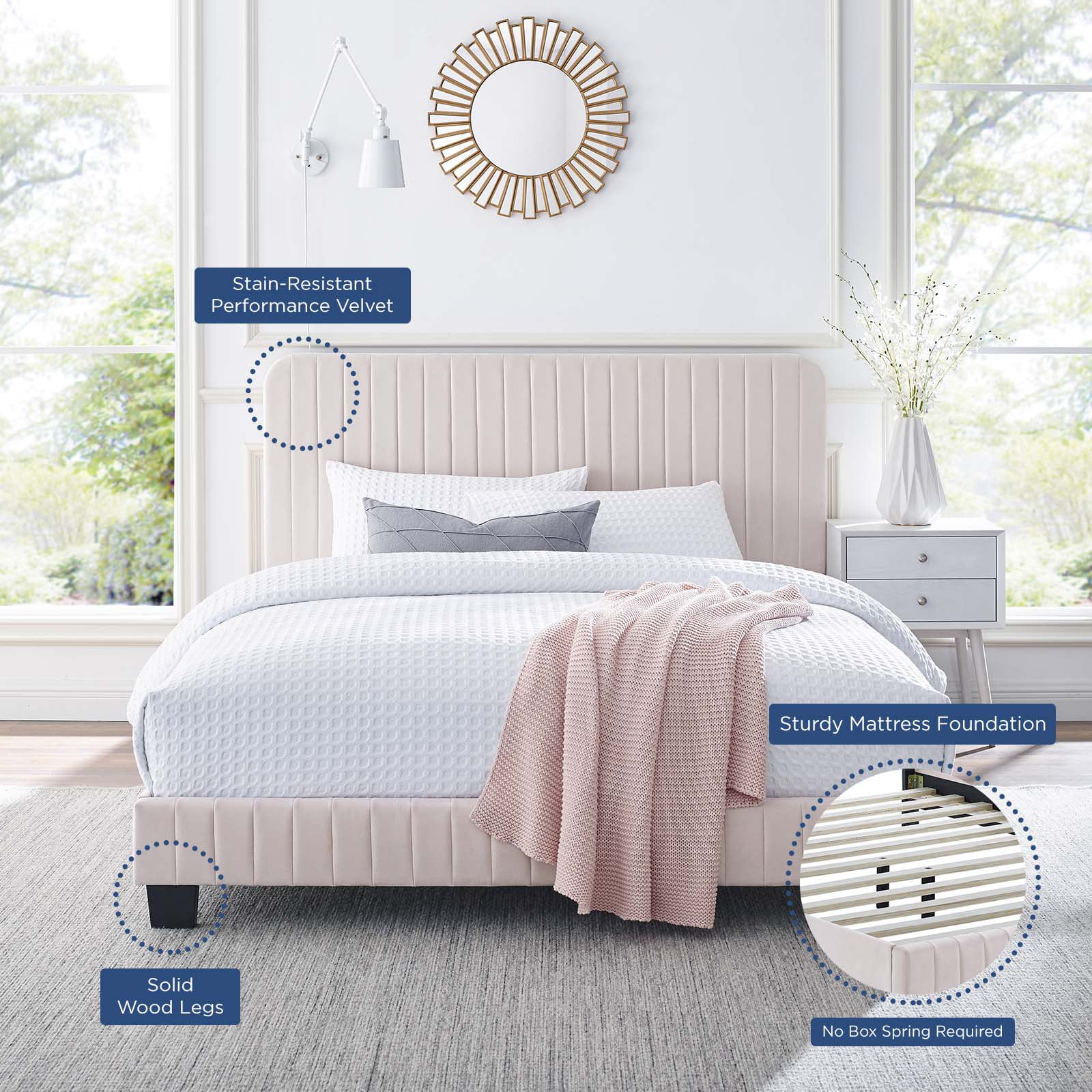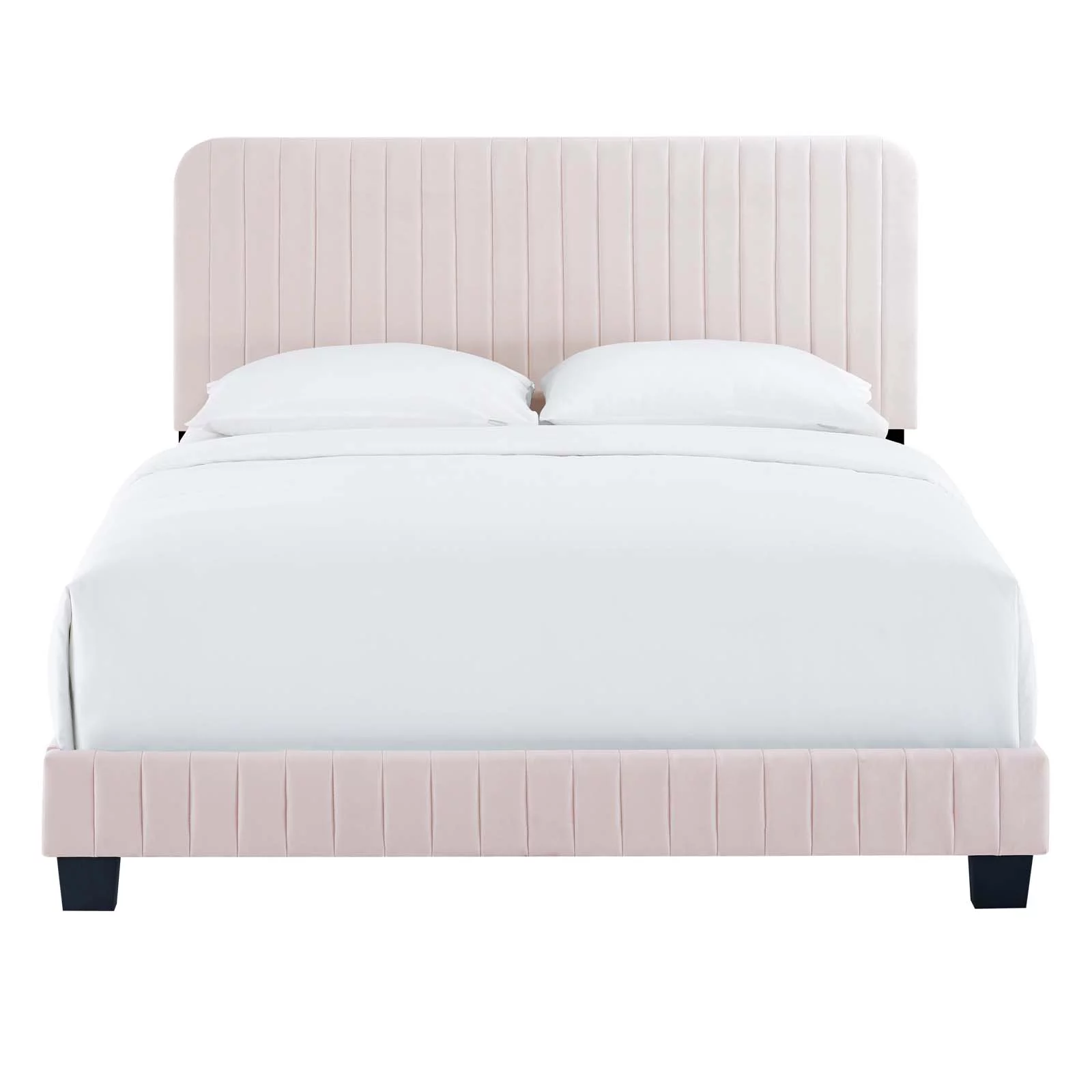 Modway Celine Channel Tufted Performance Velvet King Platform Bed in Pink