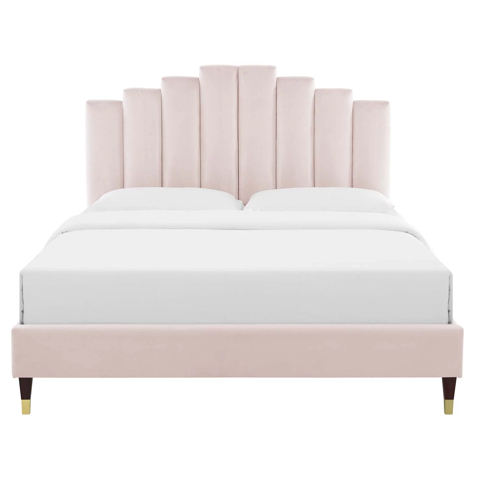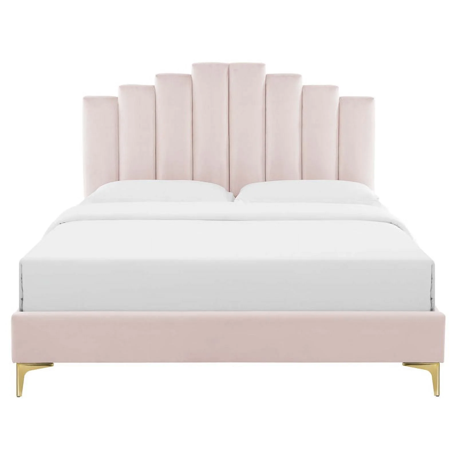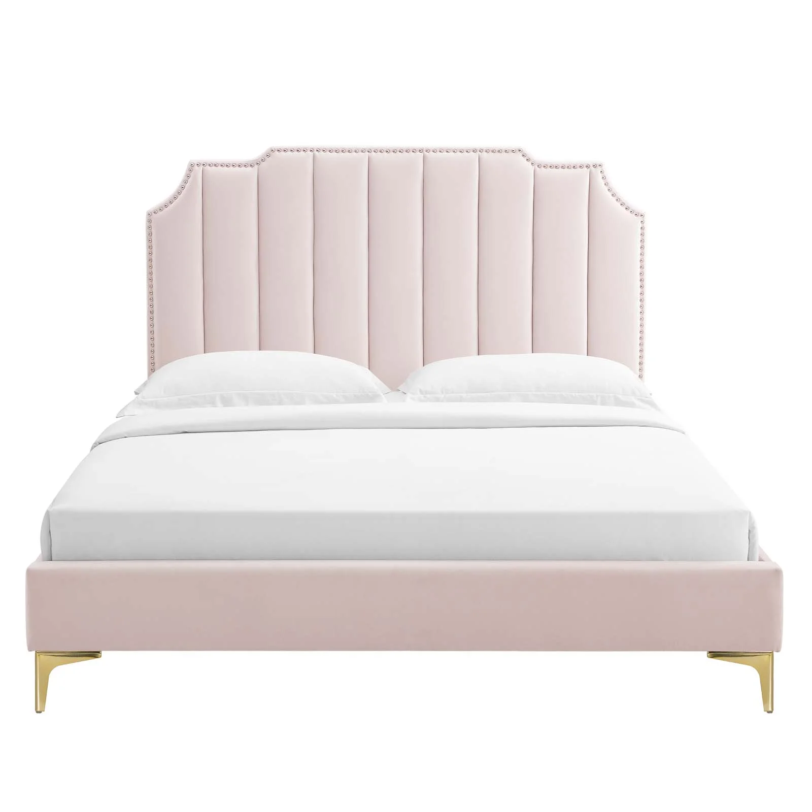 Modway Celine Channel Tufted Performance Velvet King Platform Bed in Pink
