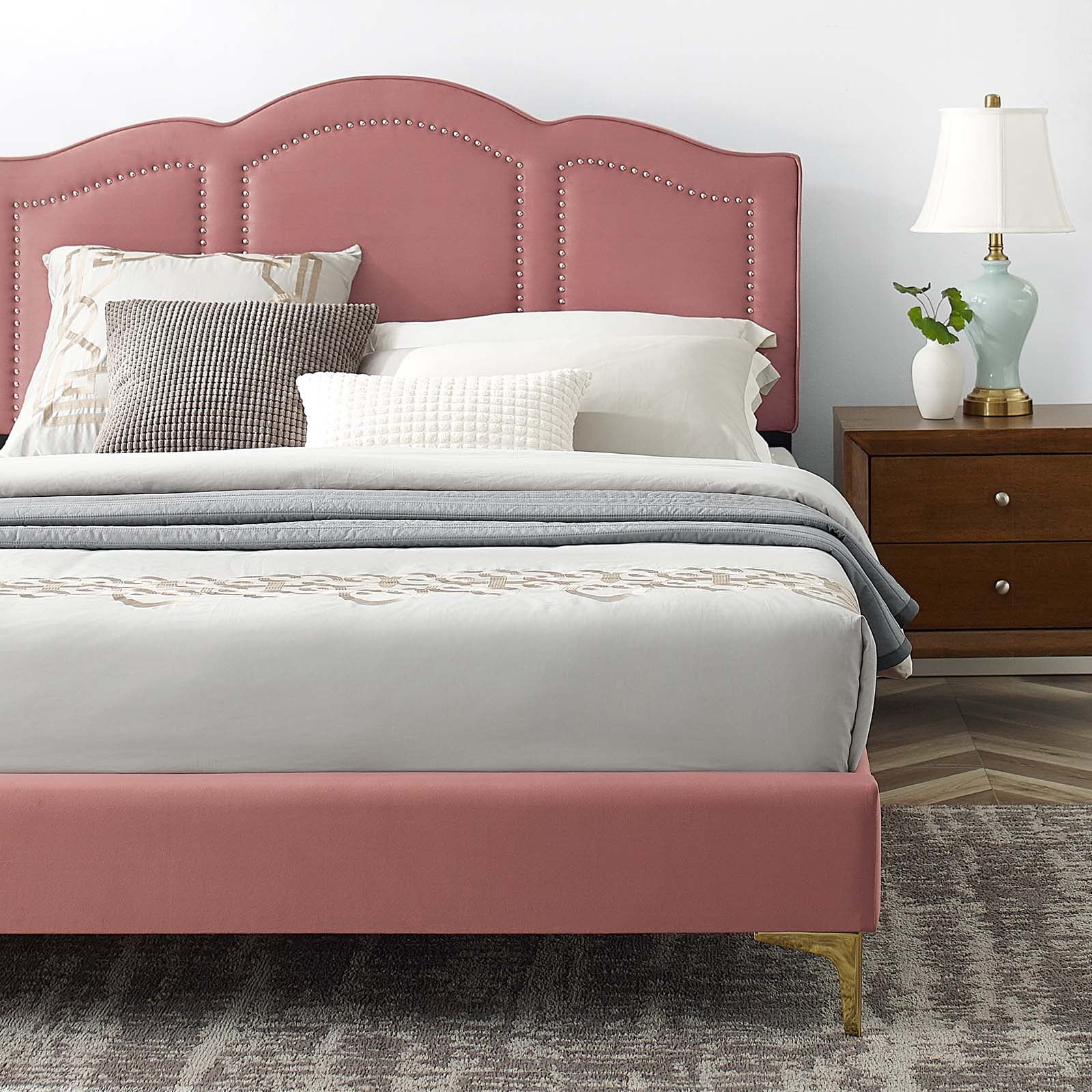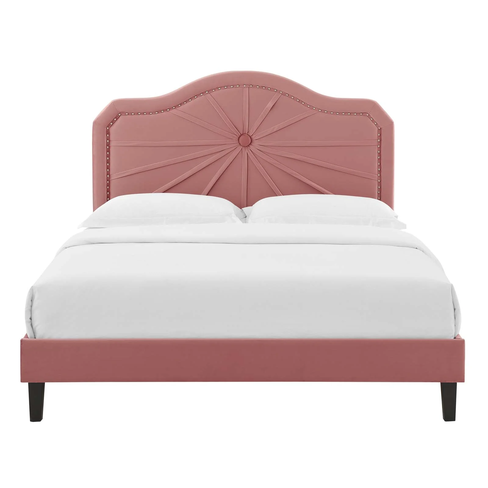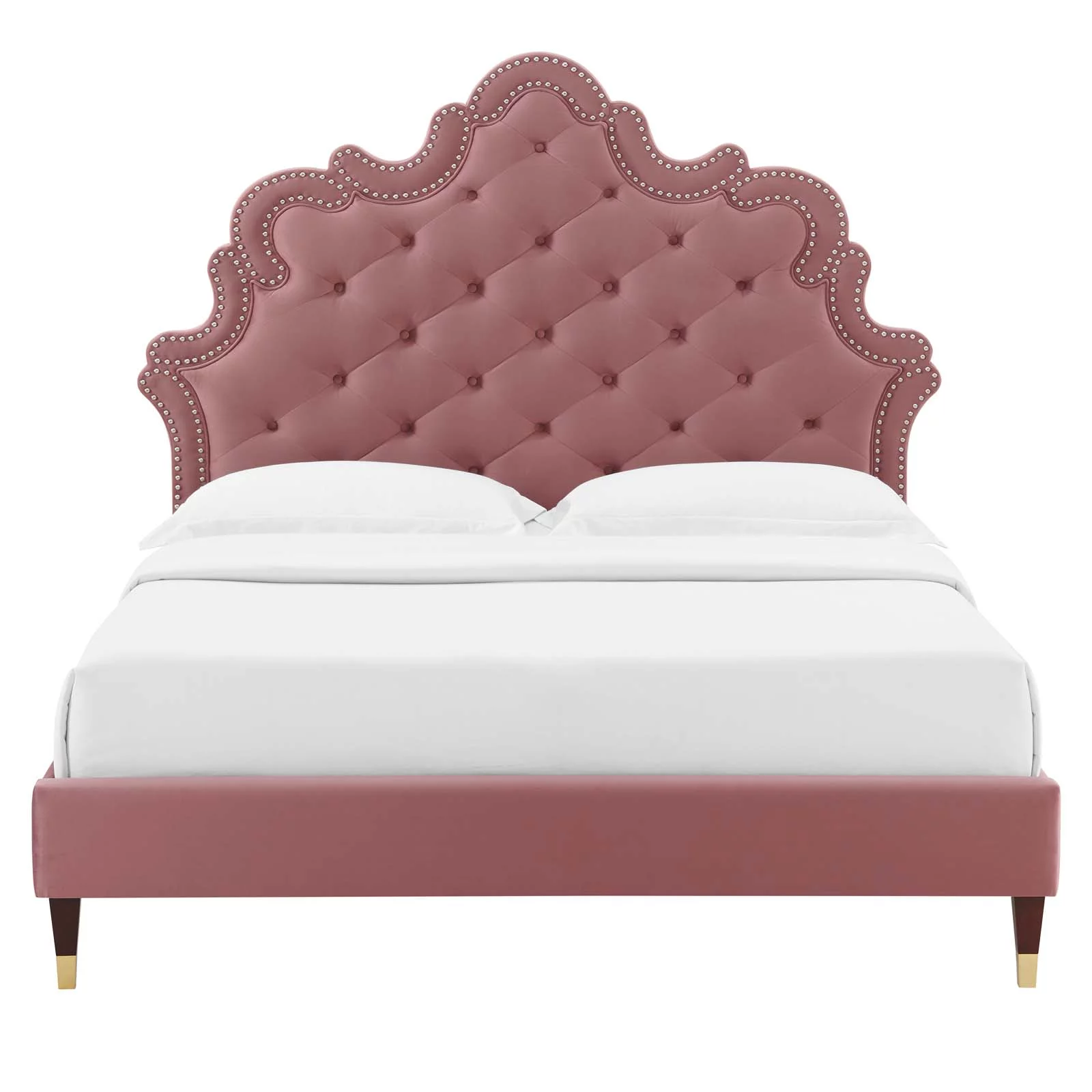 Modway Sasha Button-Tufted Performance Velvet King Bed in Dusty Rose