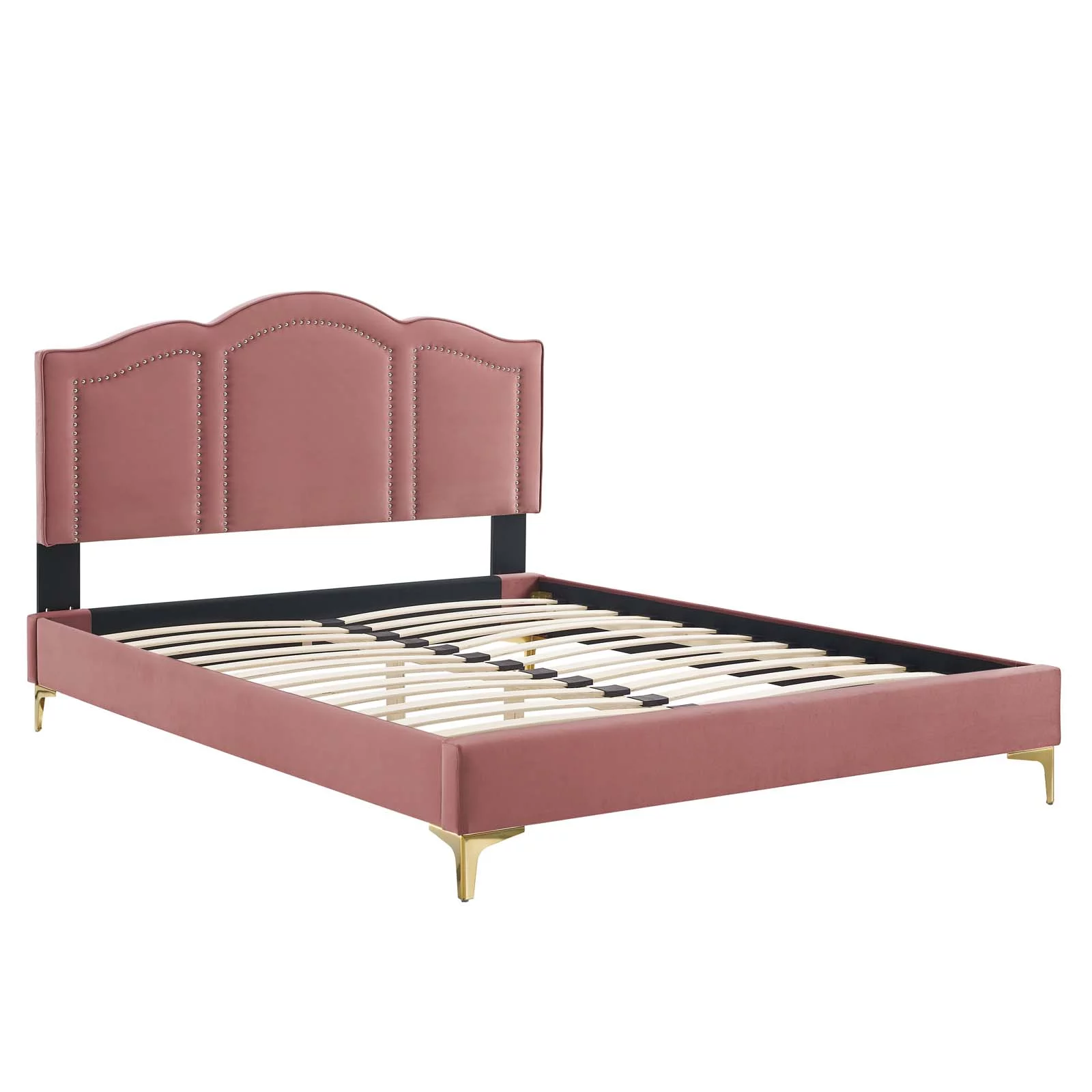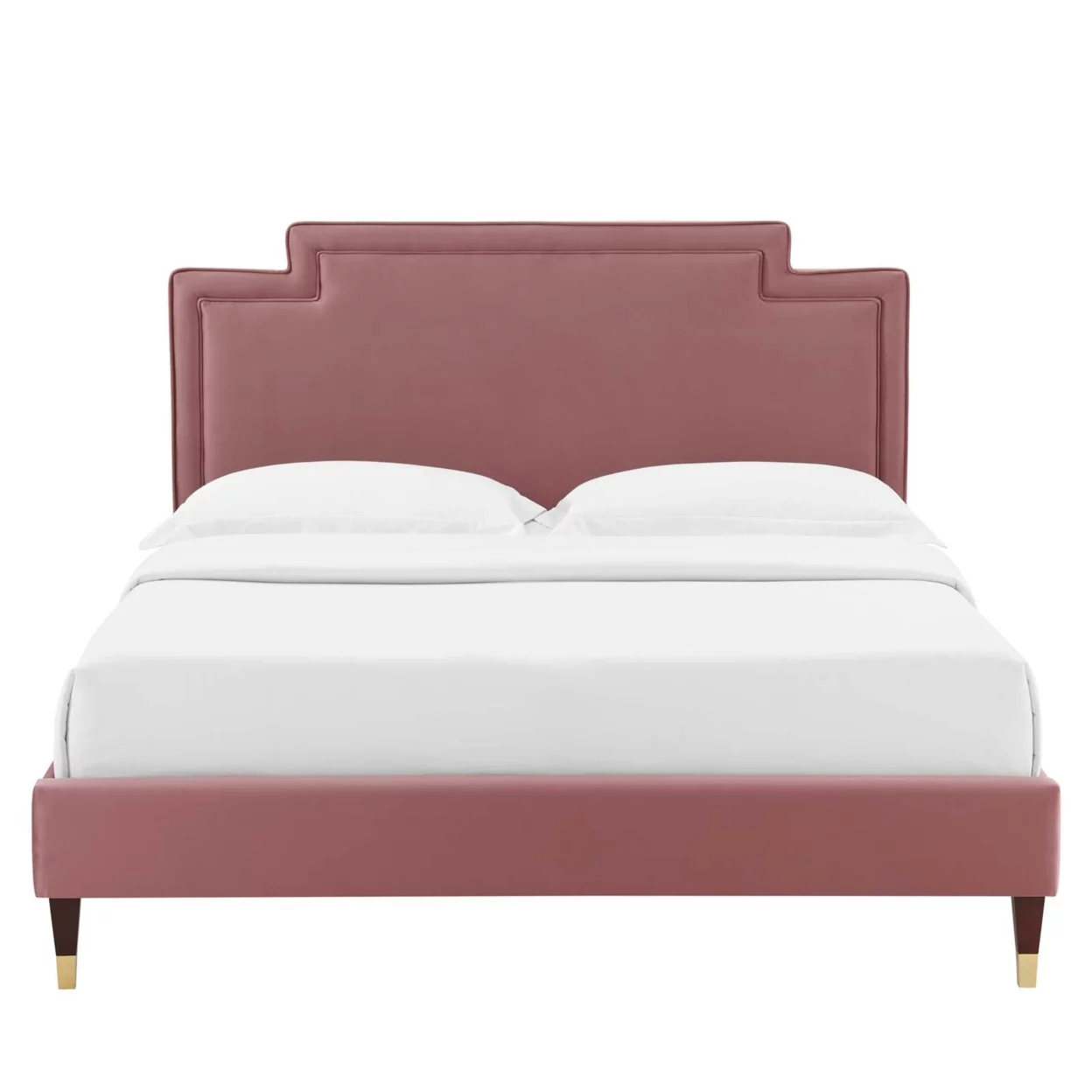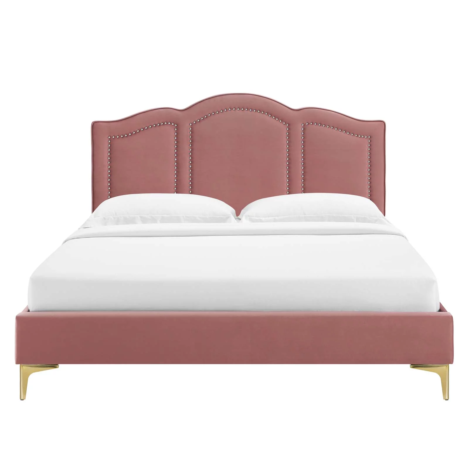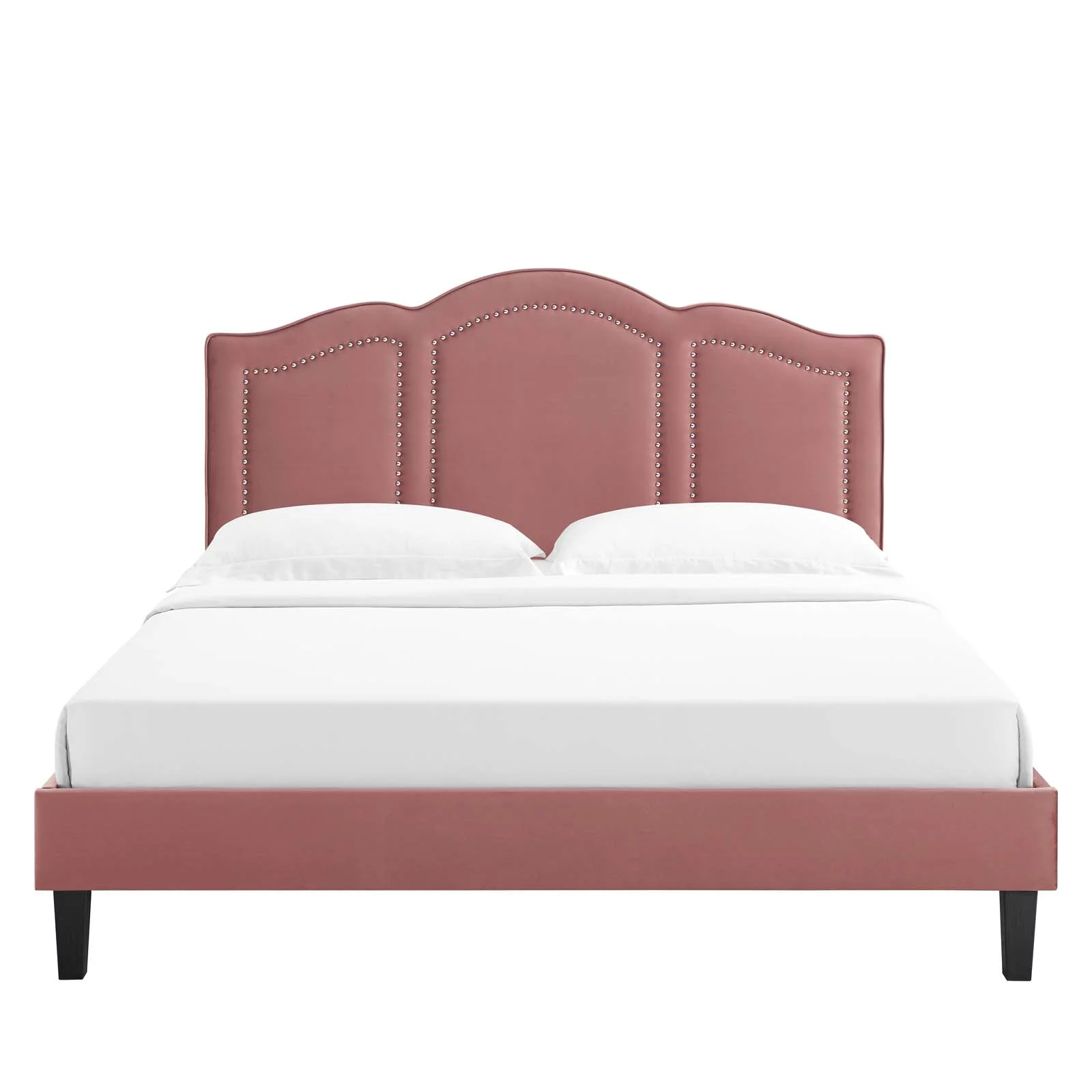 Modway Sasha Button-Tufted Performance Velvet King Bed in Dusty Rose